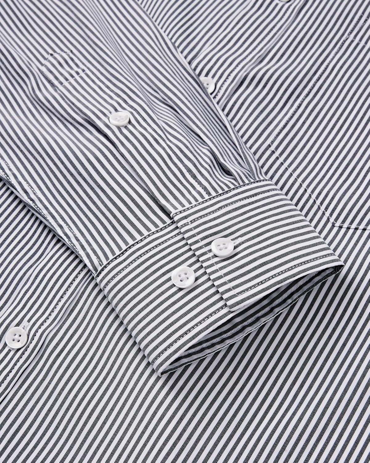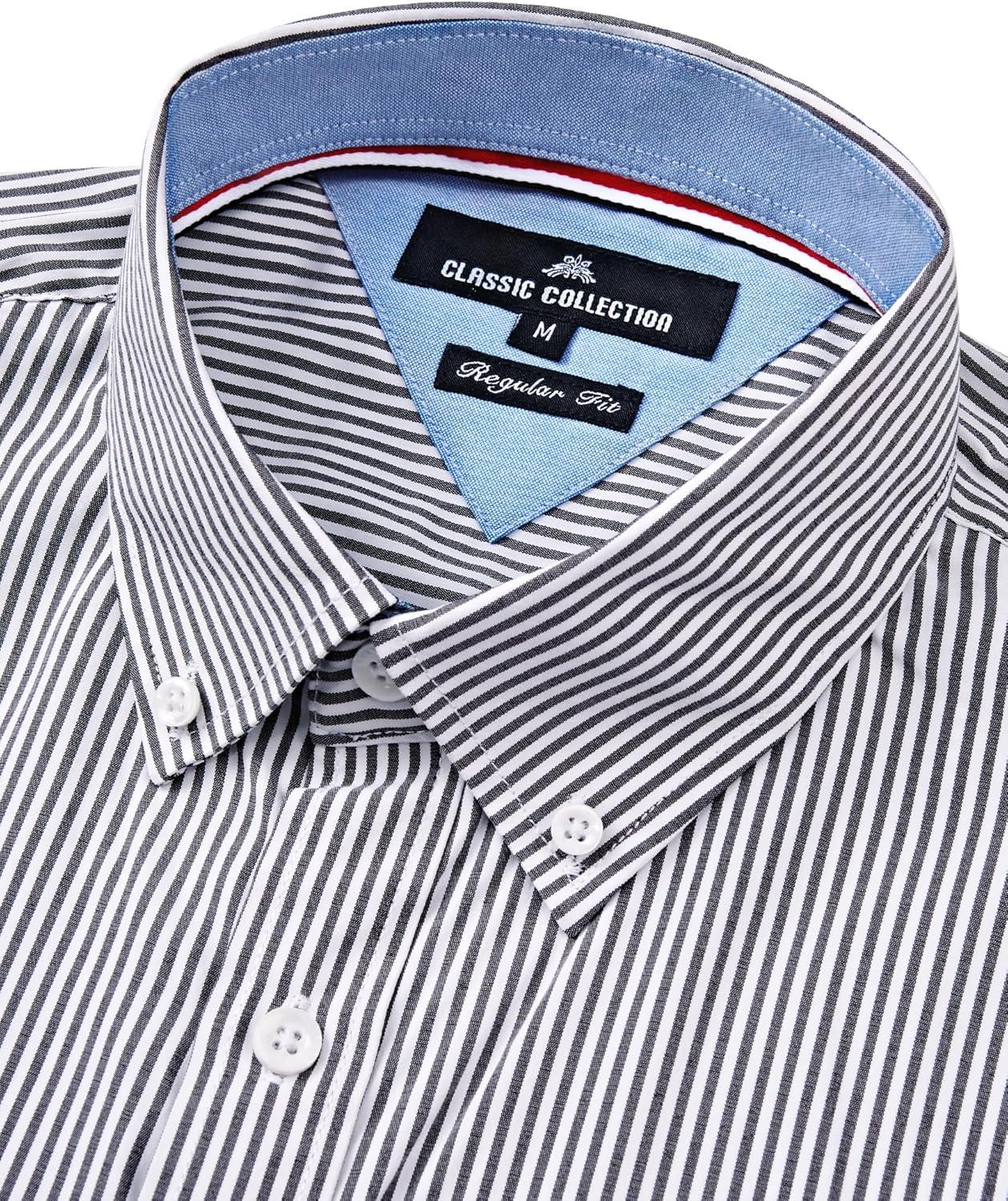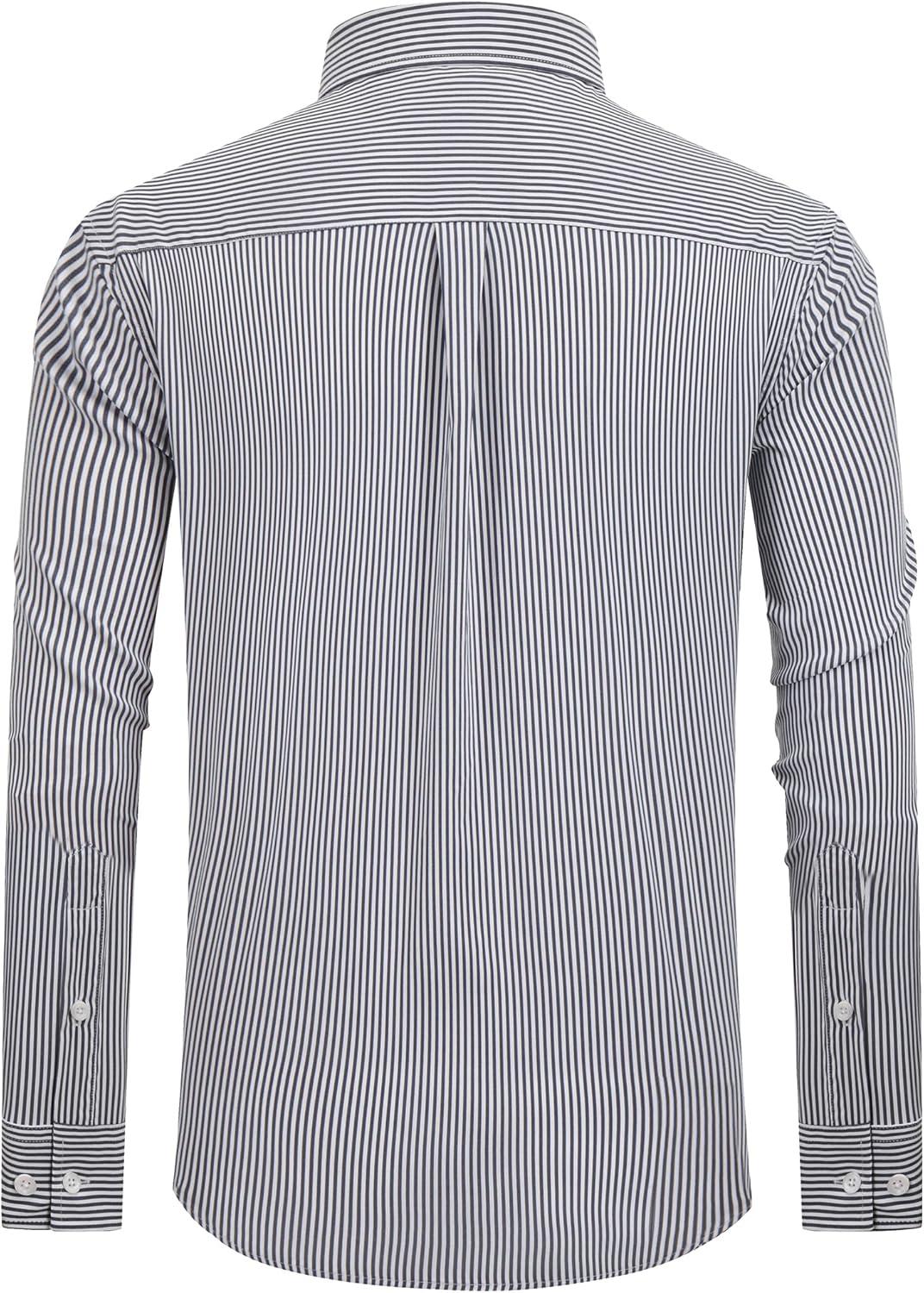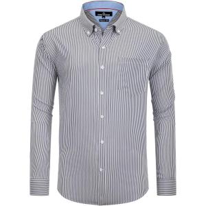 Alimens & Gentle Men’s Dress Shirts Regular Fit Long Sleeve Button Down Shirts Wrinkle Free Cotton Shirts(Black Stripe)