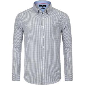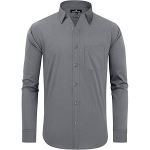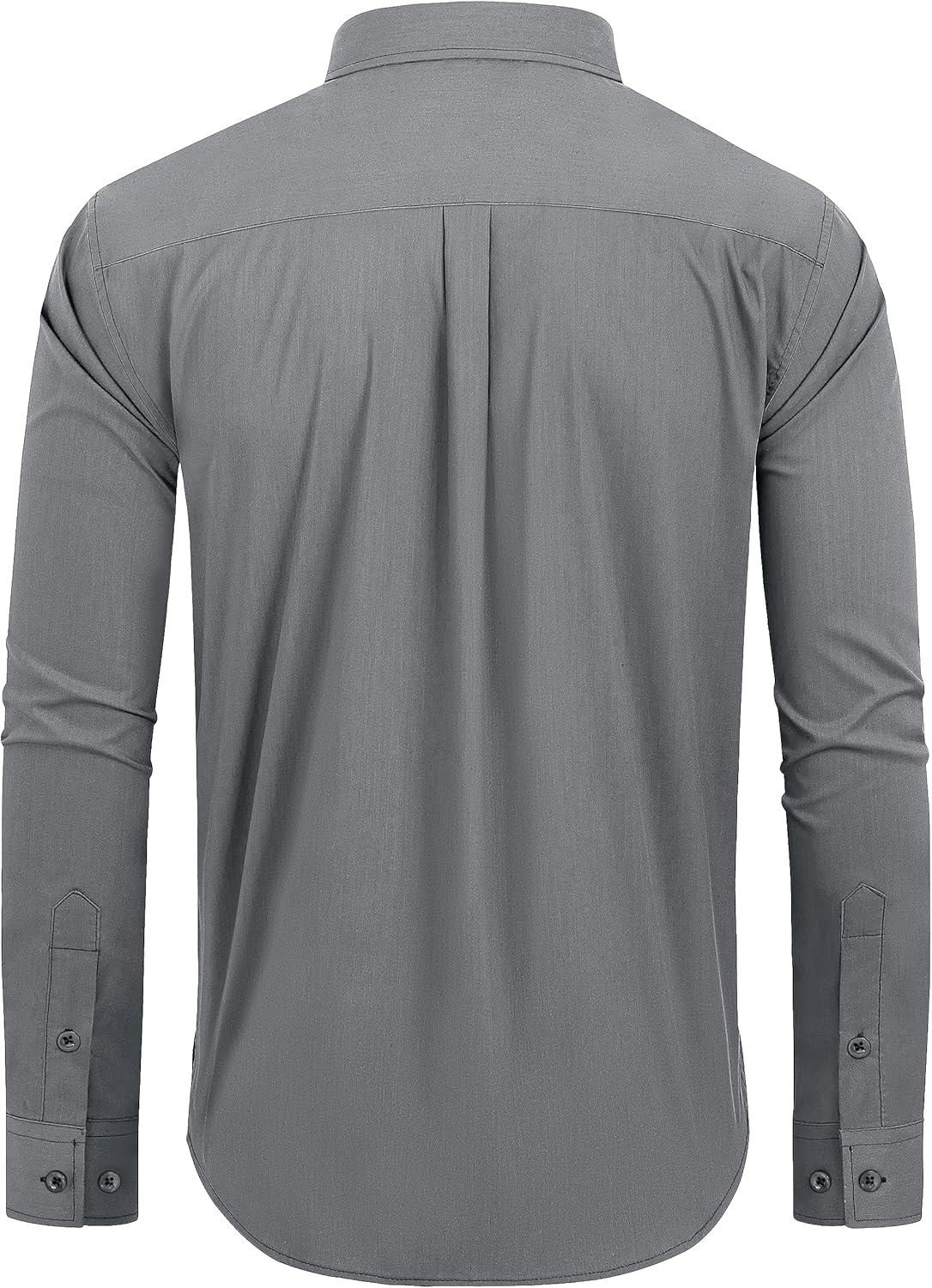 Alimens & Gentle Men’s Dress Shirts Regular Fit Long Sleeve Button Down Shirts Wrinkle Free Cotton Shirts(Grey)