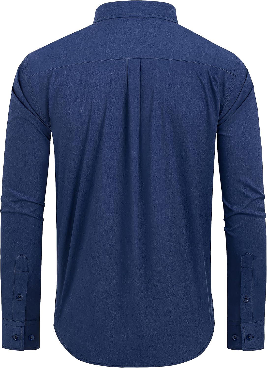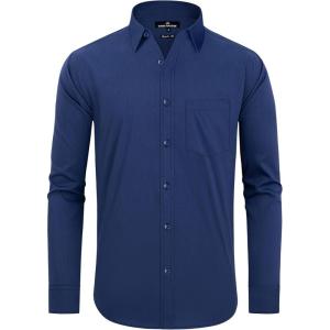 Alimens & Gentle Men’s Dress Shirts Regular Fit Long Sleeve Button Down Shirts Wrinkle Free Cotton Shirts(Navy)