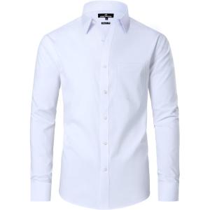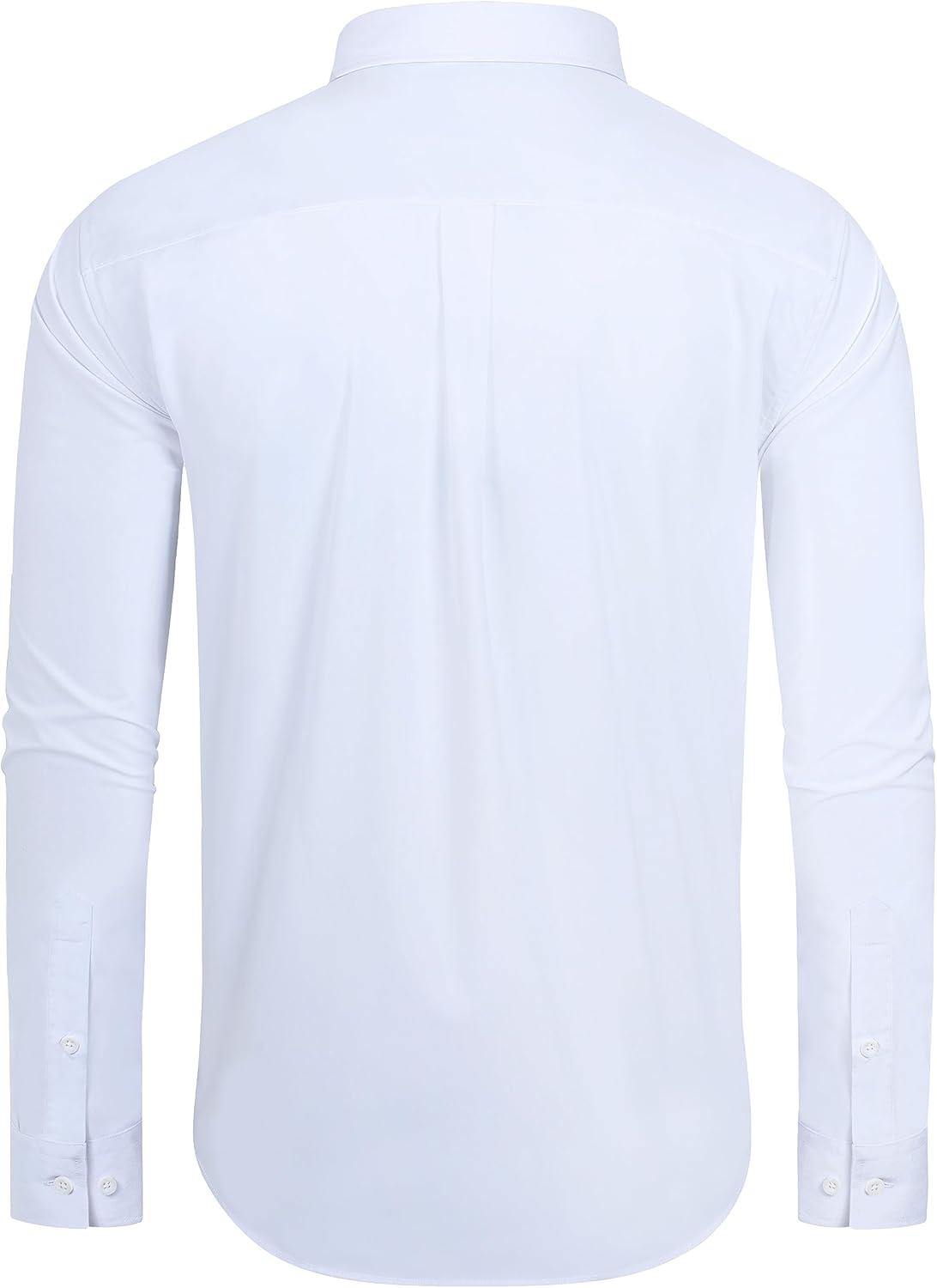 Alimens & Gentle Men’s Dress Shirts Regular Fit Long Sleeve Button Down Shirts Wrinkle Free Cotton Shirts(White)