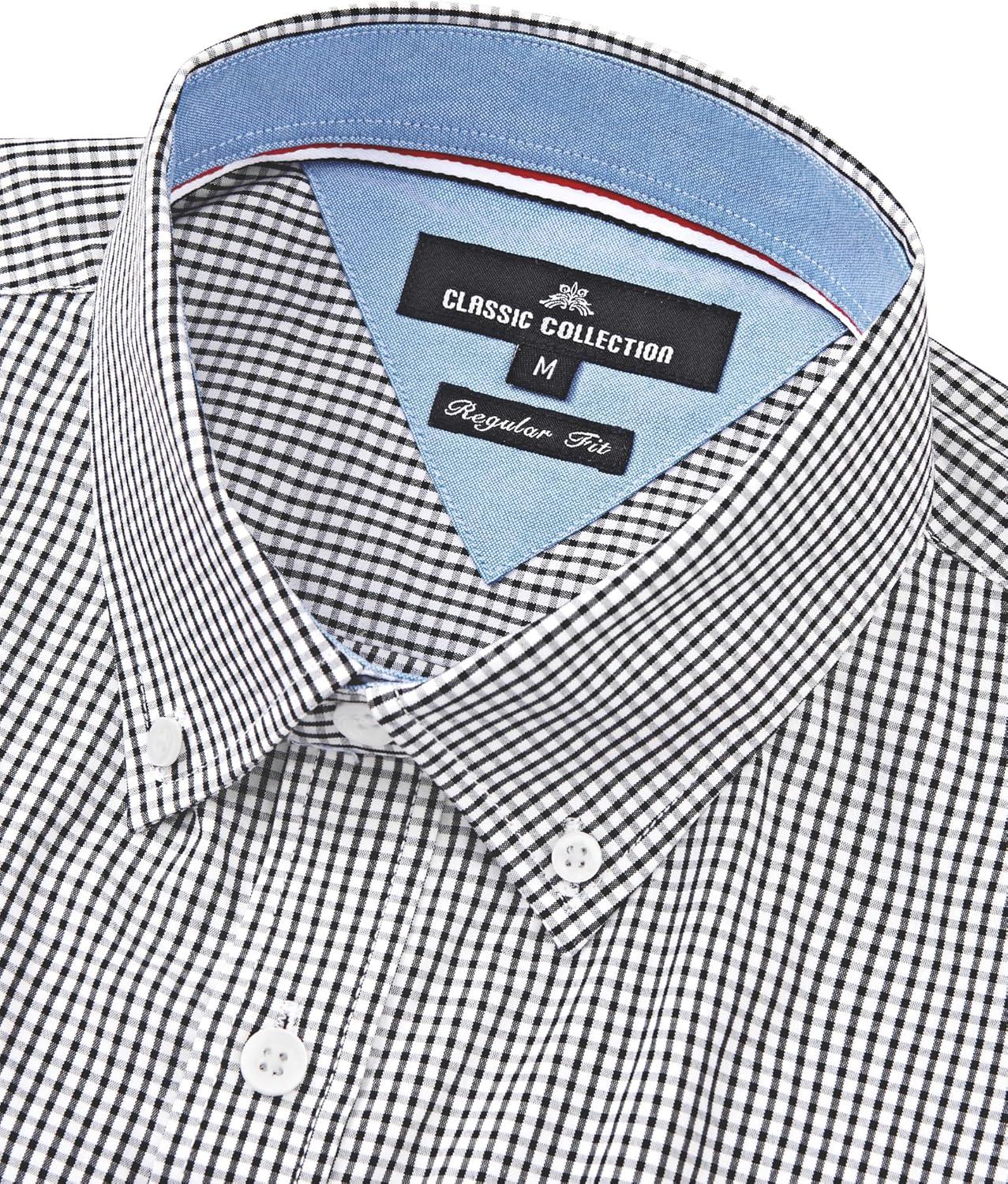 Alimens & Gentle Men’s Plaid Button Down Shirts Cotton Long Sleeve Dress Shirts Regular Fit Gingham Shirts(Black Gingham)