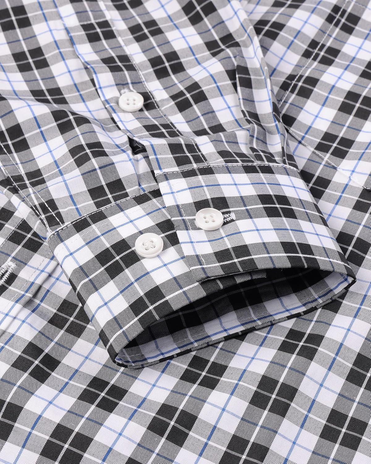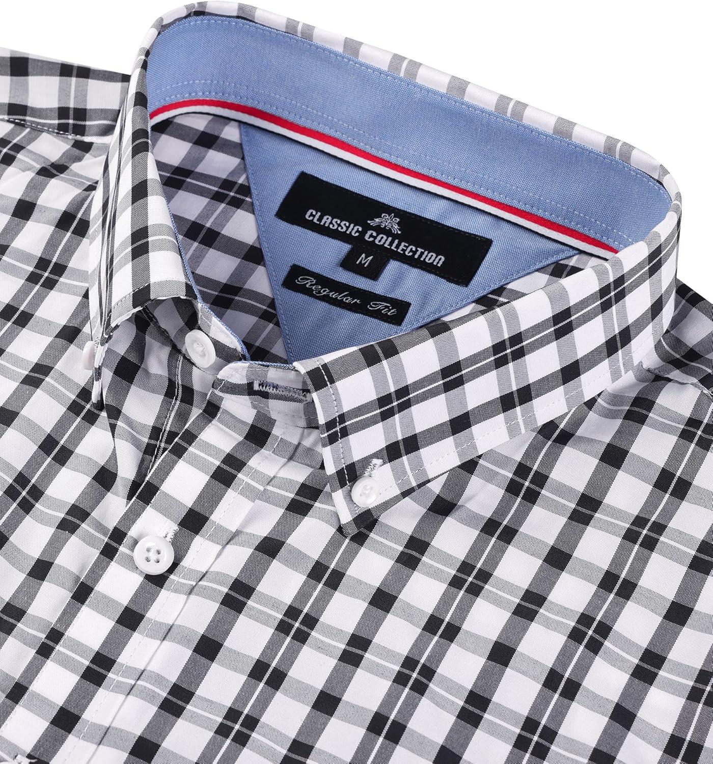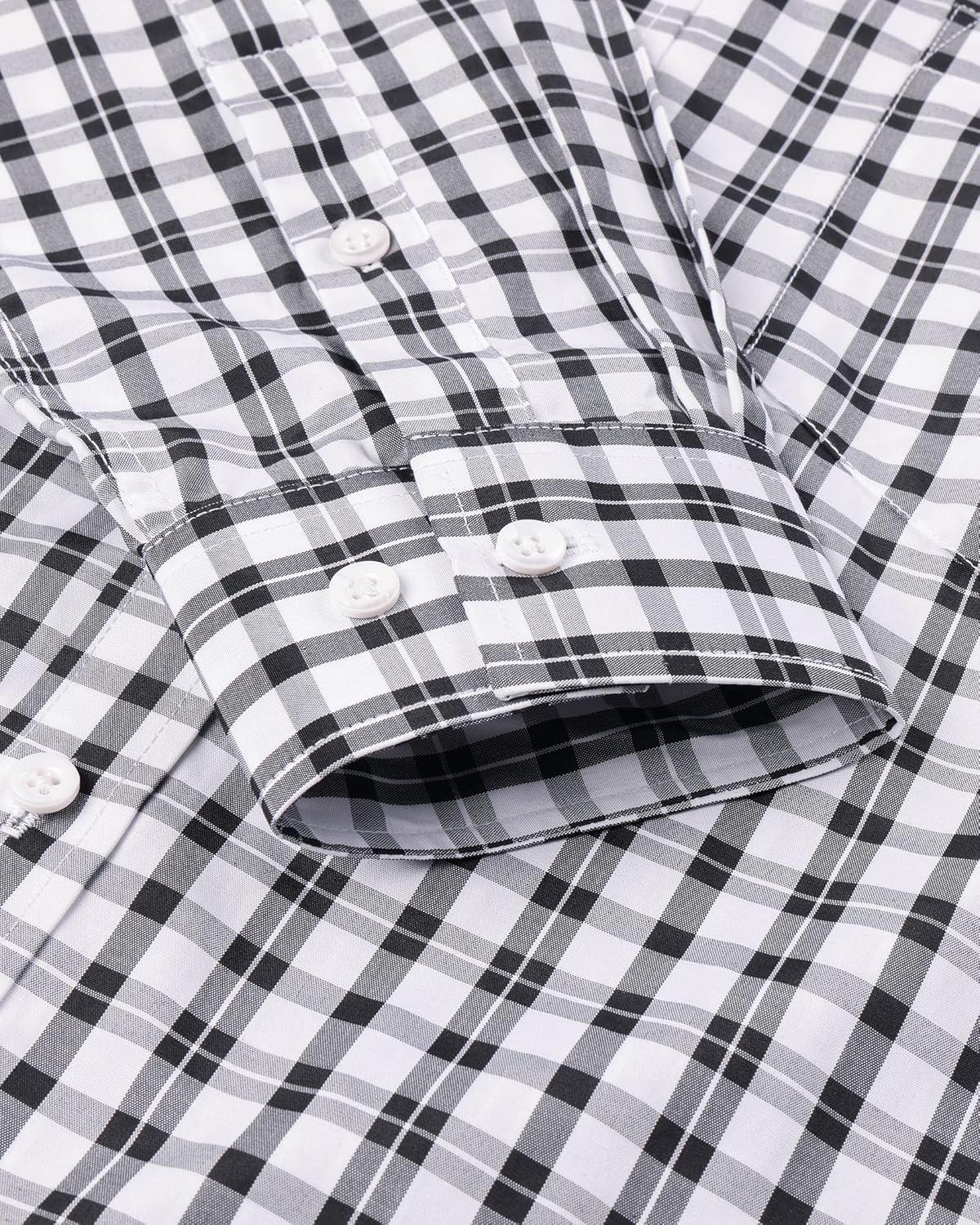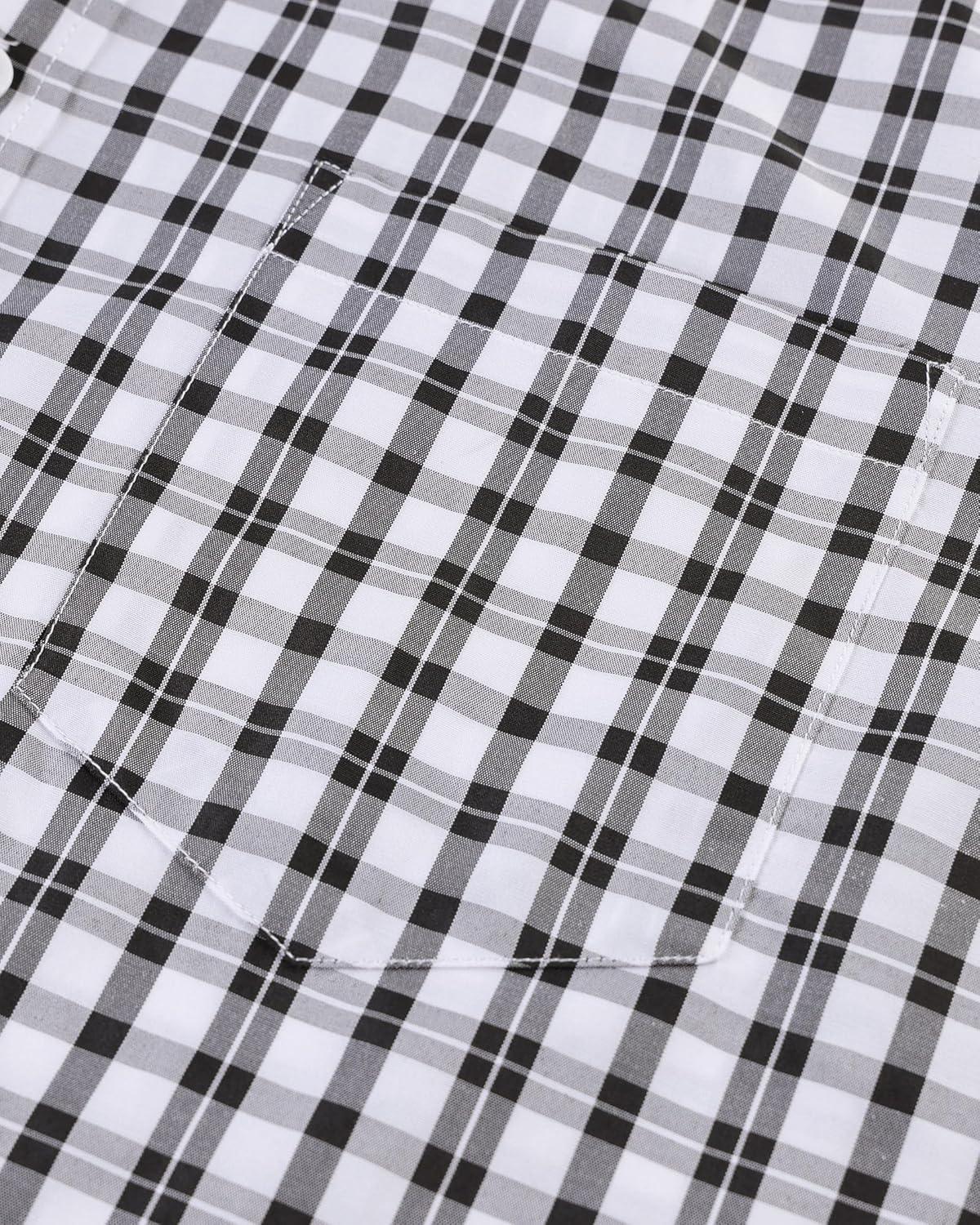 Alimens & Gentle Men’s Plaid Button Down Shirts Cotton Long Sleeve Dress Shirts Regular Fit Gingham Shirts(Black White Plaid)
