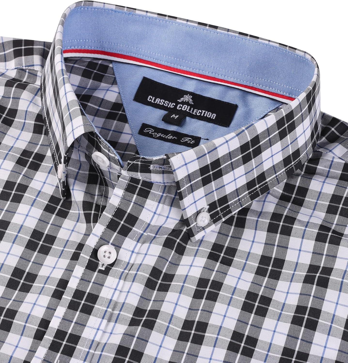 Alimens & Gentle Men’s Plaid Button Down Shirts Cotton Long Sleeve Dress Shirts Regular Fit Gingham Shirts(Black Plaid)