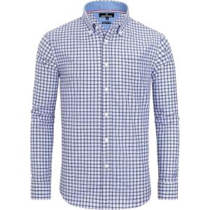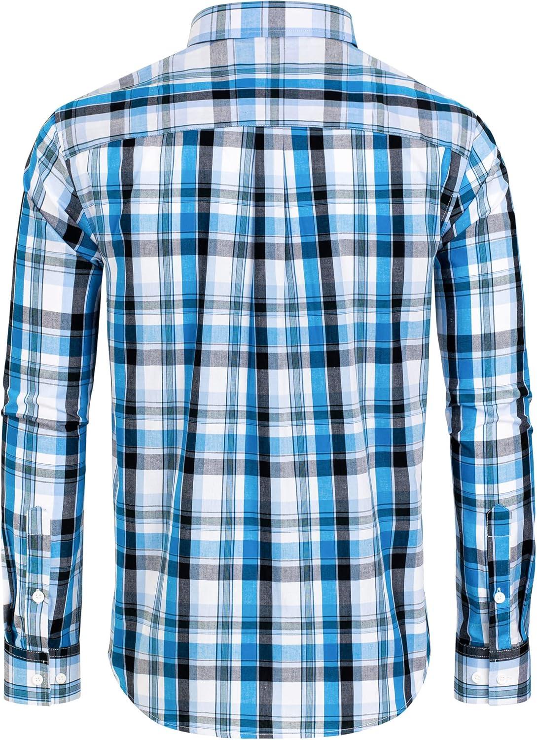 Alimens & Gentle Men’s Plaid Button Down Shirts Cotton Long Sleeve Dress Shirts Regular Fit Gingham Shirts(Blue Check)