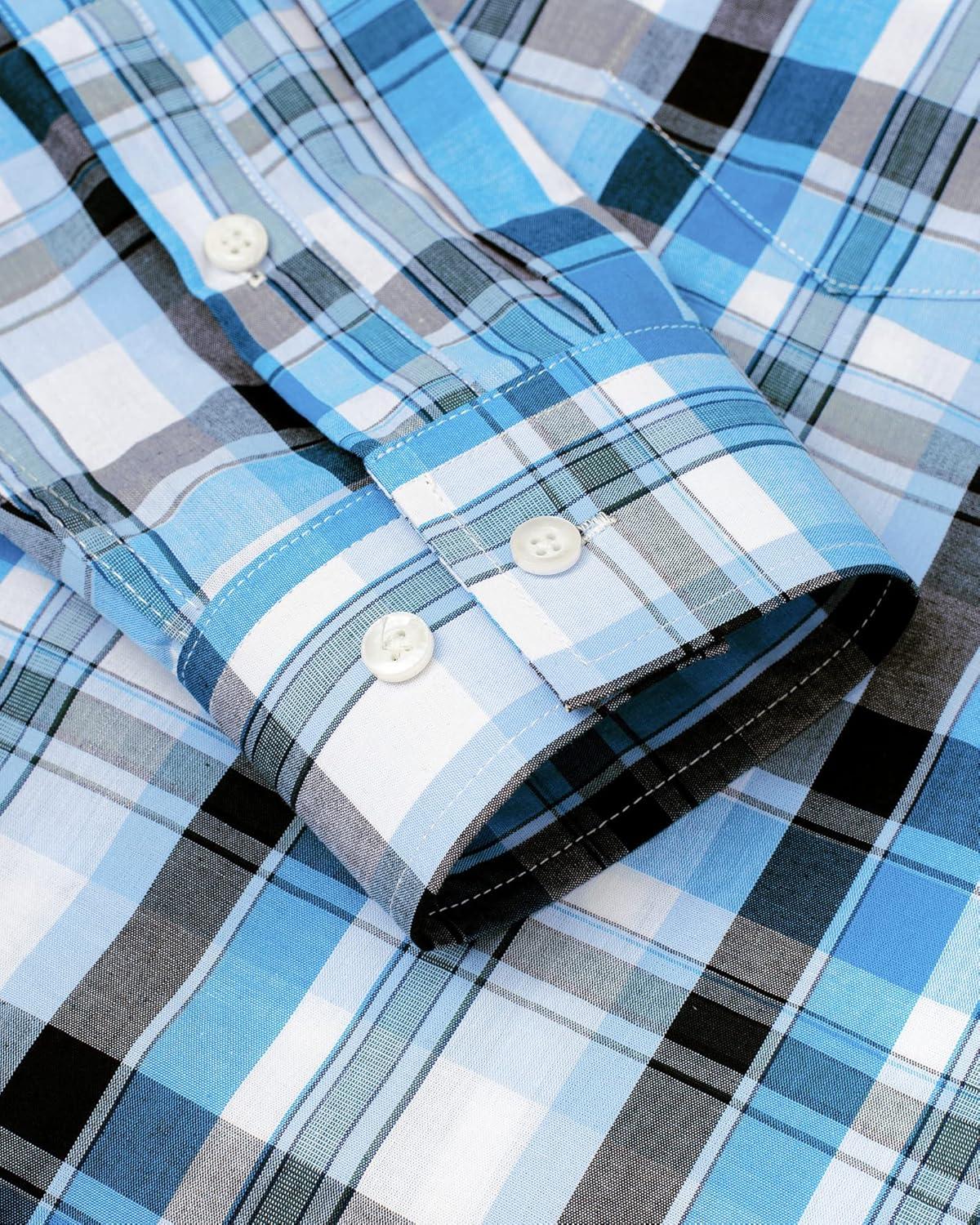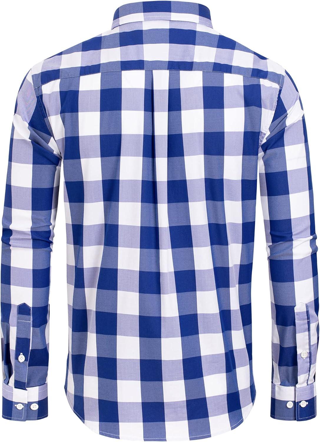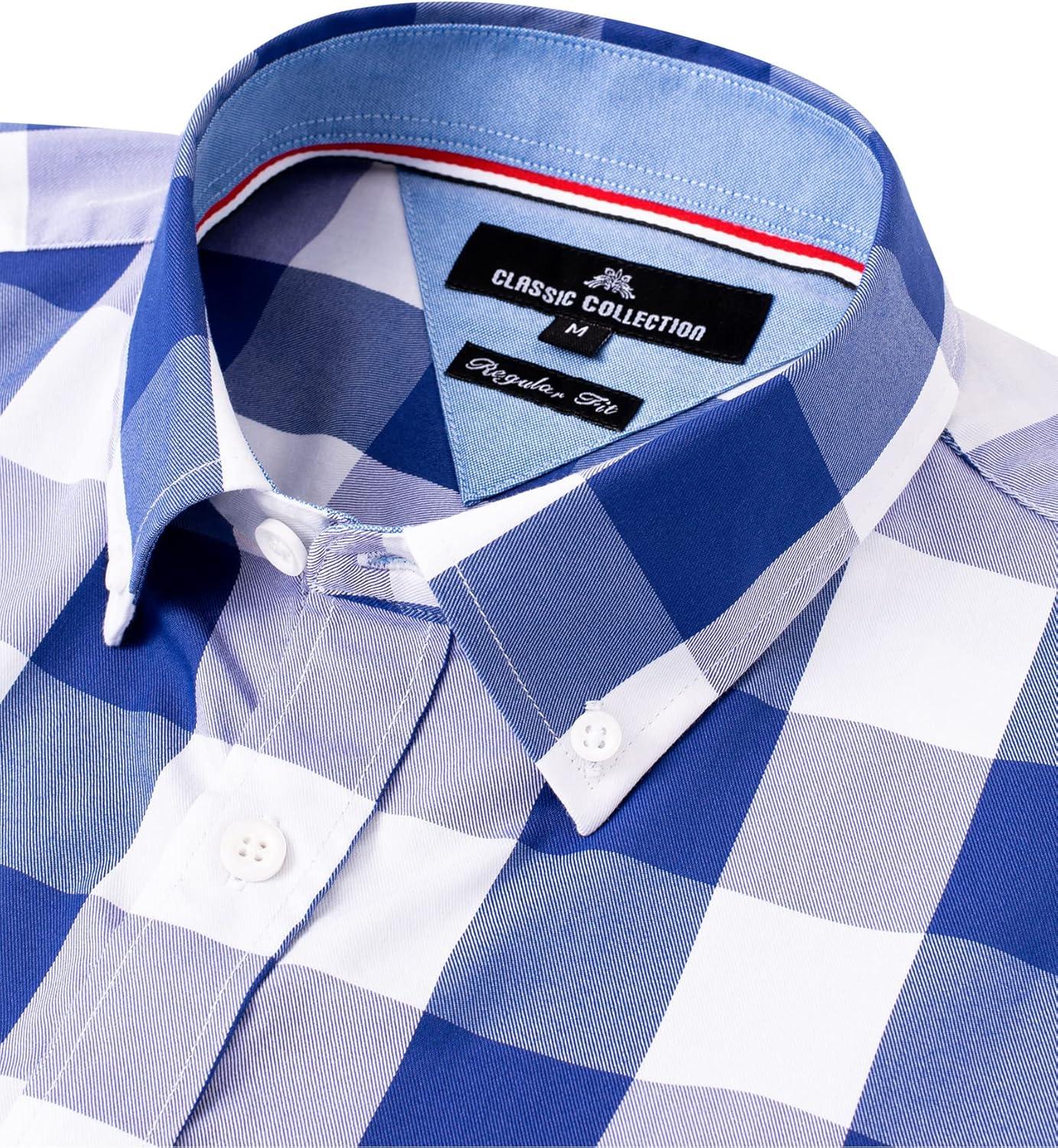 Alimens & Gentle Men’s Plaid Button Down Shirts Cotton Long Sleeve Dress Shirts Regular Fit Gingham Shirts(Blue Large Plaid)