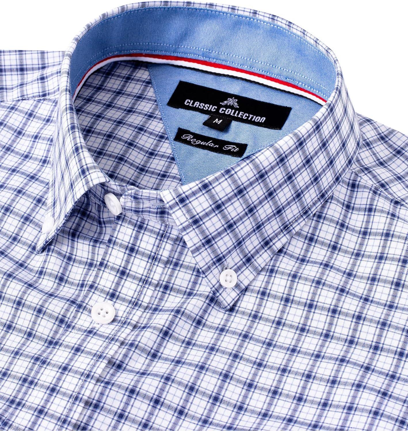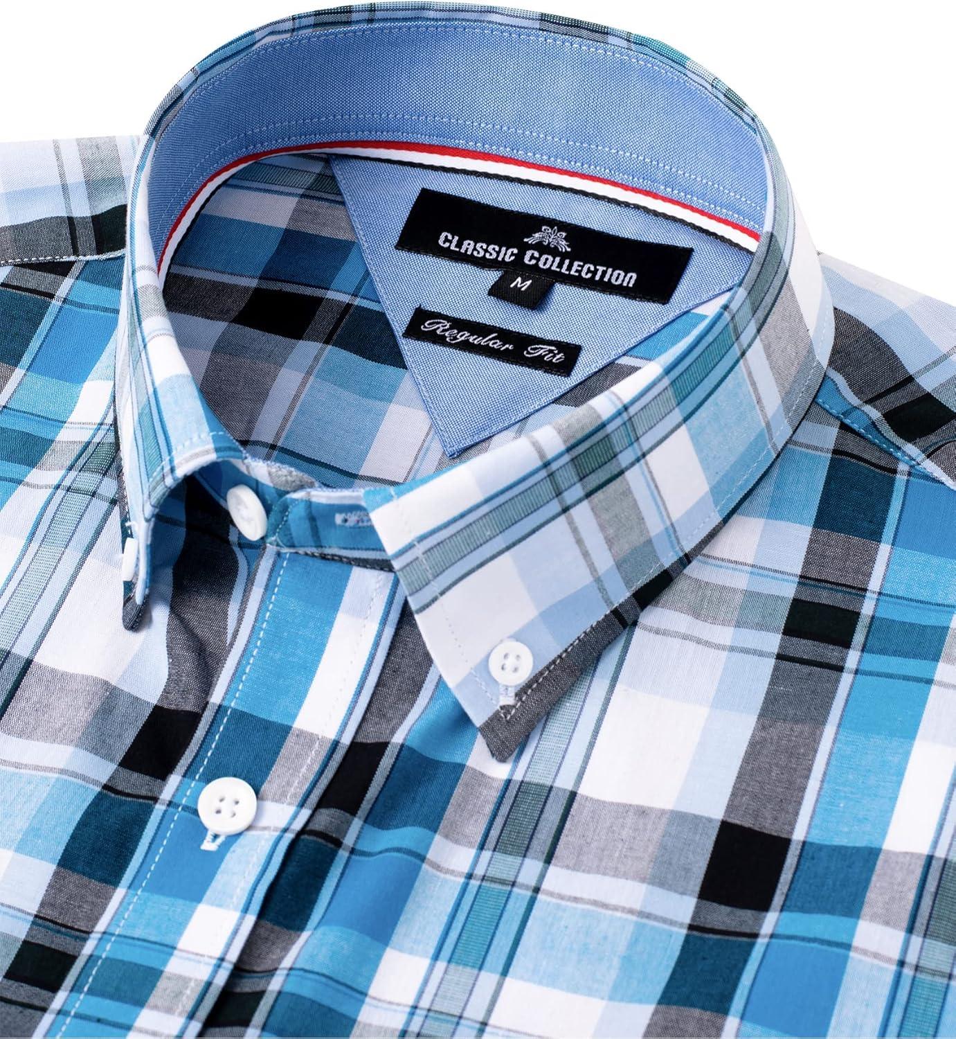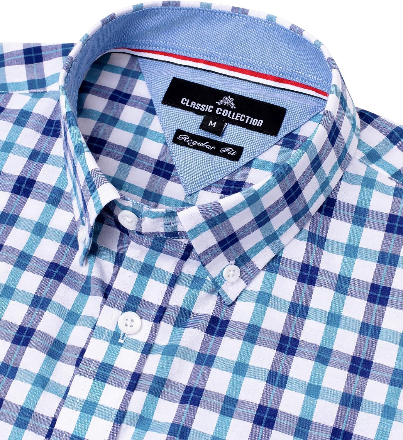 Alimens & Gentle Men’s Plaid Button Down Shirts Cotton Long Sleeve Dress Shirts Regular Fit Gingham Shirts(Blue Large Plaid)