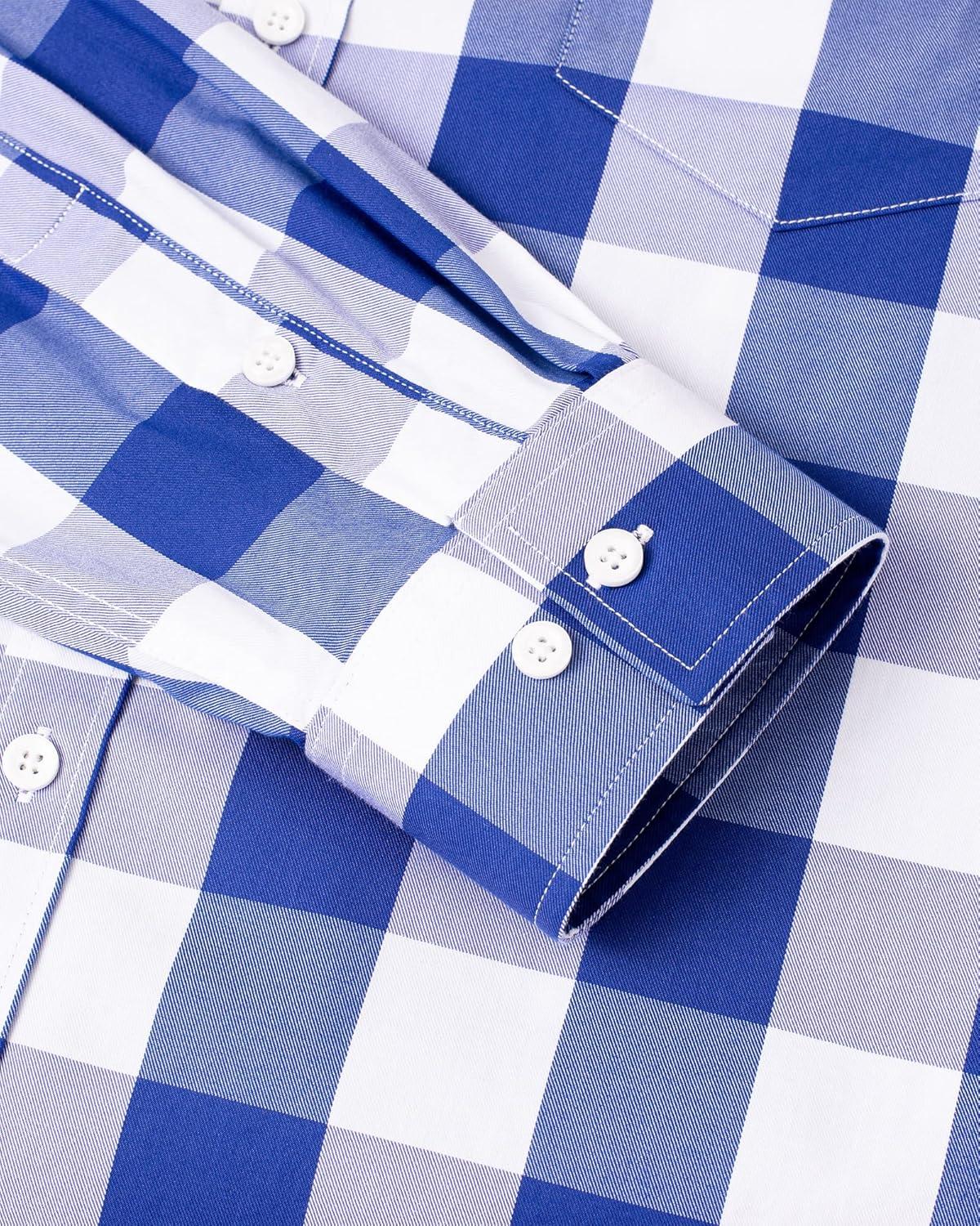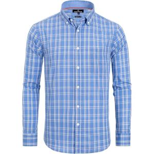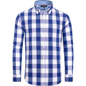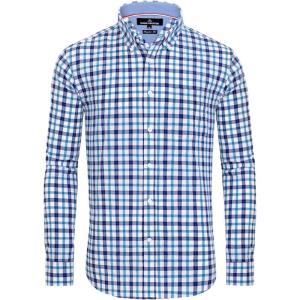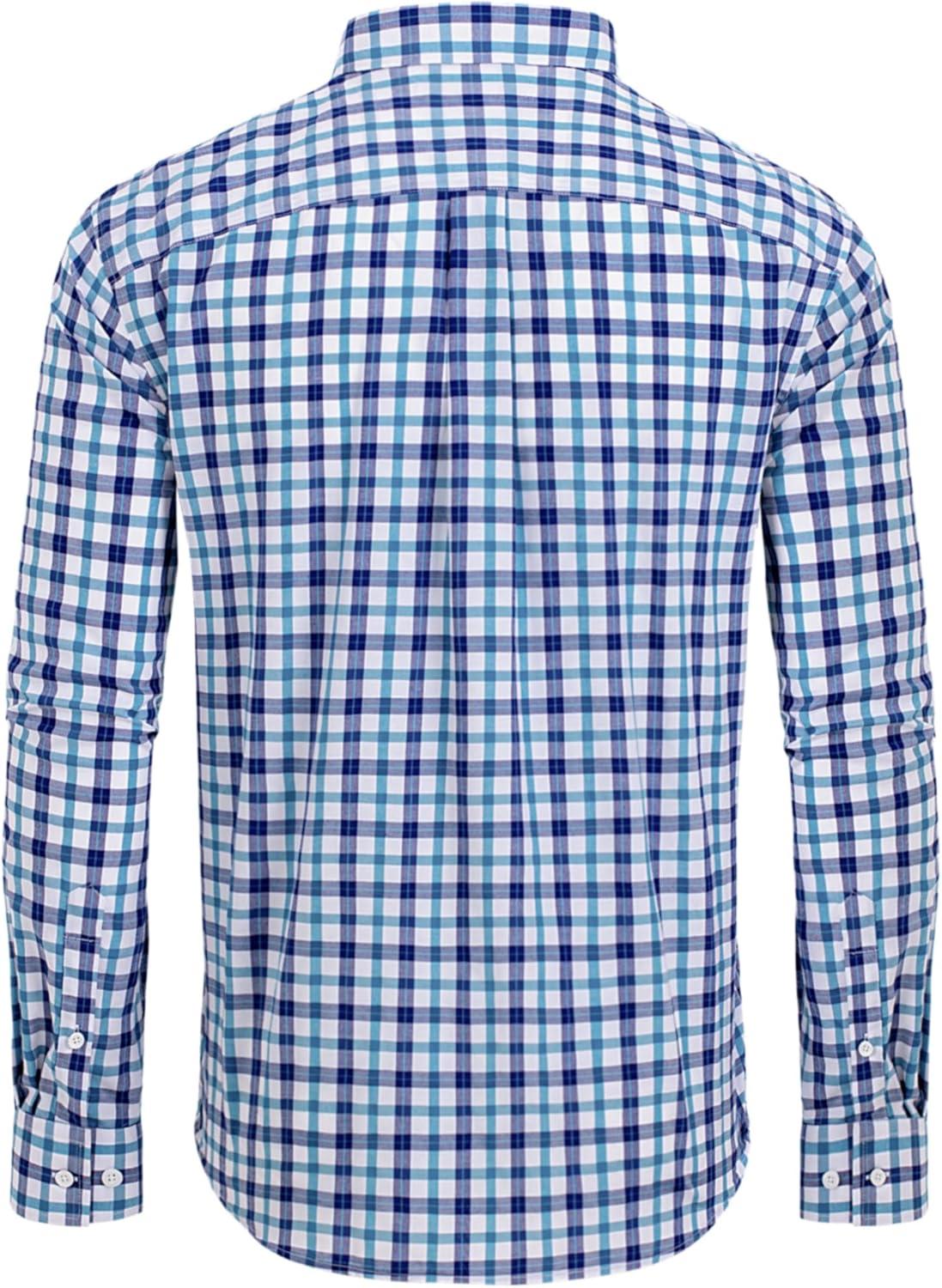 Alimens & Gentle Men’s Plaid Button Down Shirts Cotton Long Sleeve Dress Shirts Regular Fit Gingham Shirts(Blue Gingham)