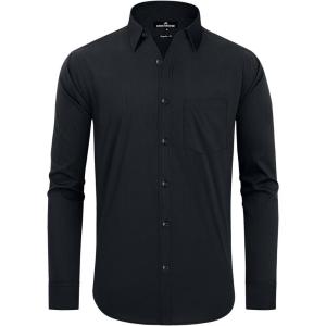 Alimens & Gentle Men’s Dress Shirts Regular Fit Long Sleeve Button Down Shirts Wrinkle Free Cotton Shirts(Black)