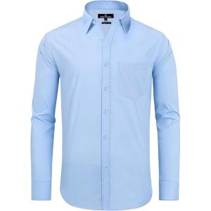 Alimens & Gentle Men’s Dress Shirts Regular Fit Long Sleeve Button Down Shirts Wrinkle Free Cotton Shirts(Light Blue)