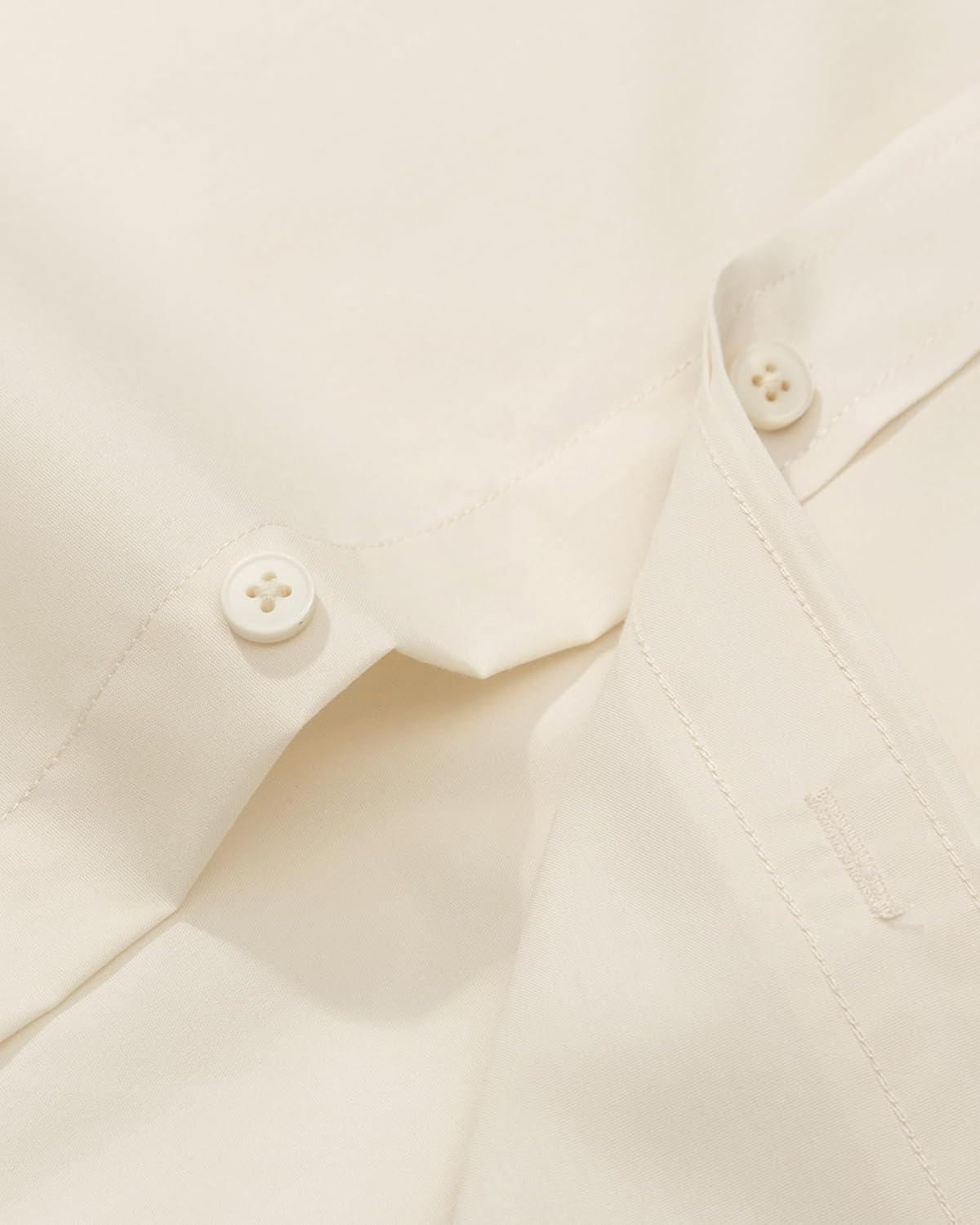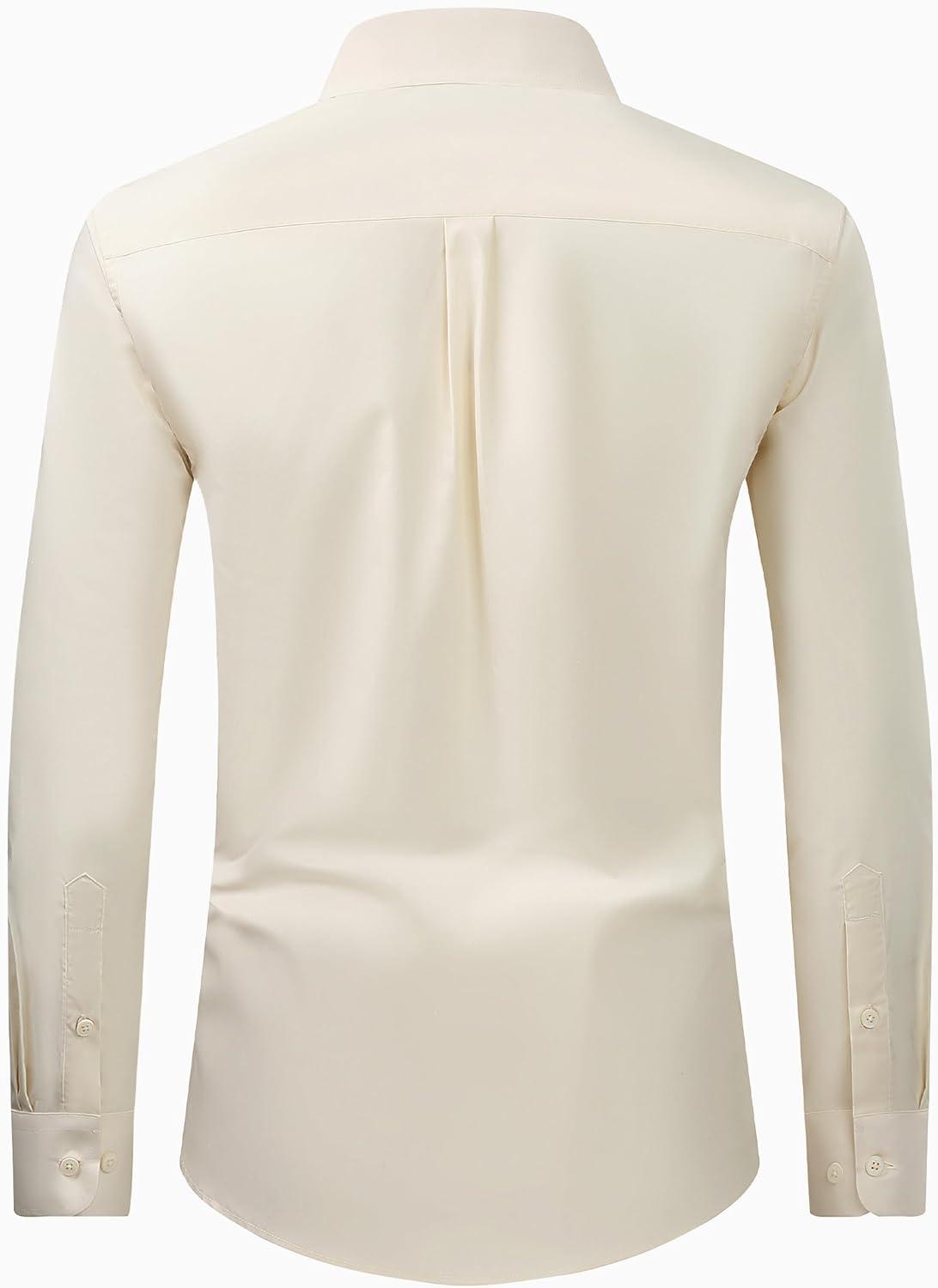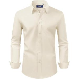 Alimens & Gentle Men’s Dress Shirt Regular Fit Stretch Stain Shield Long Sleeve Solid Business Wedding Button Down Shirts(Beige)