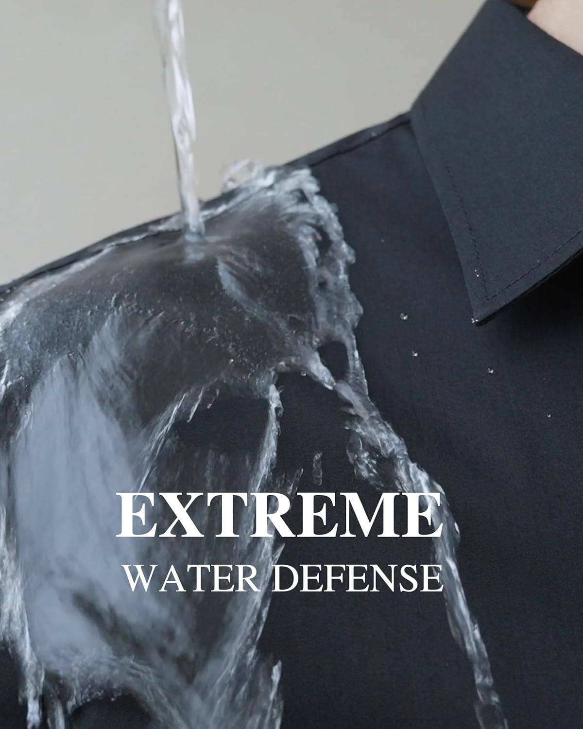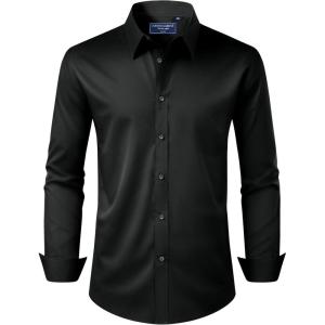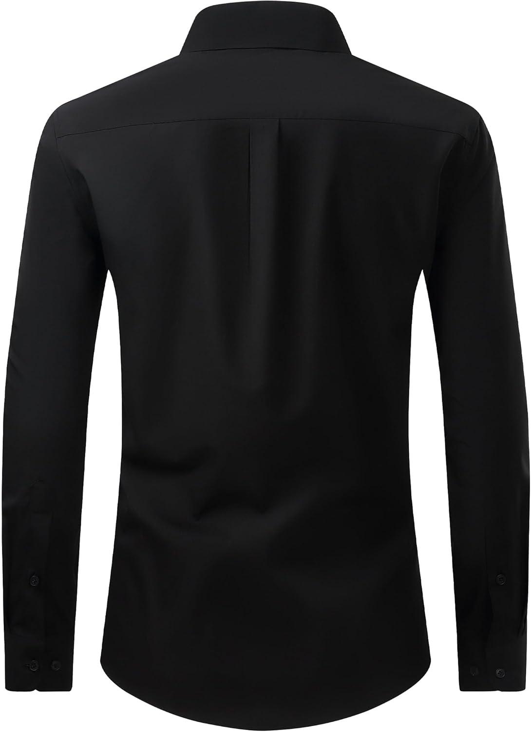 Alimens & Gentle Men’s Dress Shirt Regular Fit Stretch Stain Shield Long Sleeve Solid Business Wedding Button Down Shirts(Black)