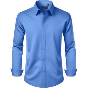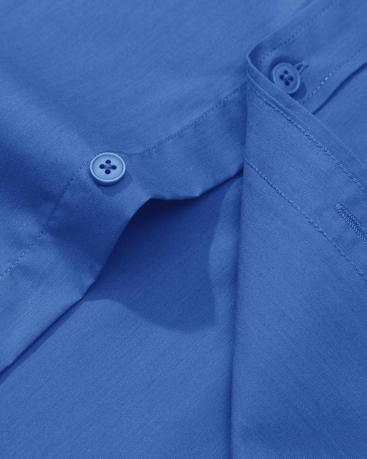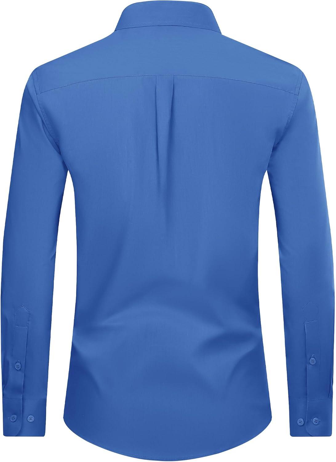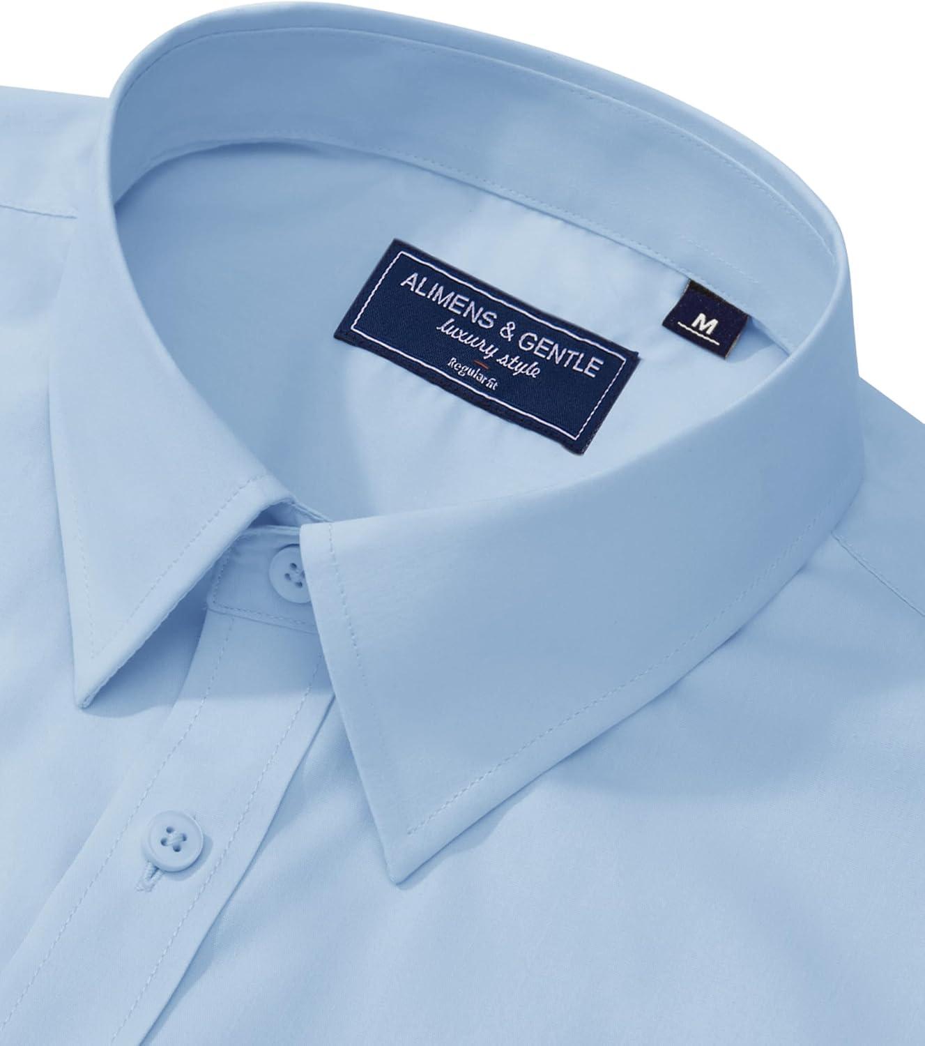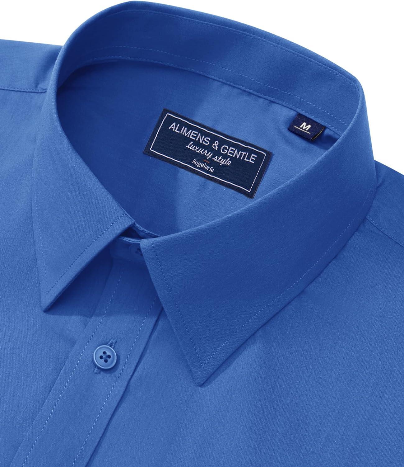 Alimens & Gentle Men’s Dress Shirt Regular Fit Stretch Stain Shield Long Sleeve Solid Business Wedding Button Down Shirts(Blue)