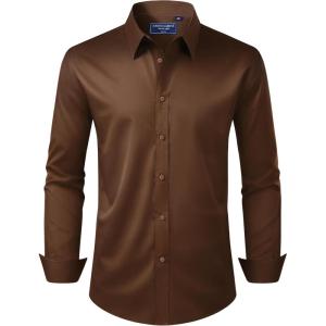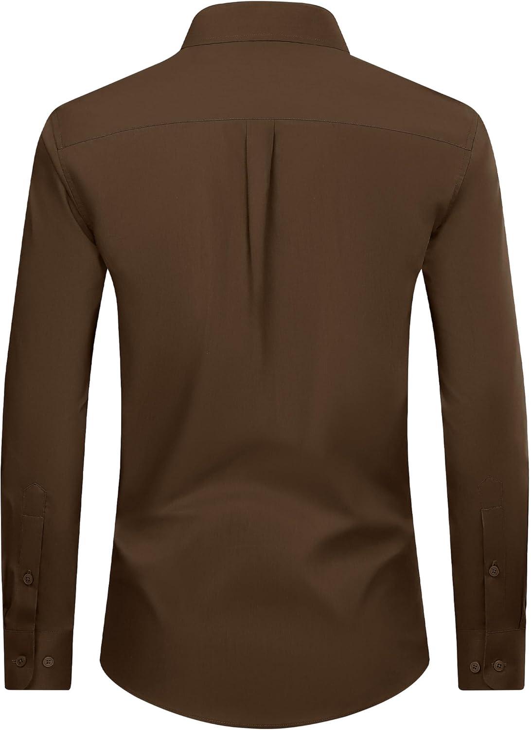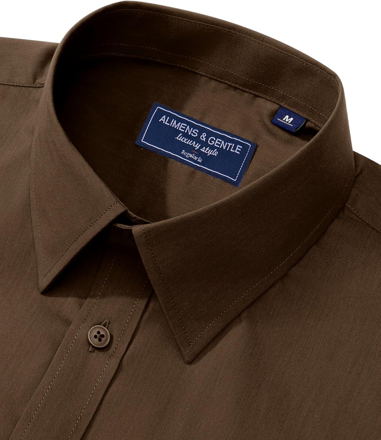 Alimens & Gentle Men’s Dress Shirt Regular Fit Stretch Stain Shield Long Sleeve Solid Business Wedding Button Down Shirts(Brown)