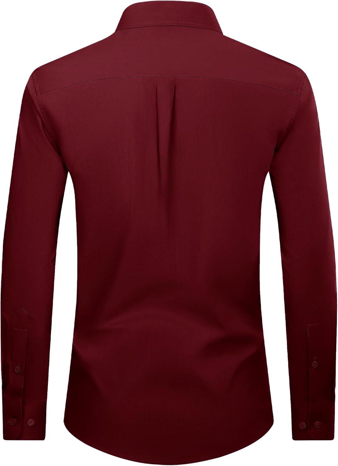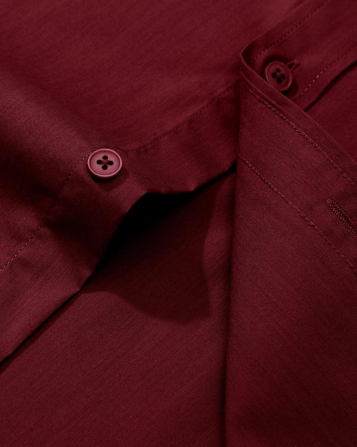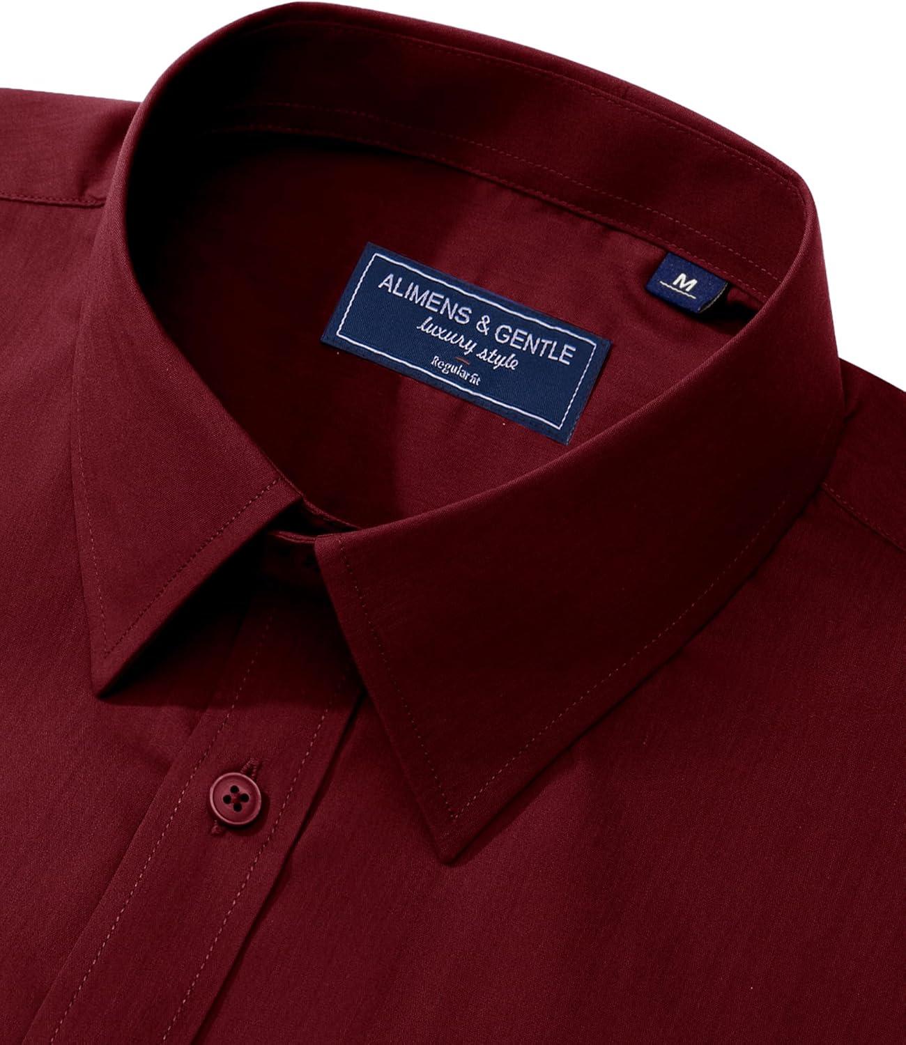 Alimens & Gentle Men’s Dress Shirt Regular Fit Stretch Stain Shield Long Sleeve Solid Business Wedding Button Down Shirts(Burgundy / Red)