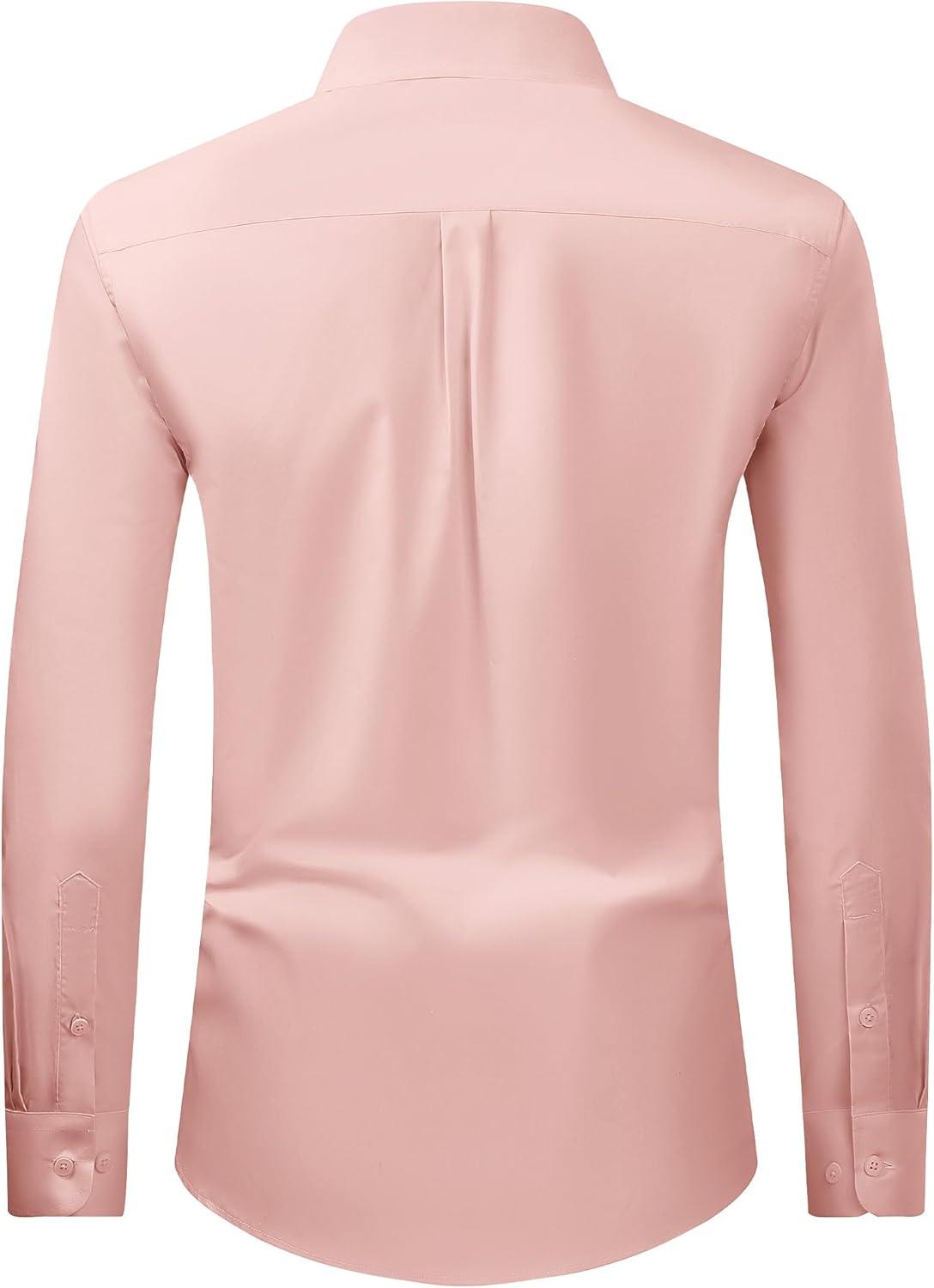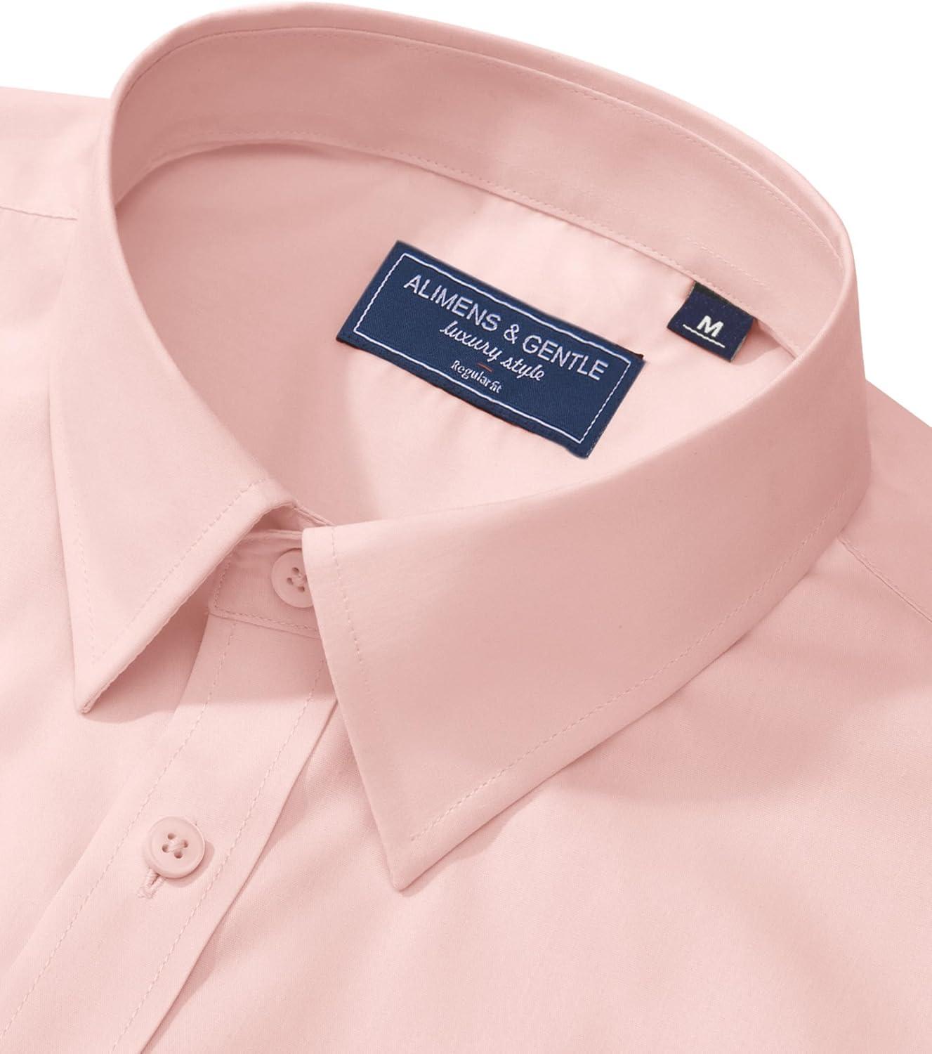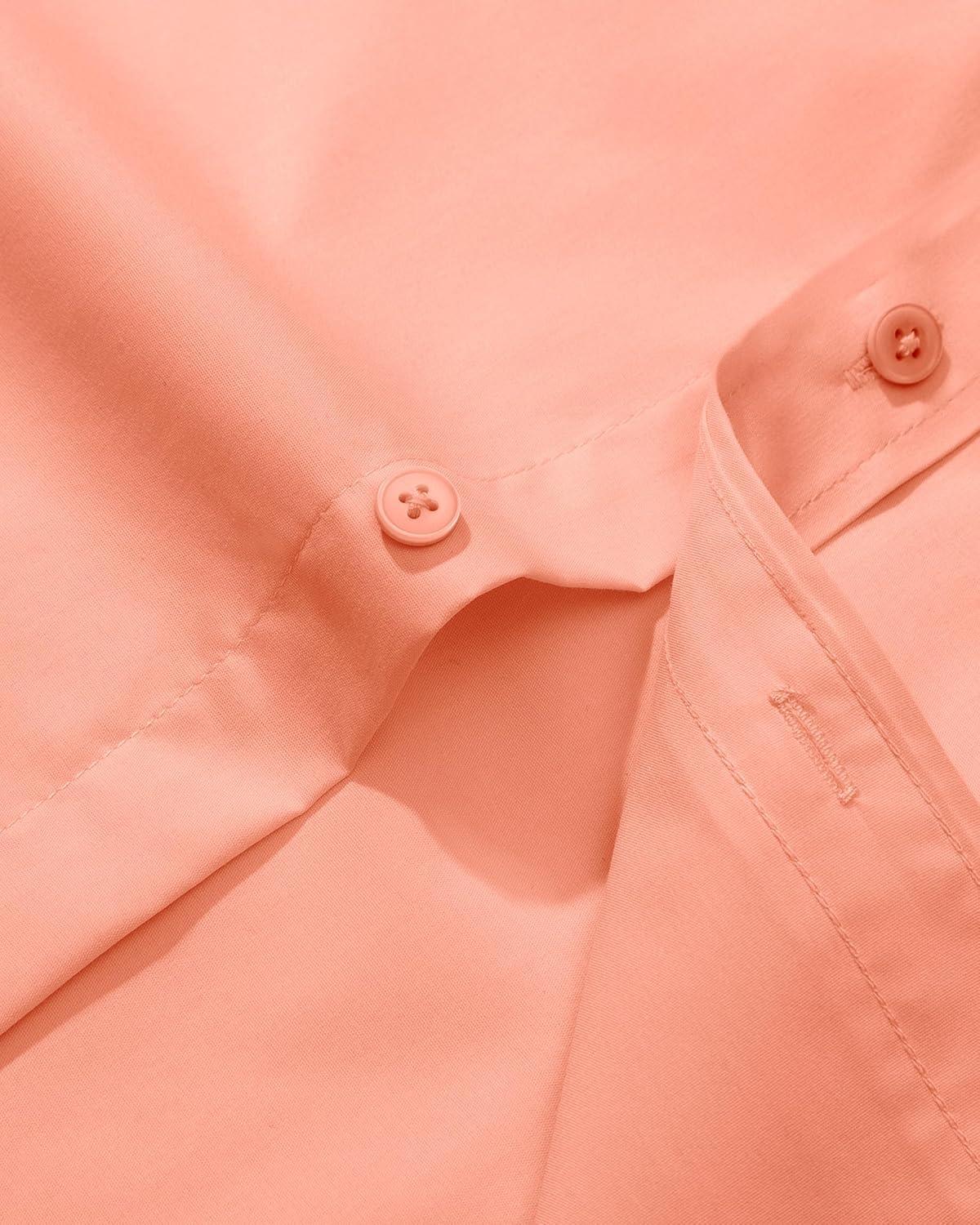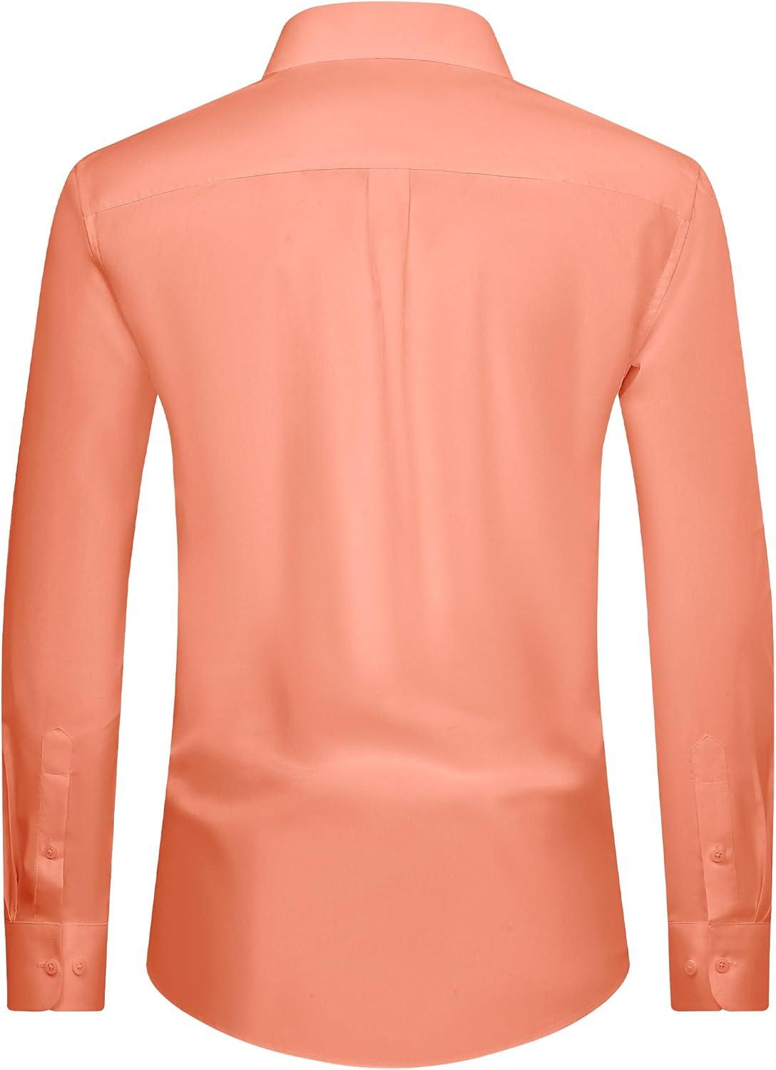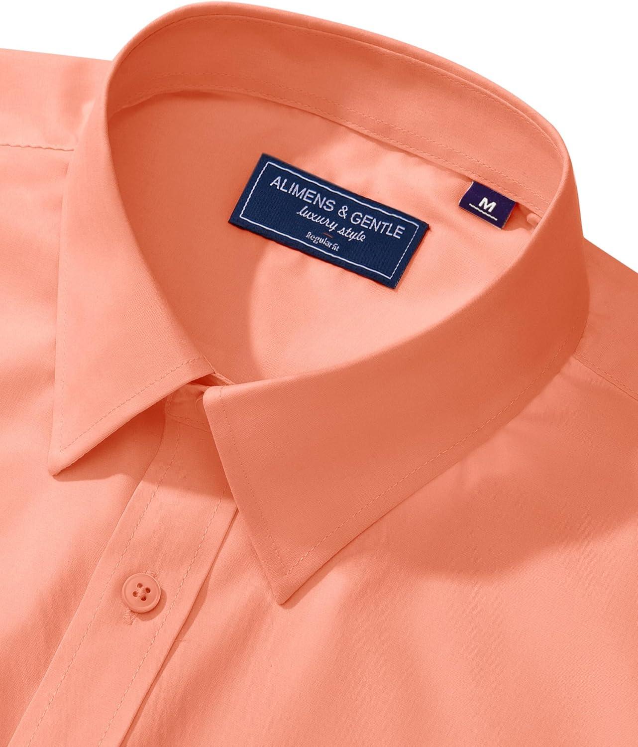 Alimens & Gentle Men’s Dress Shirt Regular Fit Stretch Stain Shield Long Sleeve Solid Business Wedding Button Down Shirts(Coral)