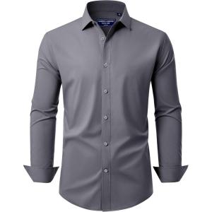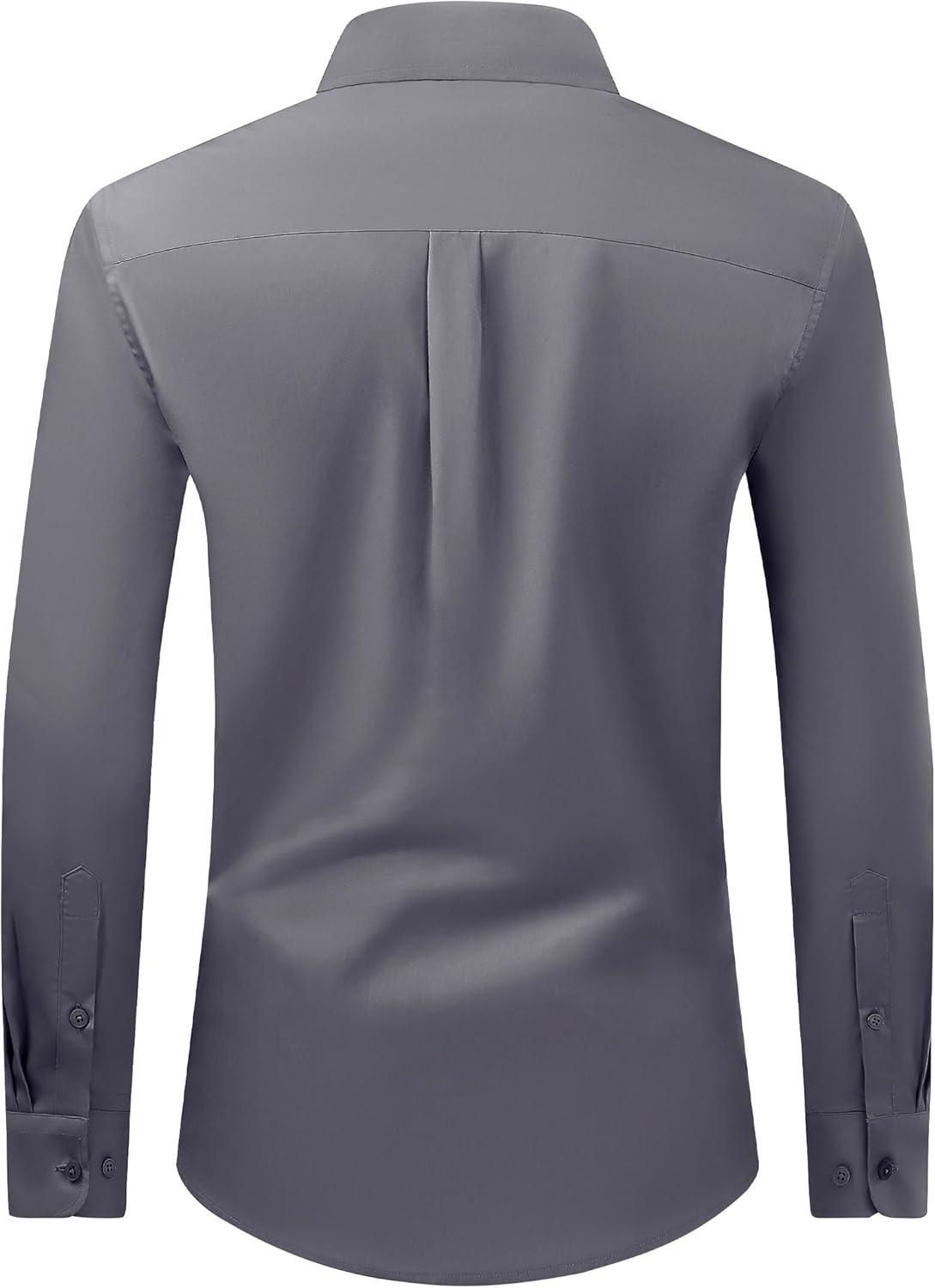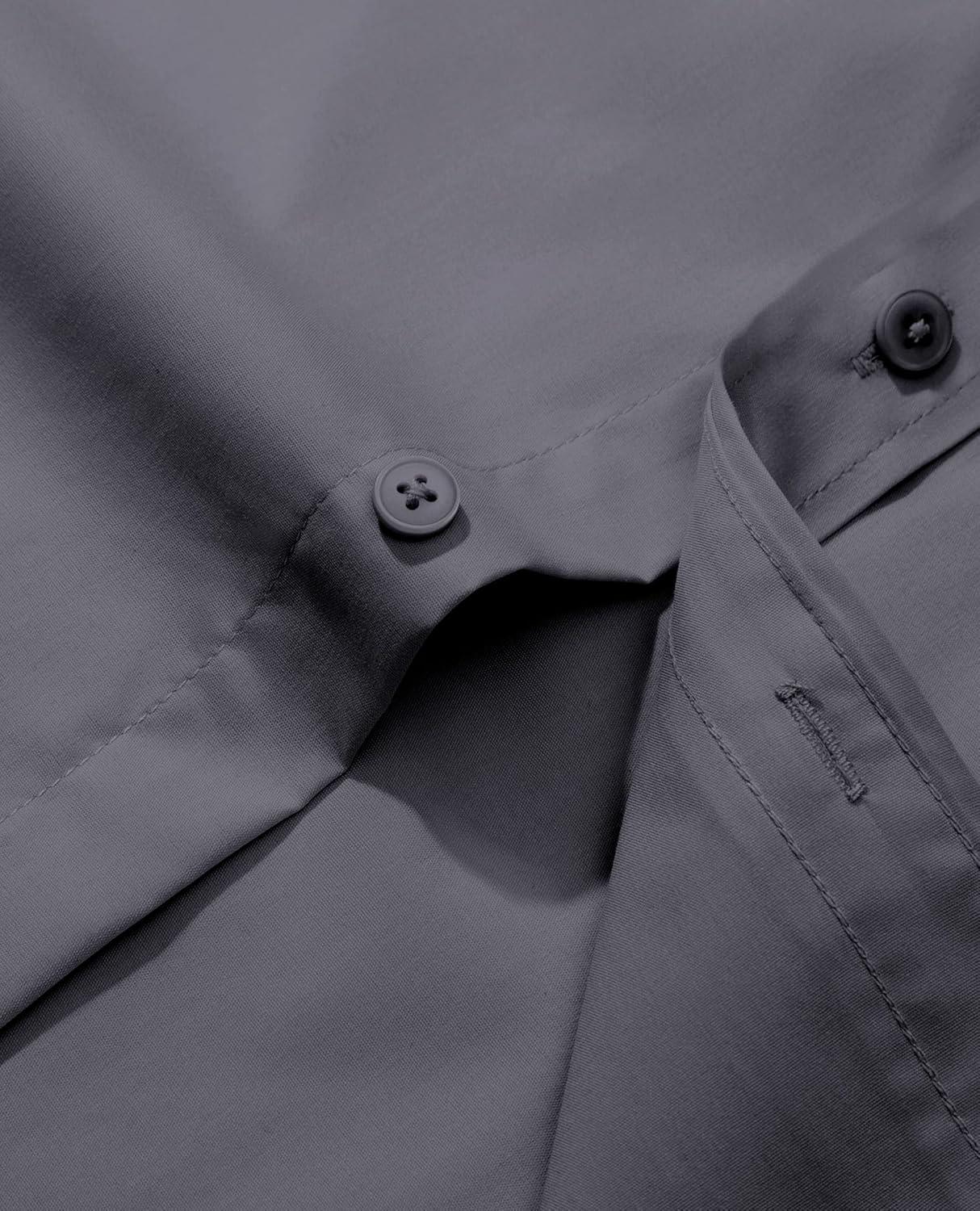 Alimens & Gentle Men’s Dress Shirt Regular Fit Stretch Stain Shield Long Sleeve Solid Business Wedding Button Down Shirts(Dark Grey)