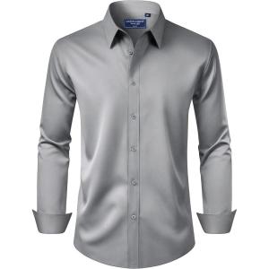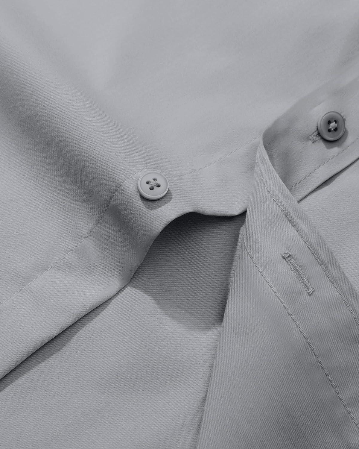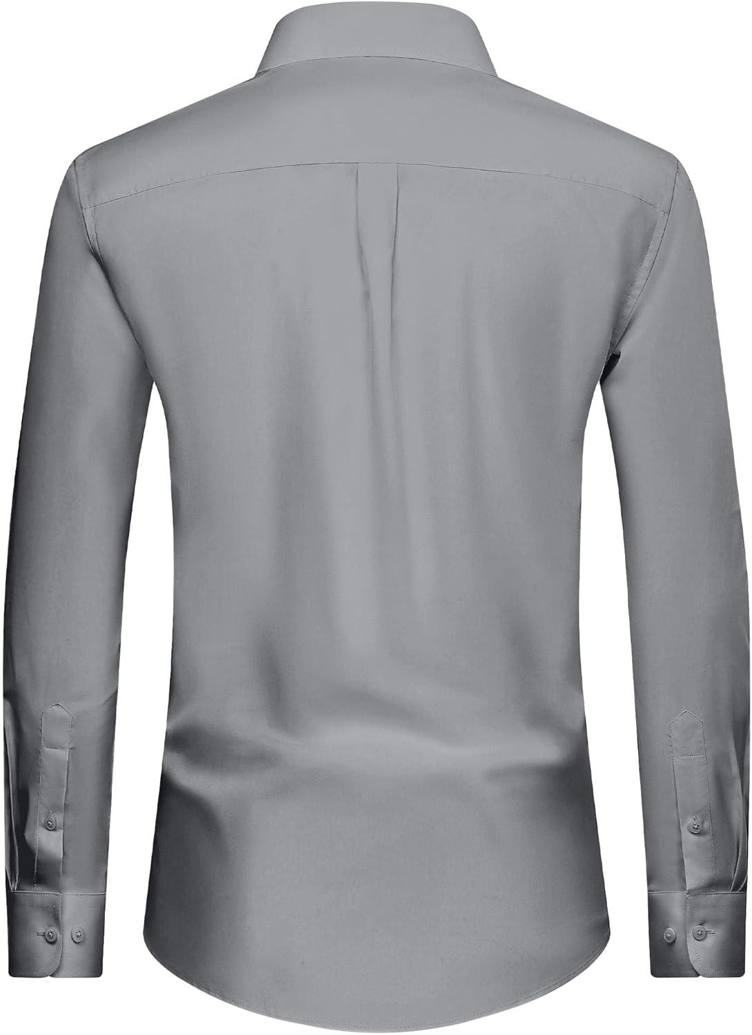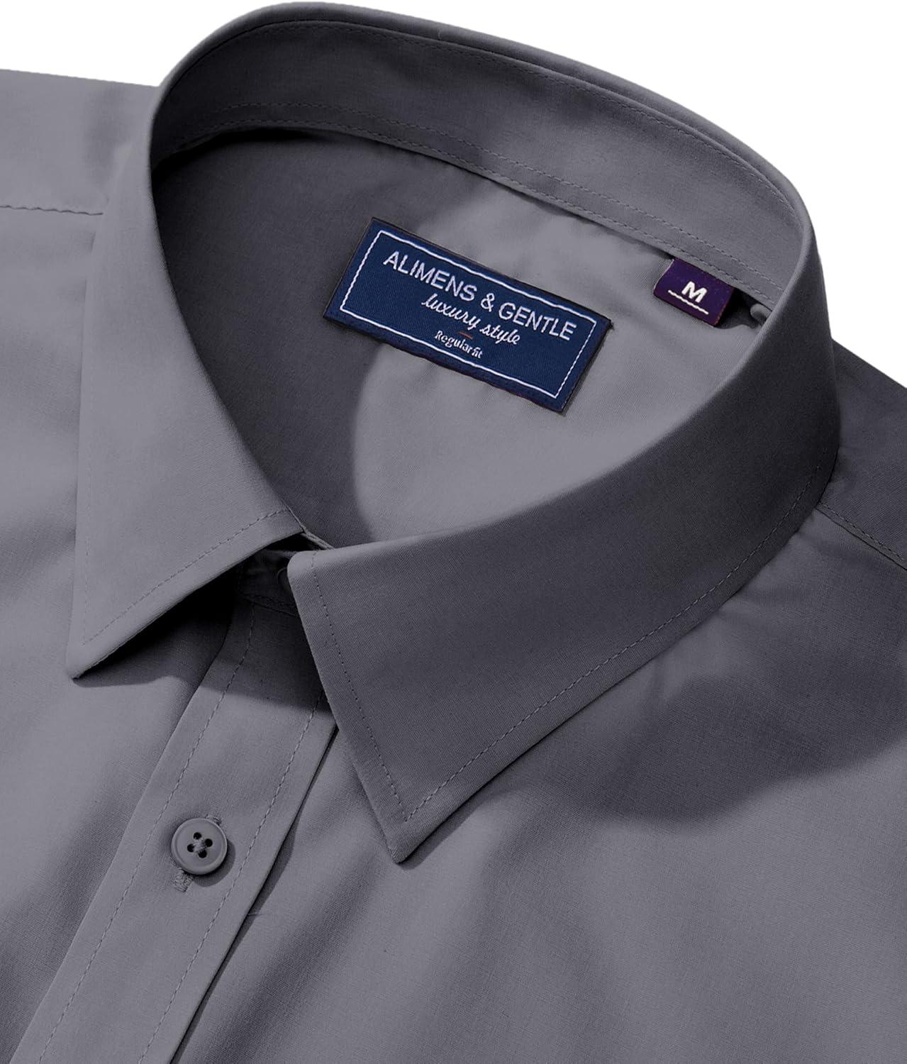 Alimens & Gentle Men’s Dress Shirt Regular Fit Stretch Stain Shield Long Sleeve Solid Business Wedding Button Down Shirts(Grey)