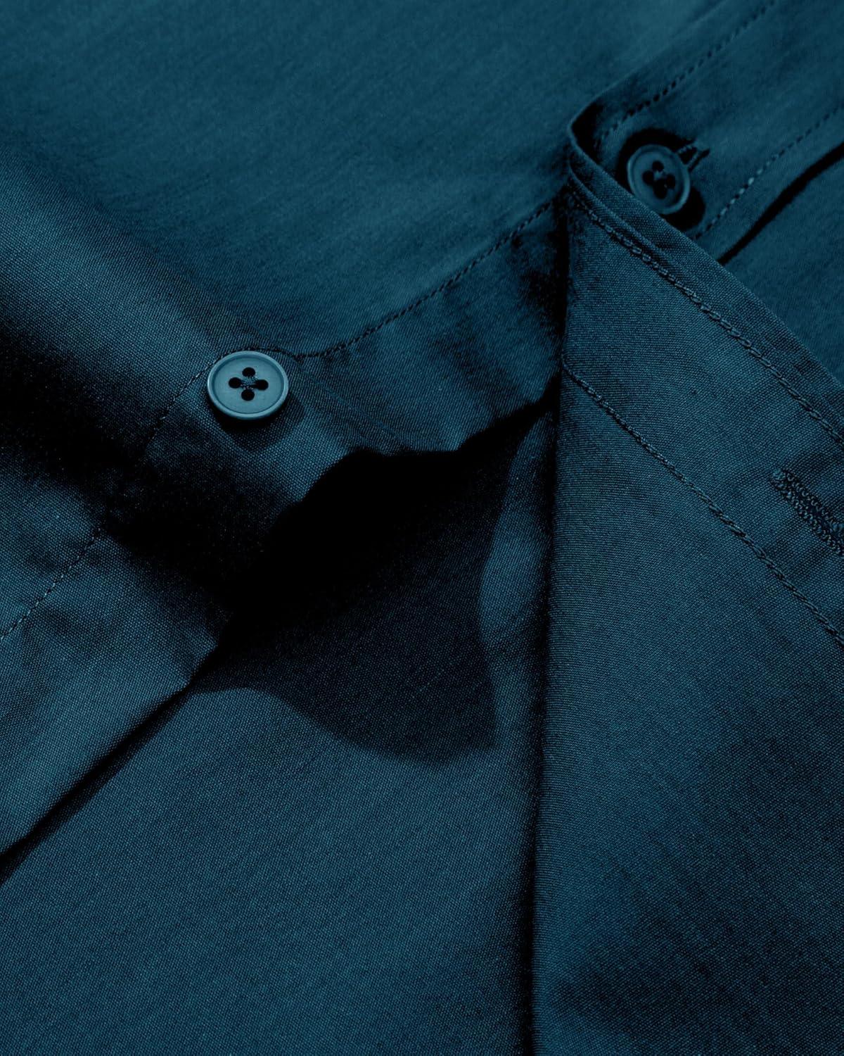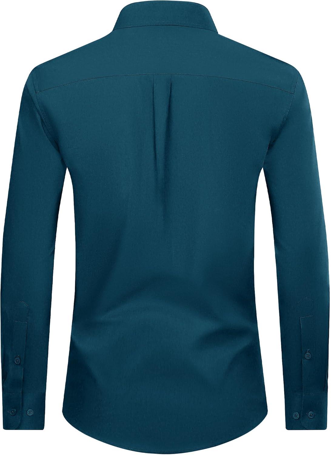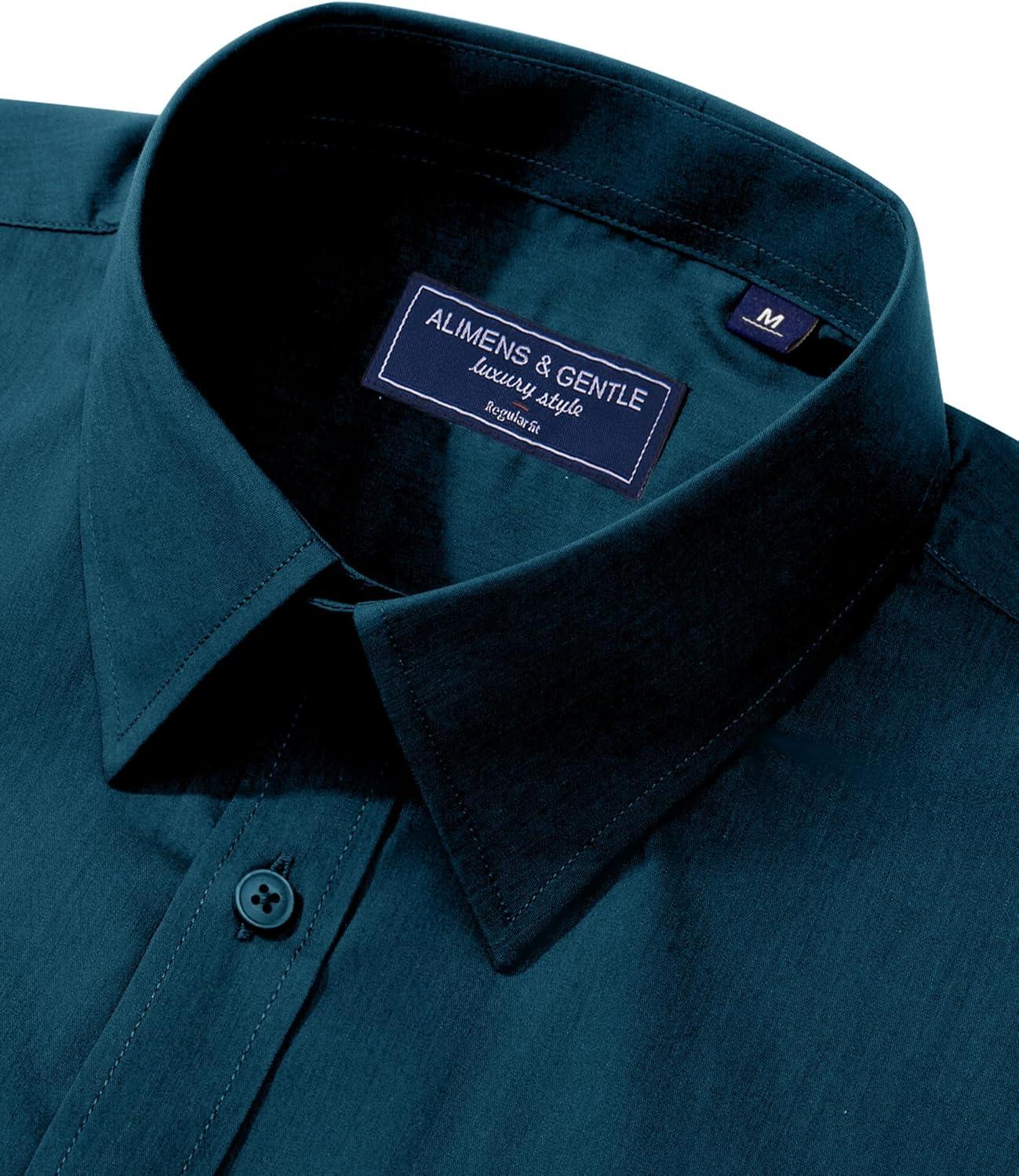 Alimens & Gentle Men’s Dress Shirt Regular Fit Stretch Stain Shield Long Sleeve Solid Business Wedding Button Down Shirts(Deep Sea)