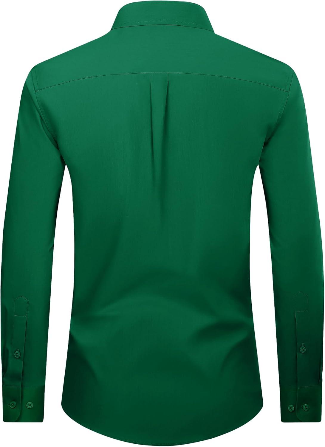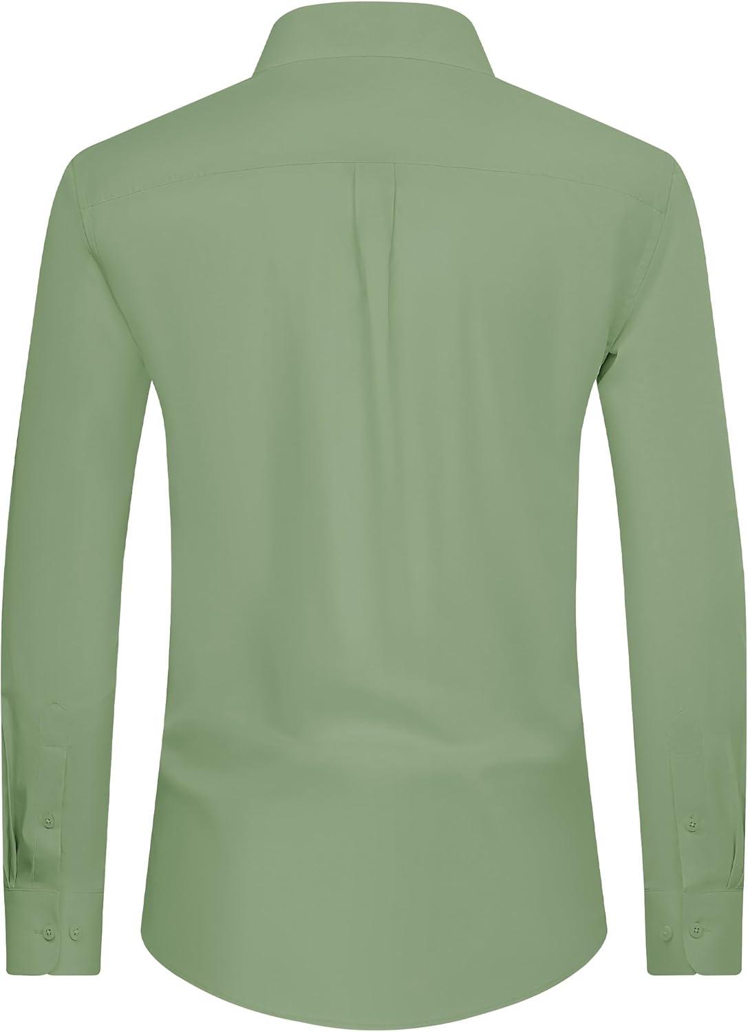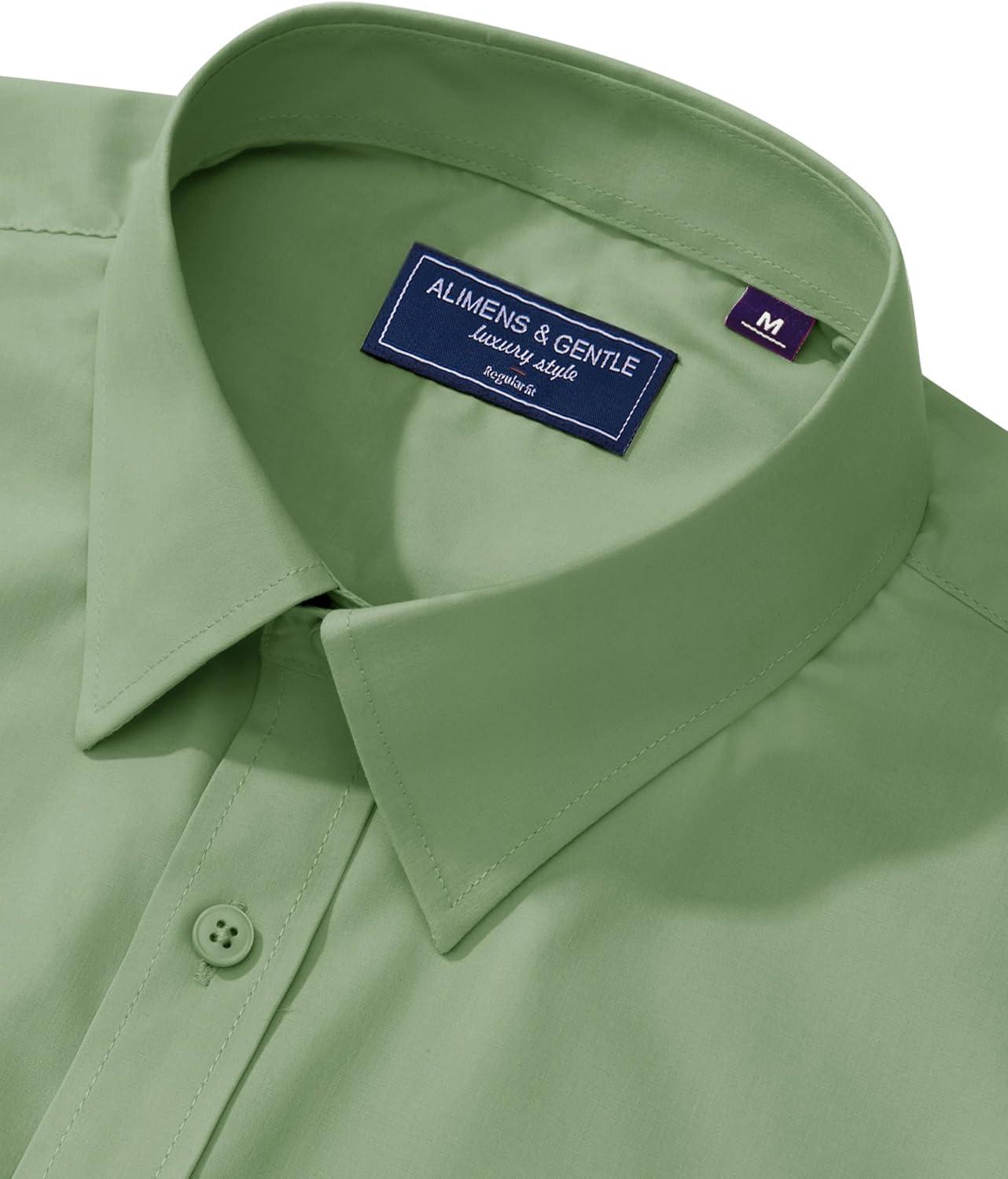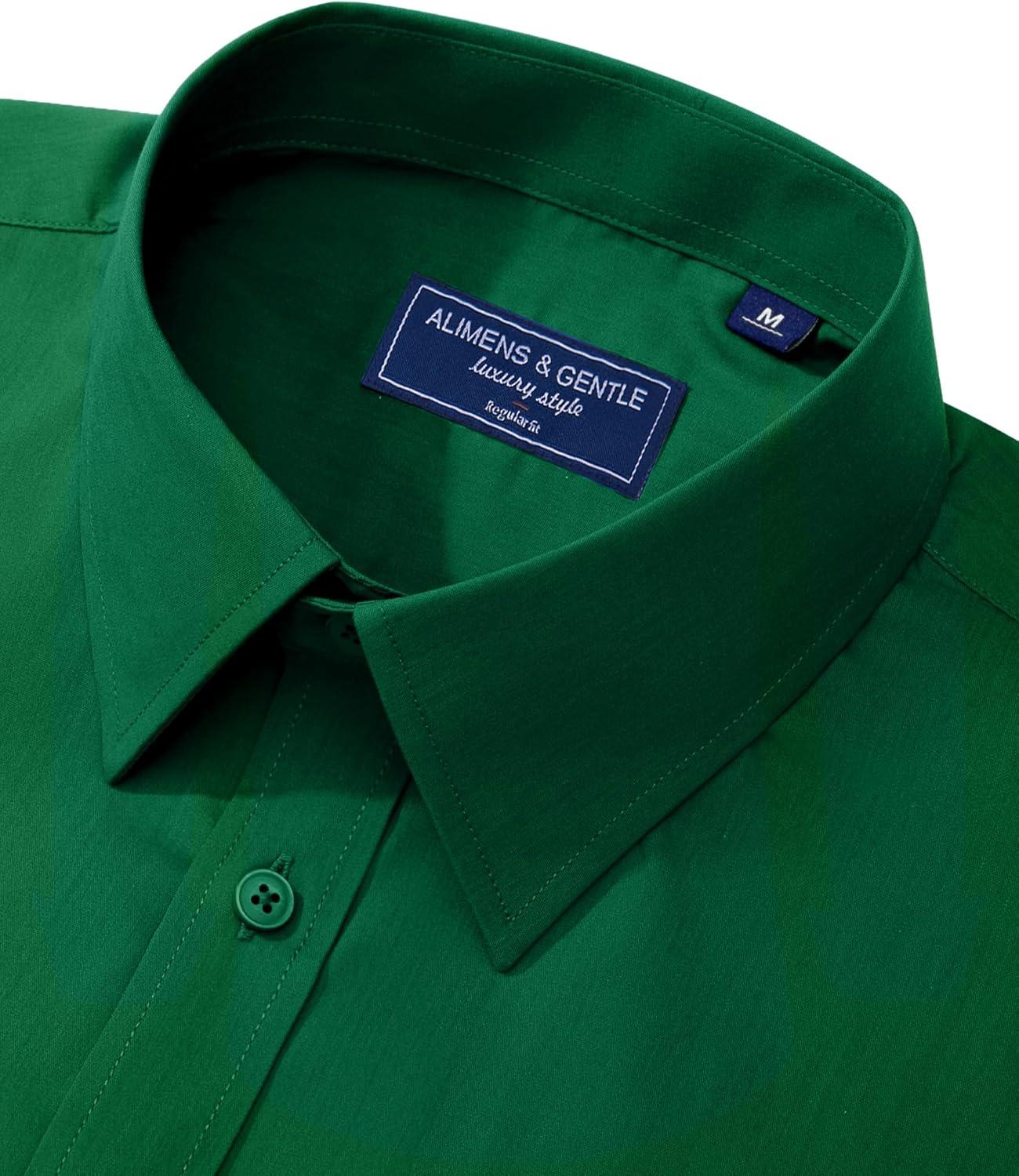 Alimens & Gentle Men’s Dress Shirt Regular Fit Stretch Stain Shield Long Sleeve Solid Business Wedding Button Down Shirts(Green)
