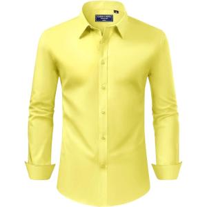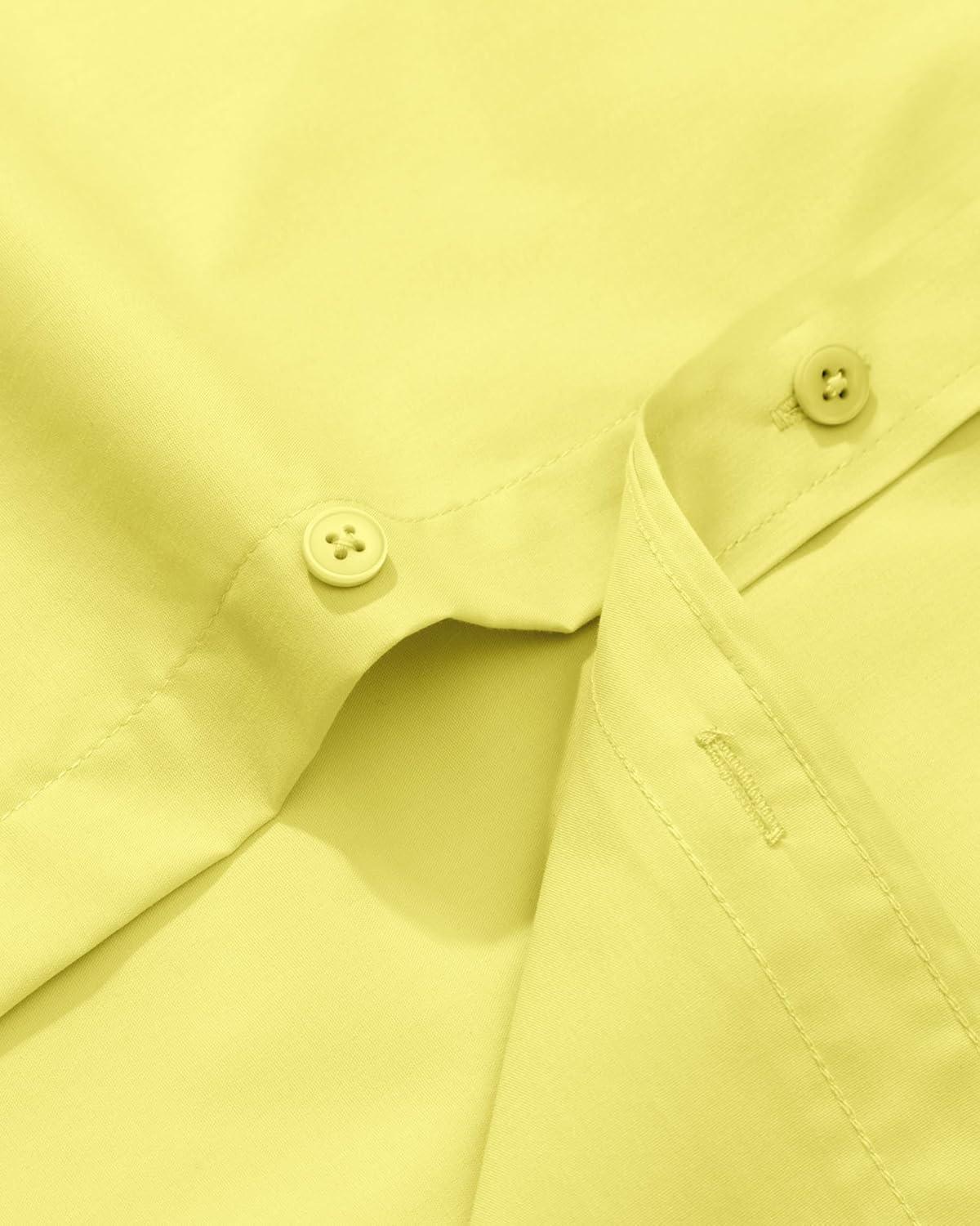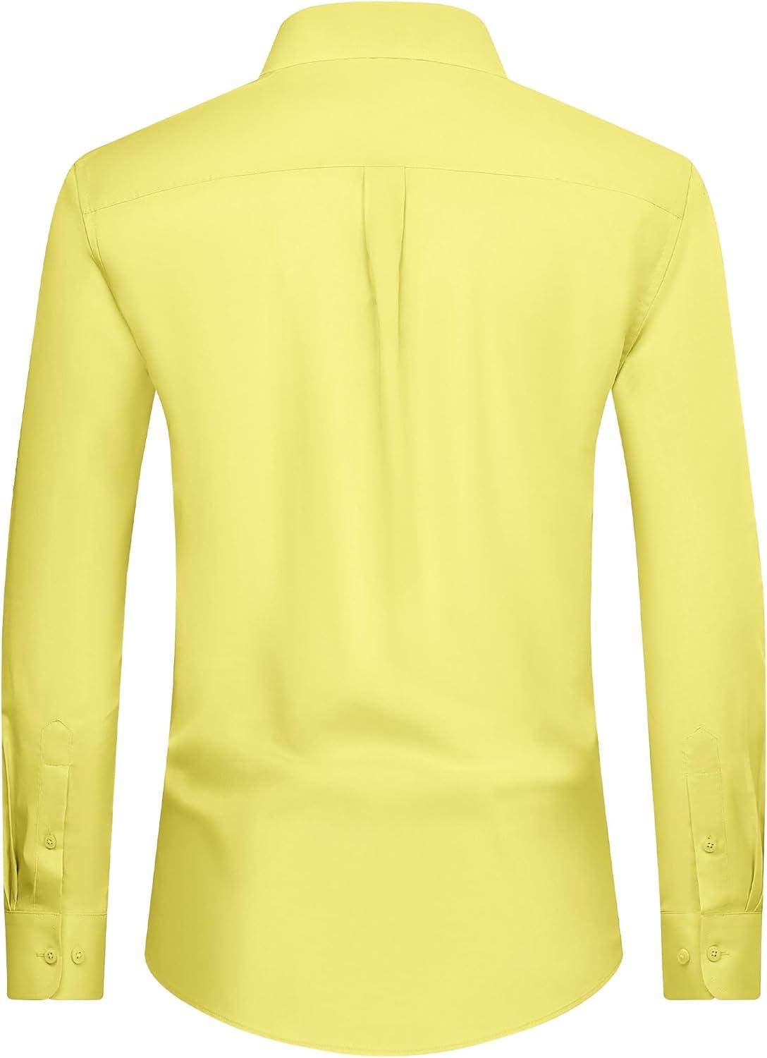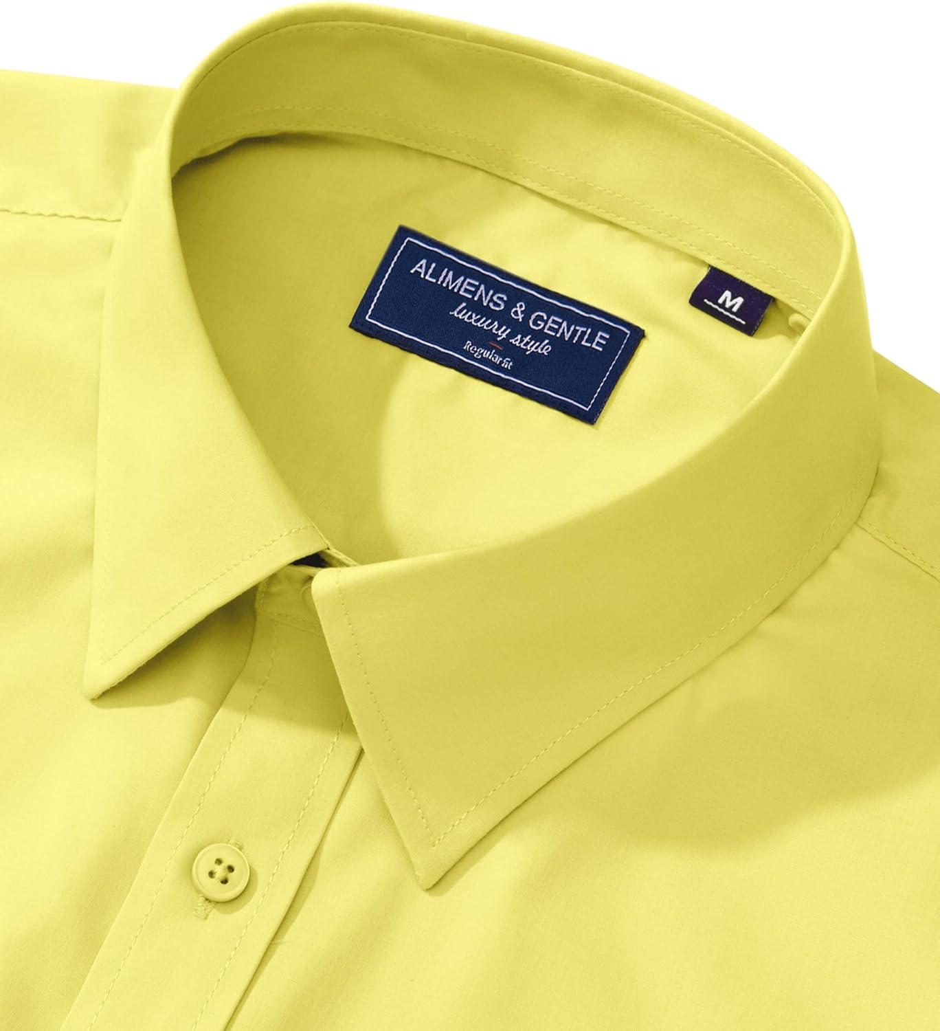Alimens & Gentle Men’s Dress Shirt Regular Fit Stretch Stain Shield Long Sleeve Solid Business Wedding Button Down Shirts(Lemon Yellow)