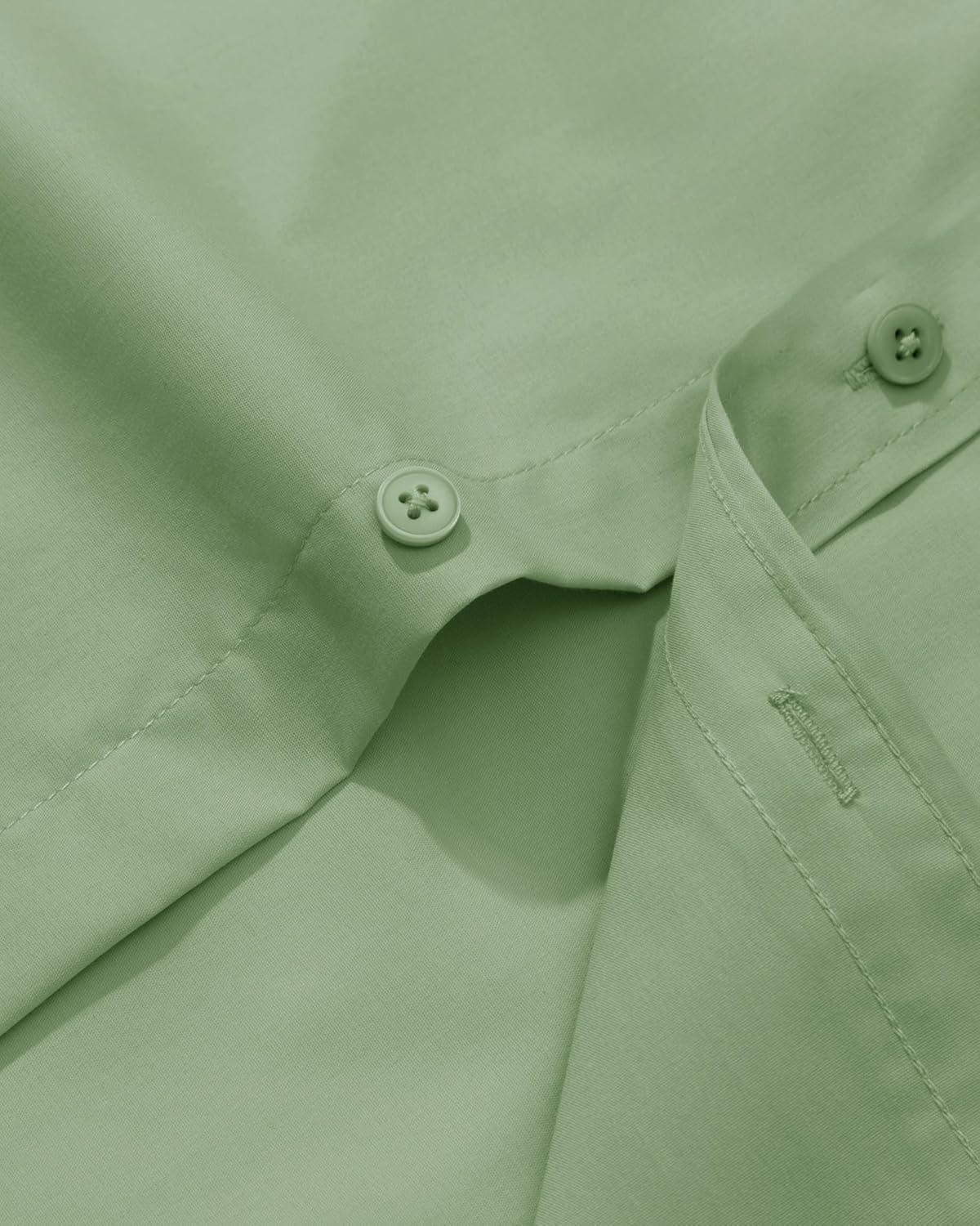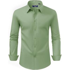 Alimens & Gentle Men’s Dress Shirt Regular Fit Stretch Stain Shield Long Sleeve Solid Business Wedding Button Down Shirts(Light / Green)