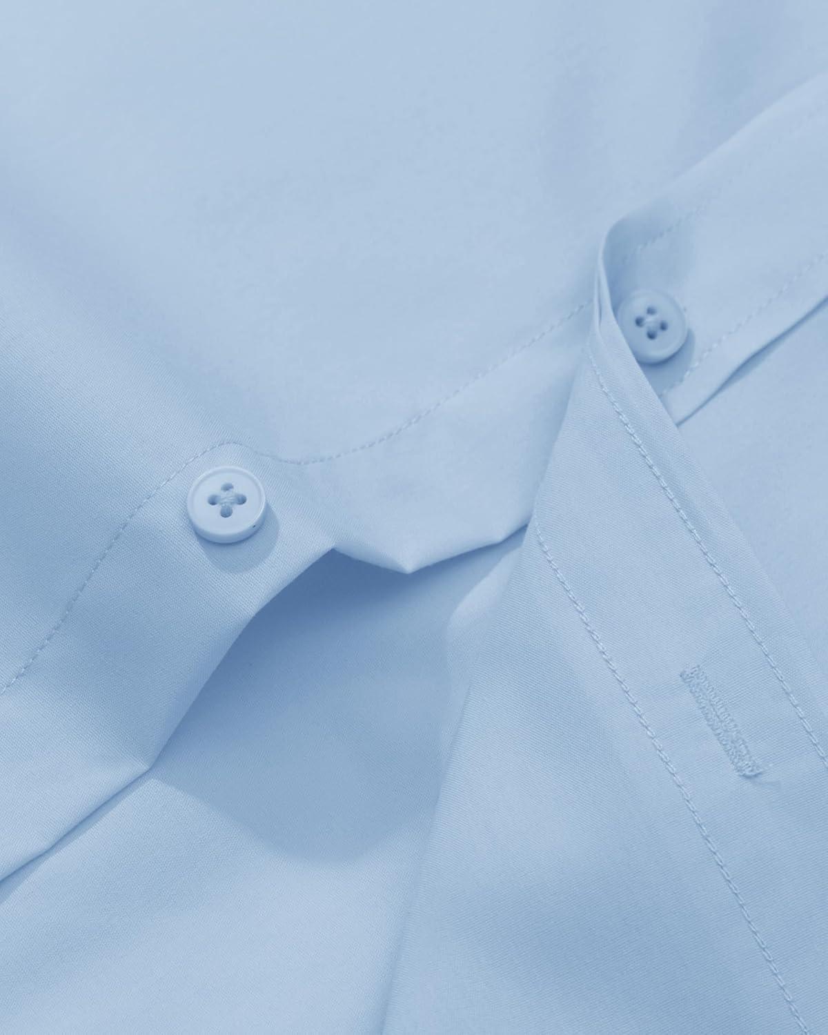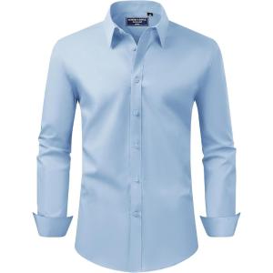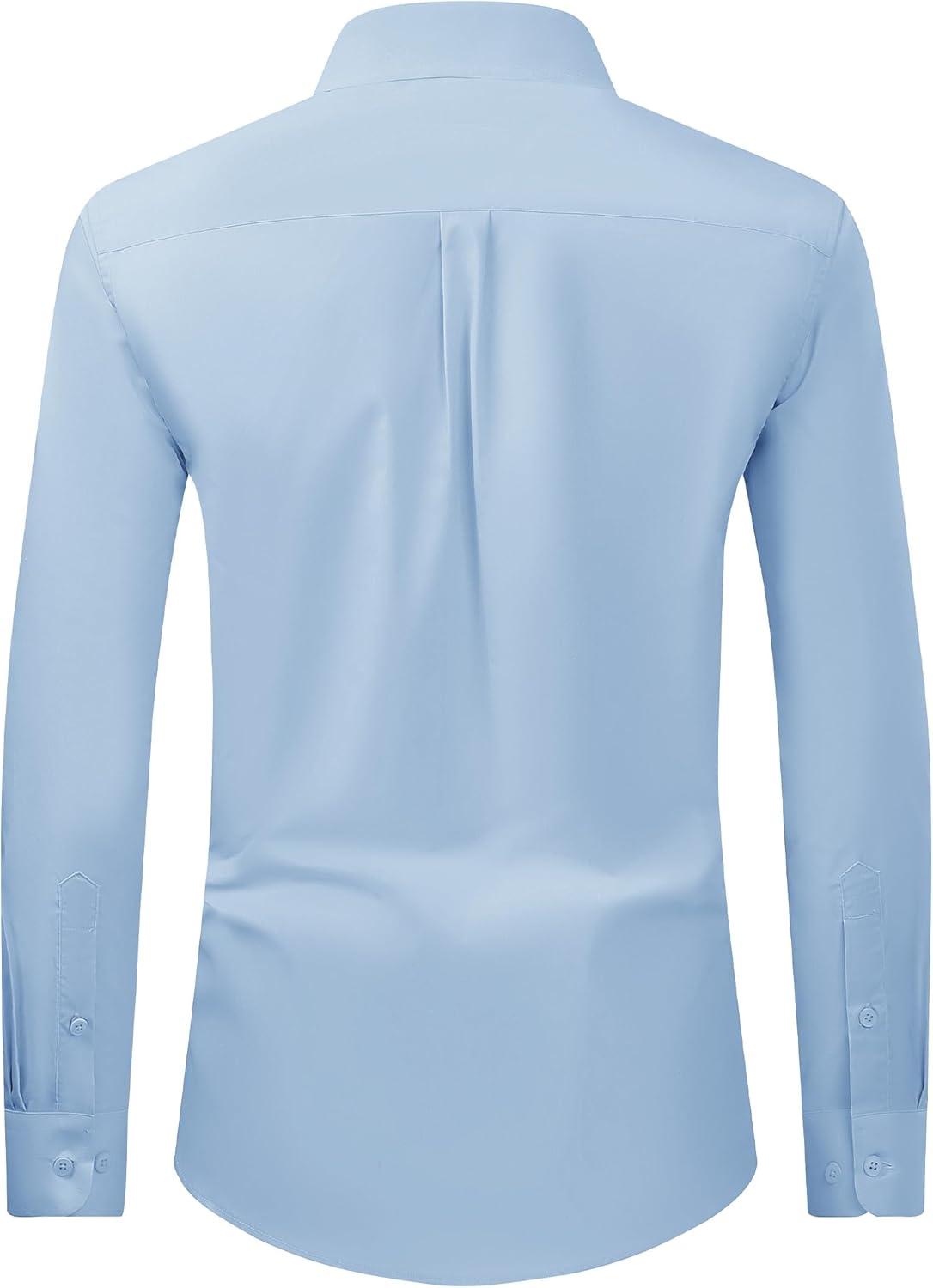 Alimens & Gentle Men’s Dress Shirt Regular Fit Stretch Stain Shield Long Sleeve Solid Business Wedding Button Down Shirts(Light Blue)