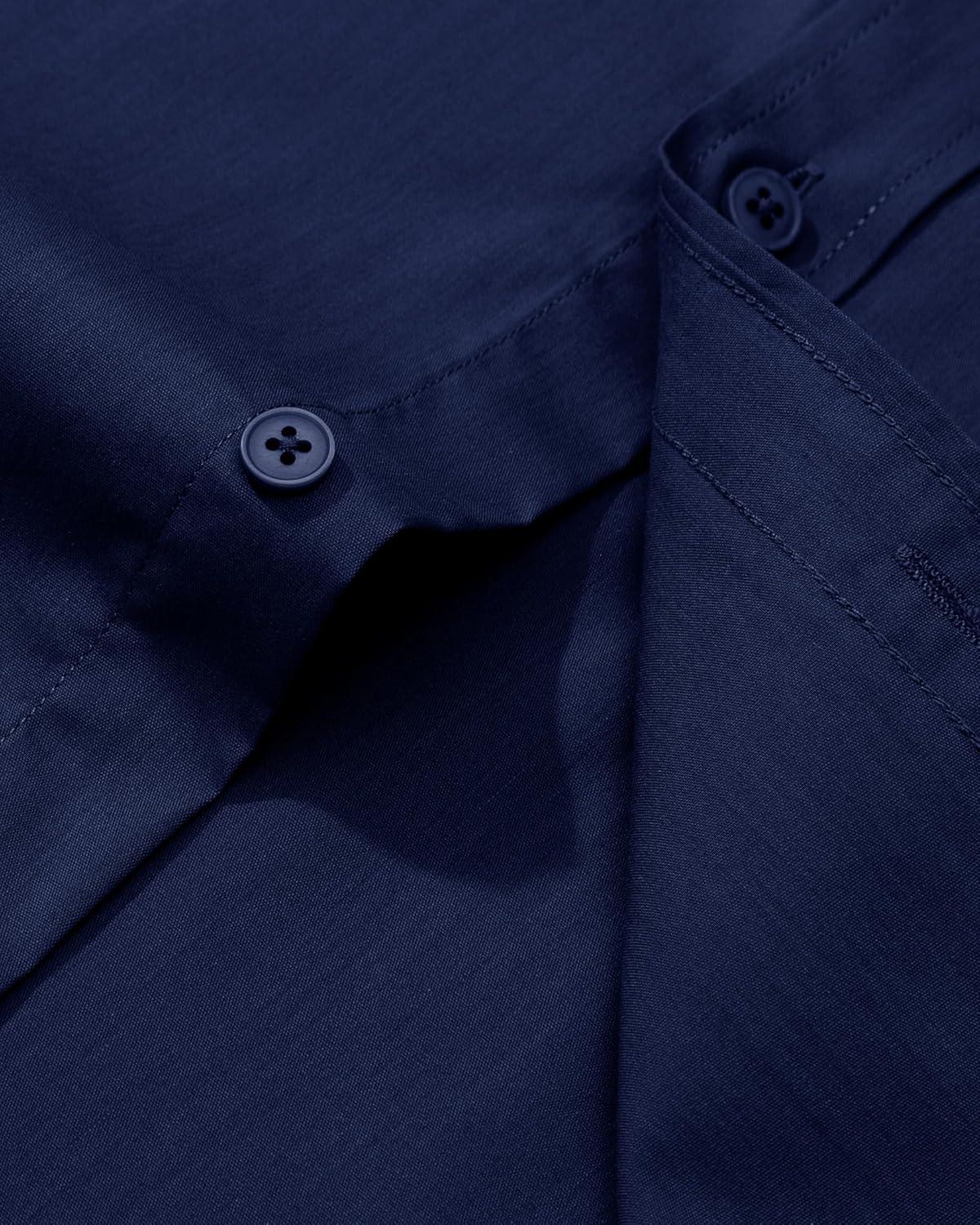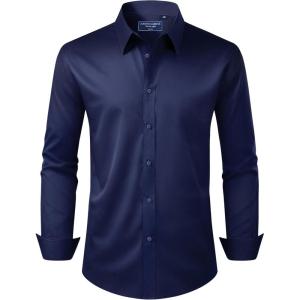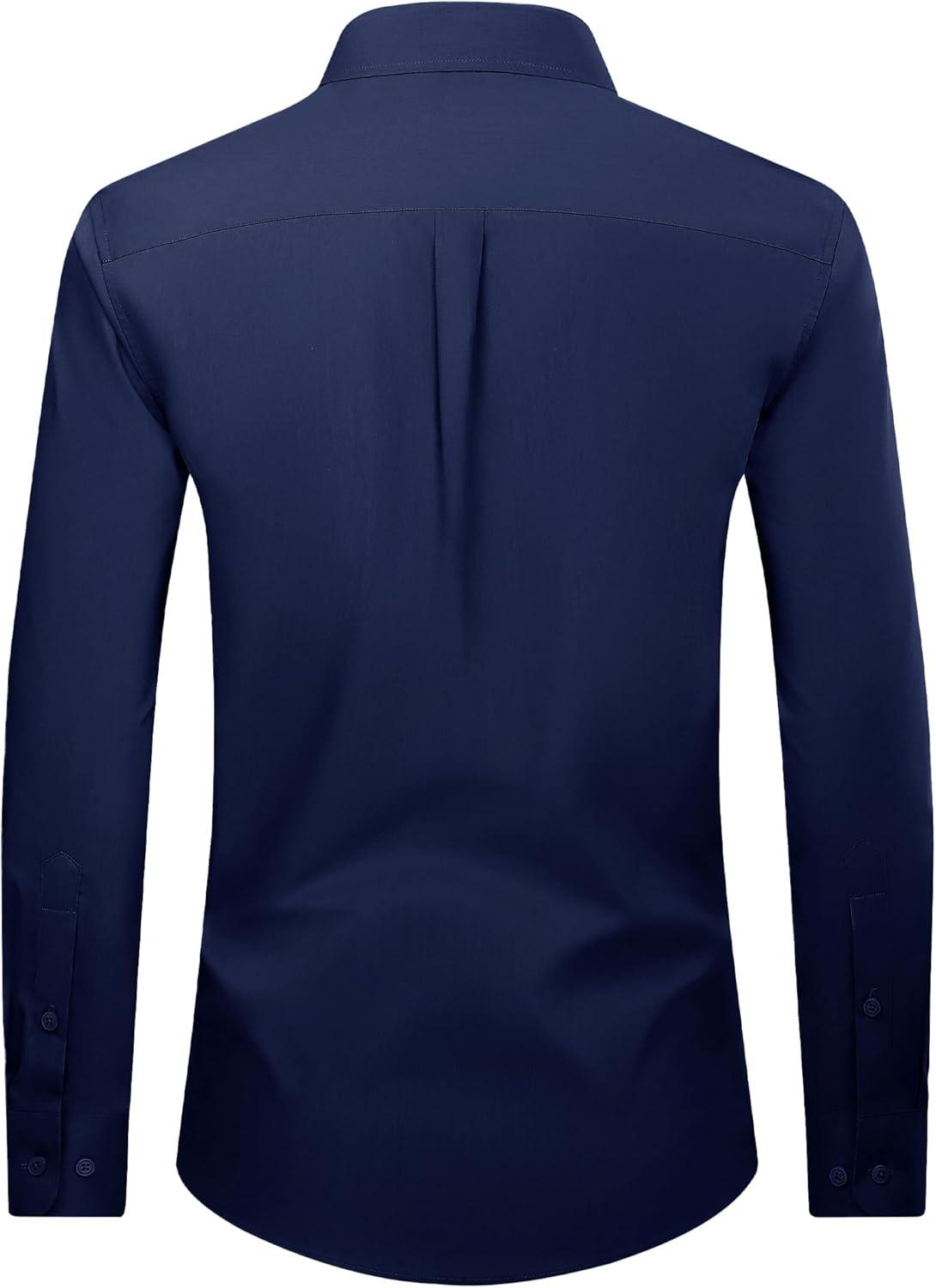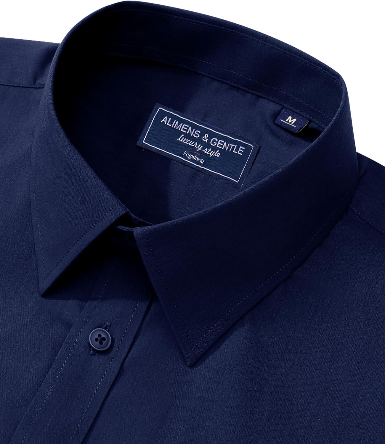 Alimens & Gentle Men’s Dress Shirt Regular Fit Stretch Stain Shield Long Sleeve Solid Business Wedding Button Down Shirts(Navy / Blue)