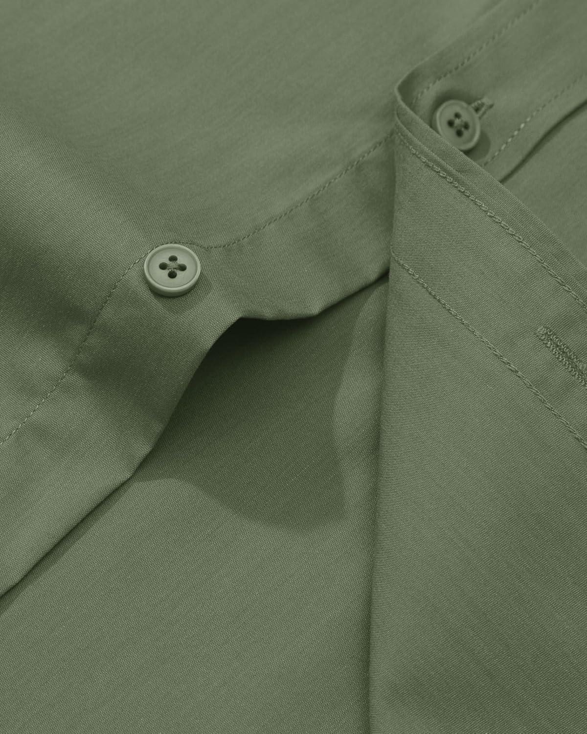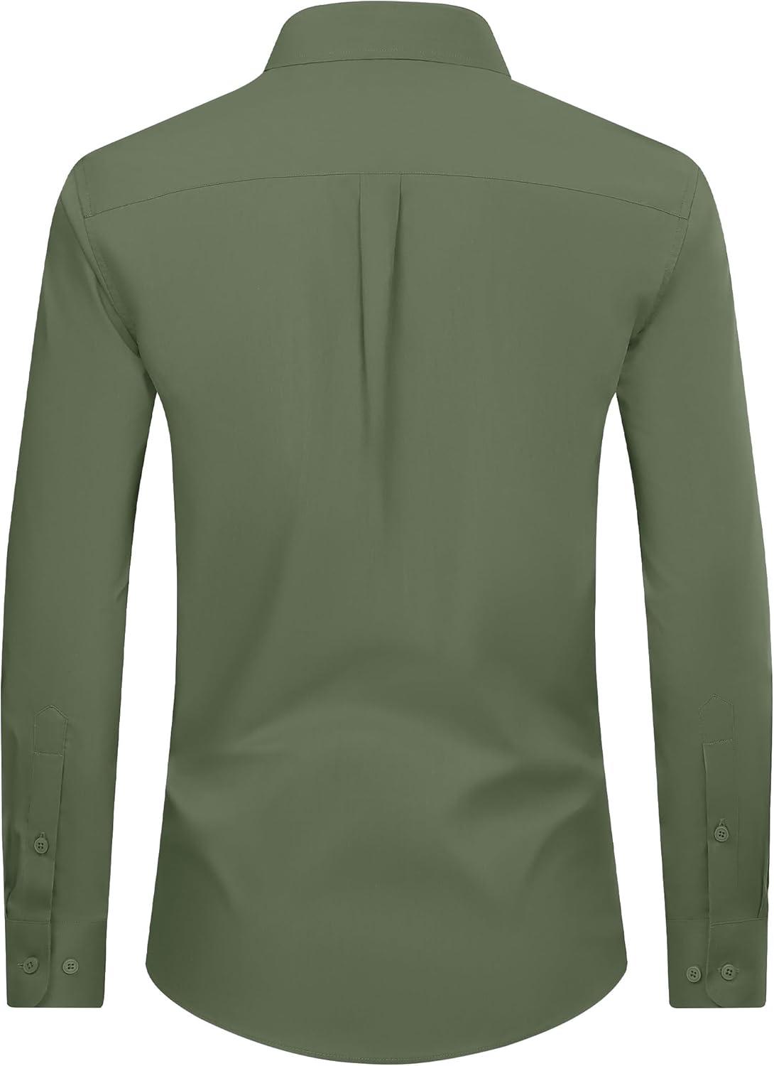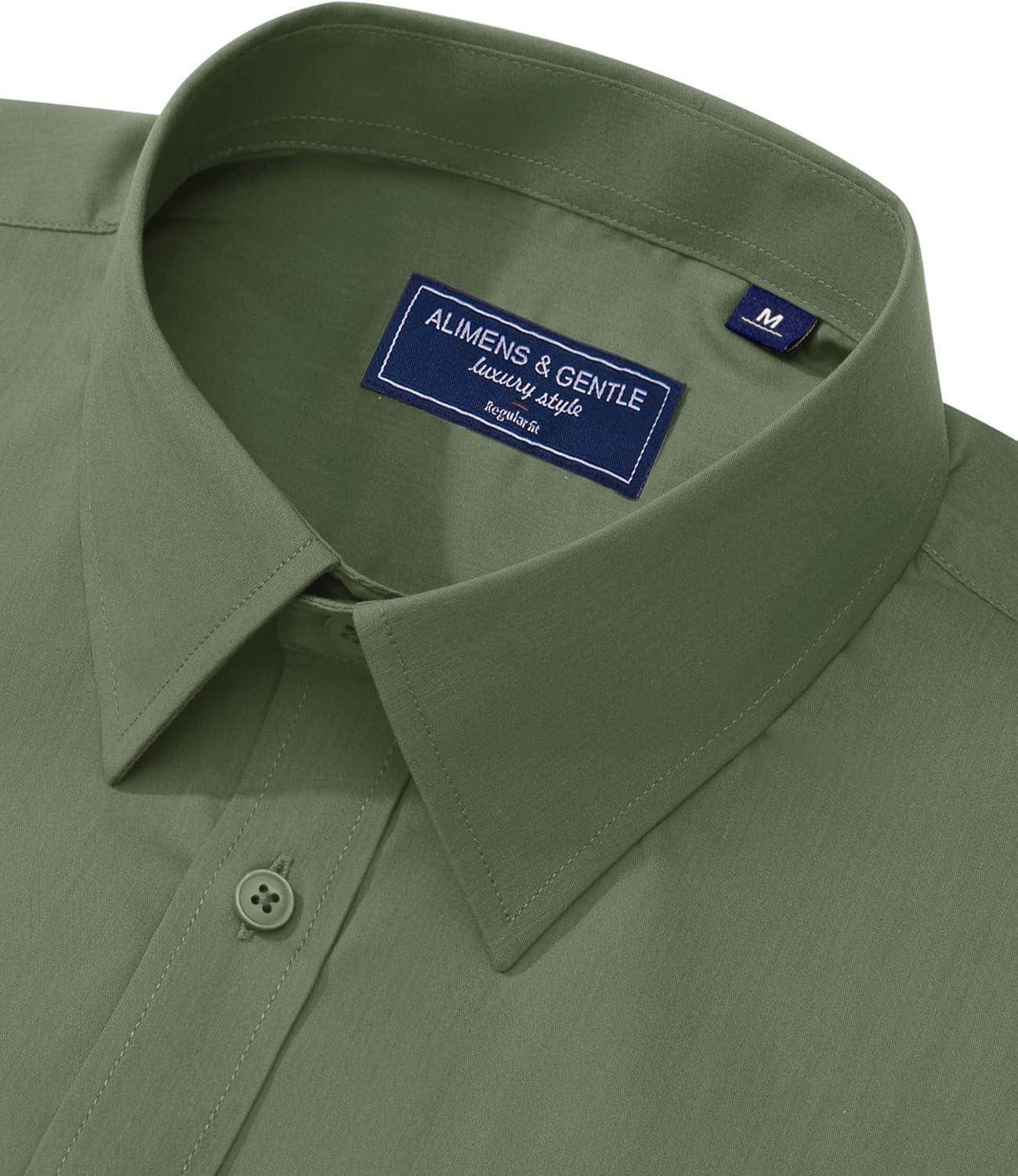Alimens & Gentle Men’s Dress Shirt Regular Fit Stretch Stain Shield Long Sleeve Solid Business Wedding Button Down Shirts(Olive Green)