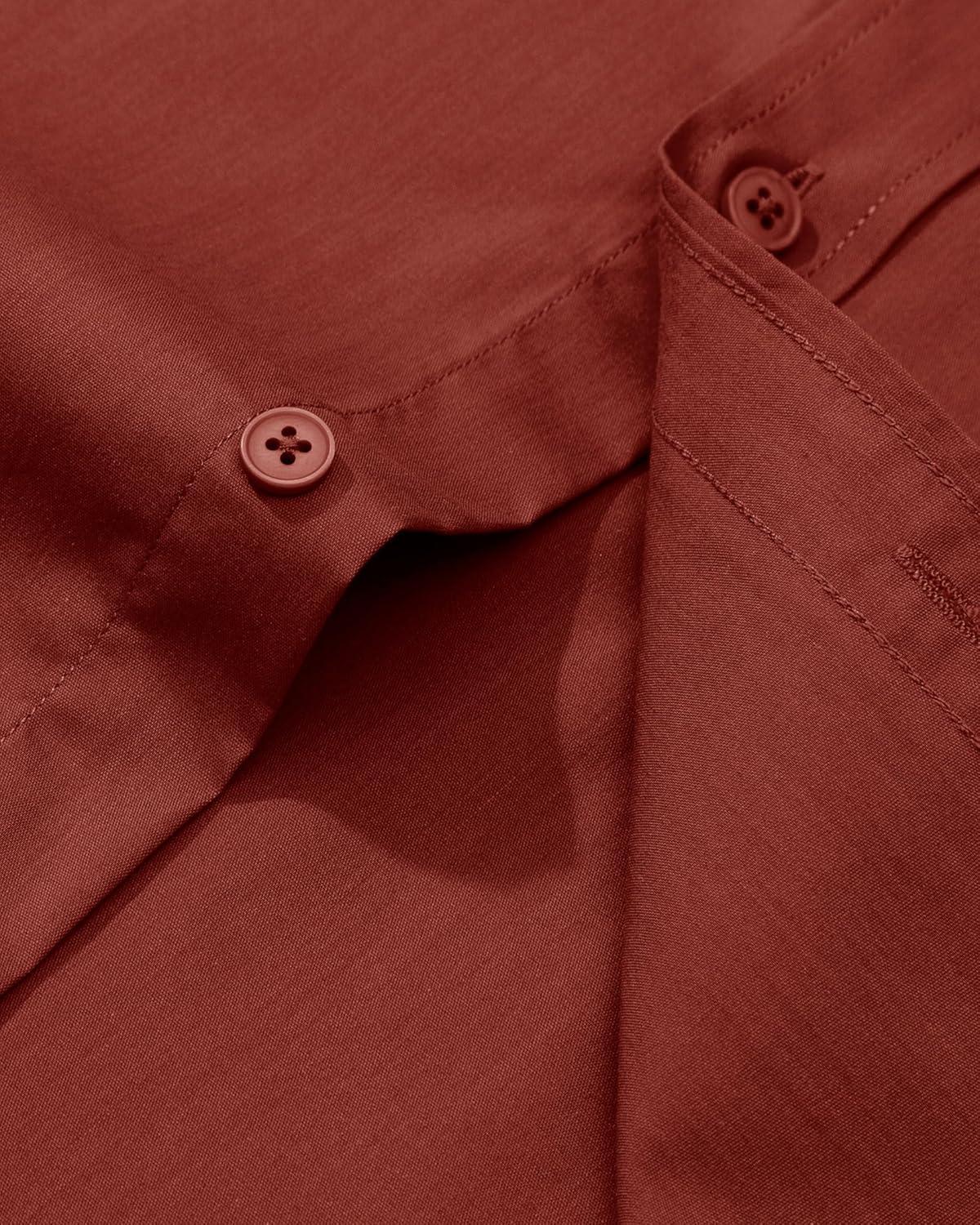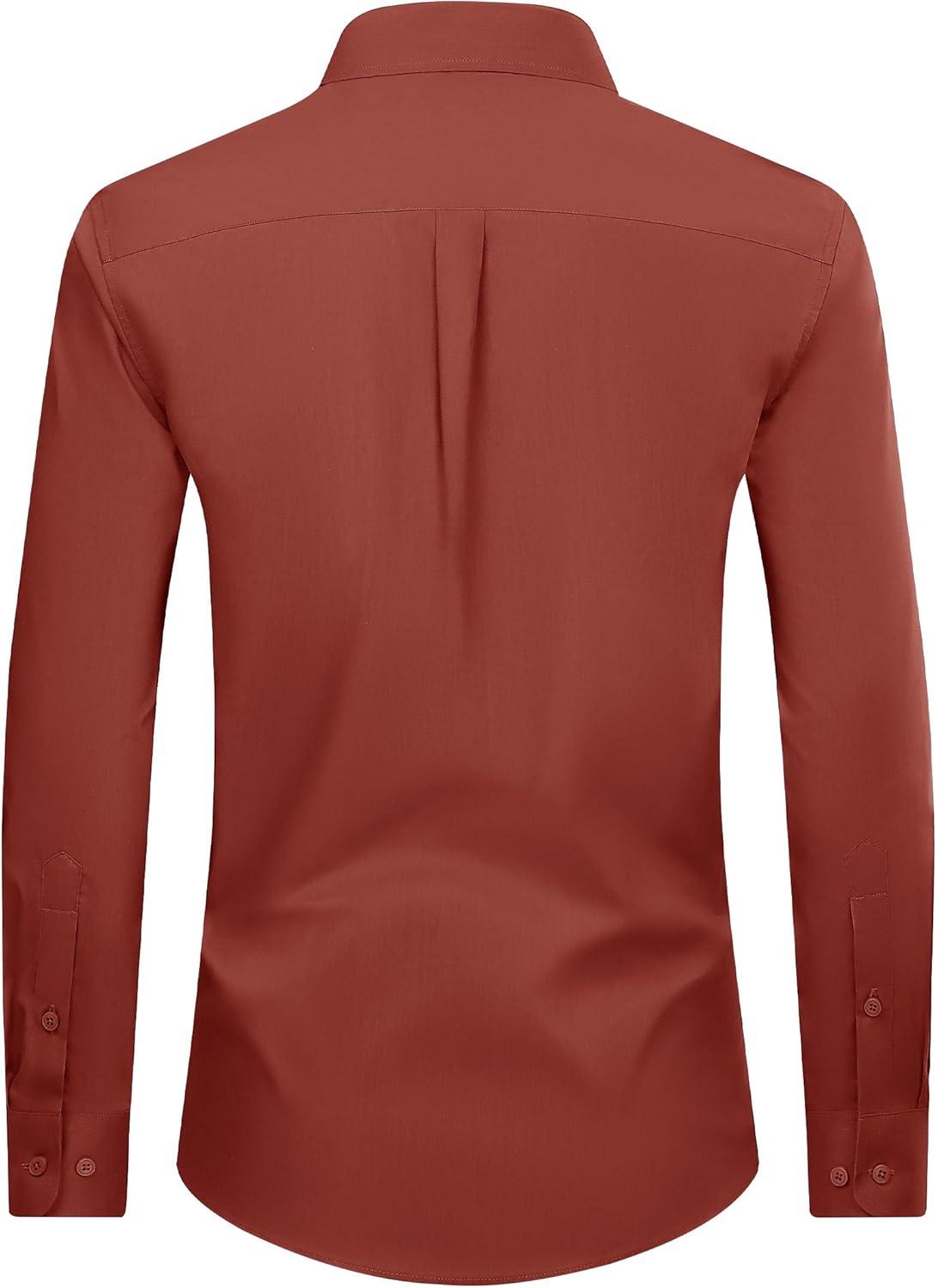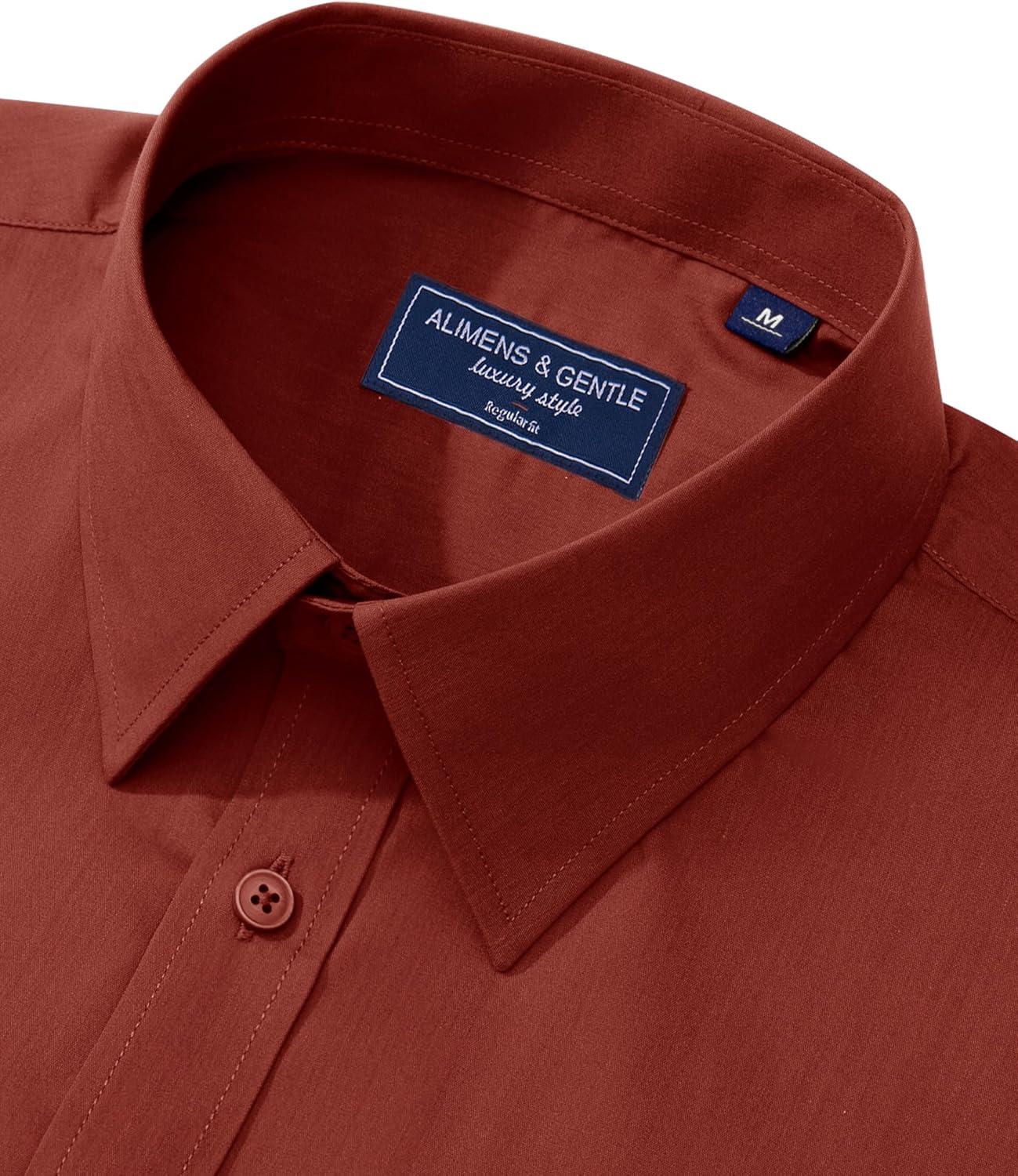 Alimens & Gentle Men’s Dress Shirt Regular Fit Stretch Stain Shield Long Sleeve Solid Business Wedding Button Down Shirts(Persimmon Red)