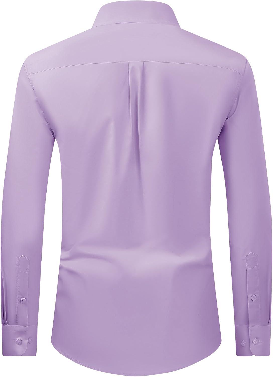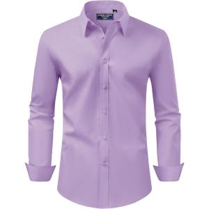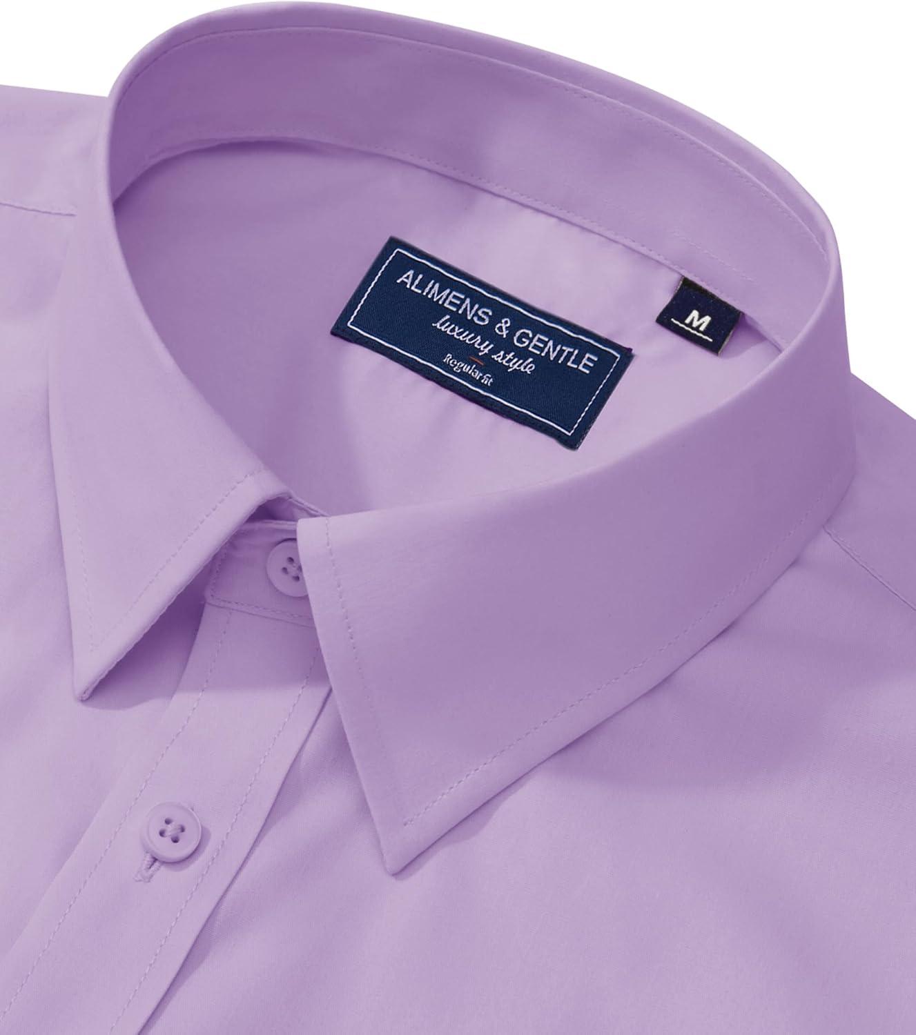 Alimens & Gentle Men’s Dress Shirt Regular Fit Stretch Stain Shield Long Sleeve Solid Business Wedding Button Down Shirts(Pink Purple)