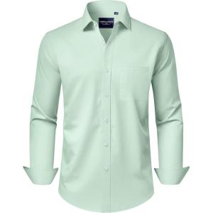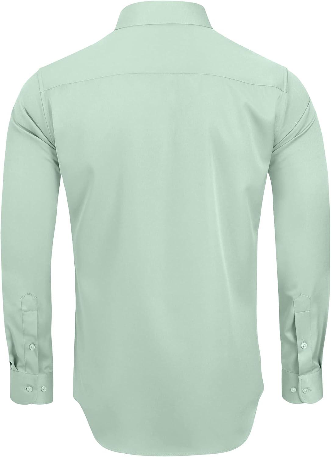 • Alimens & Gentle Men’s Dress Shirts Long Sleeve Wrinkle-Free Stretch Shirts Solid Formal Button Down Shirt with Pocket(Light Green)