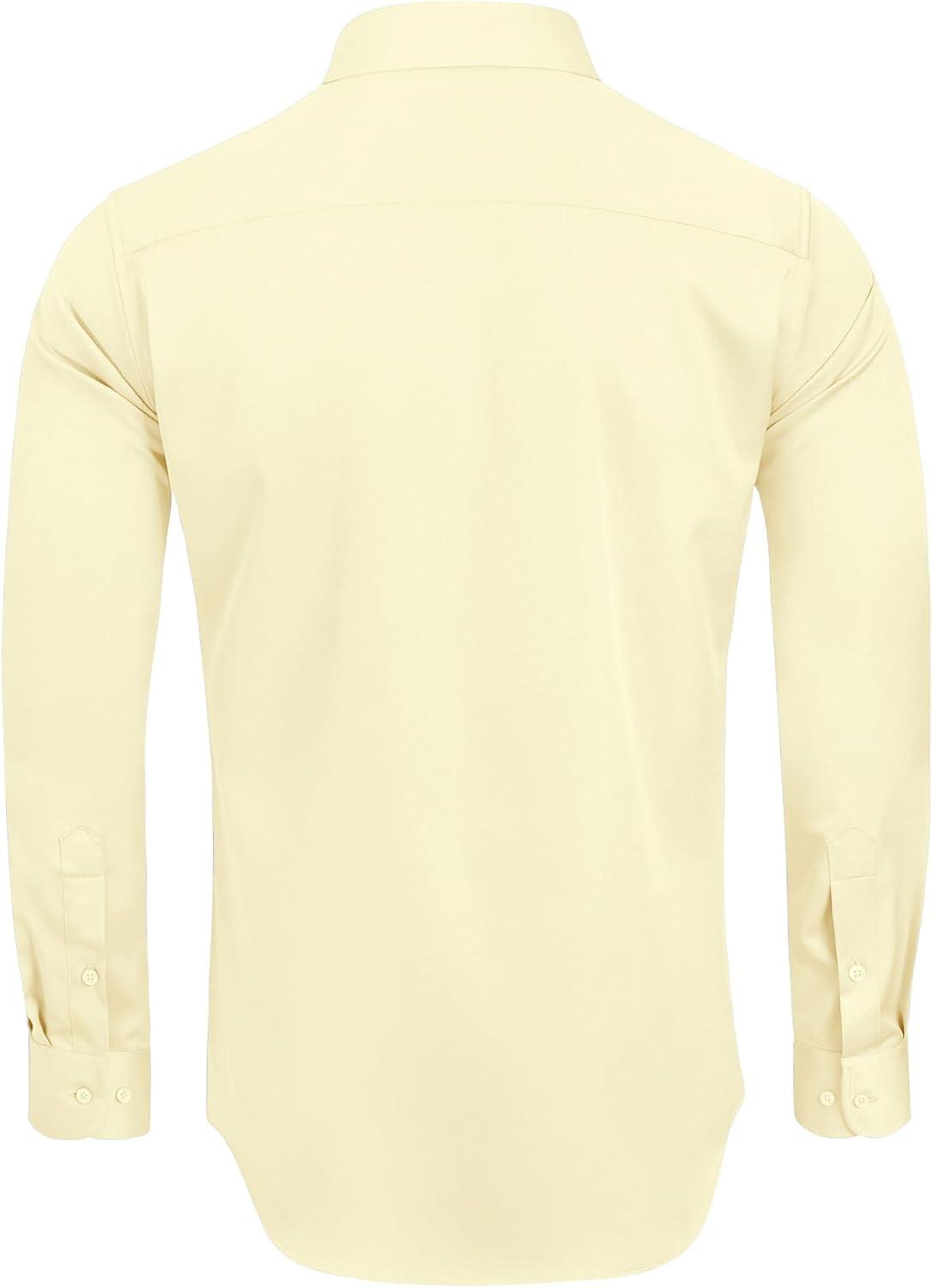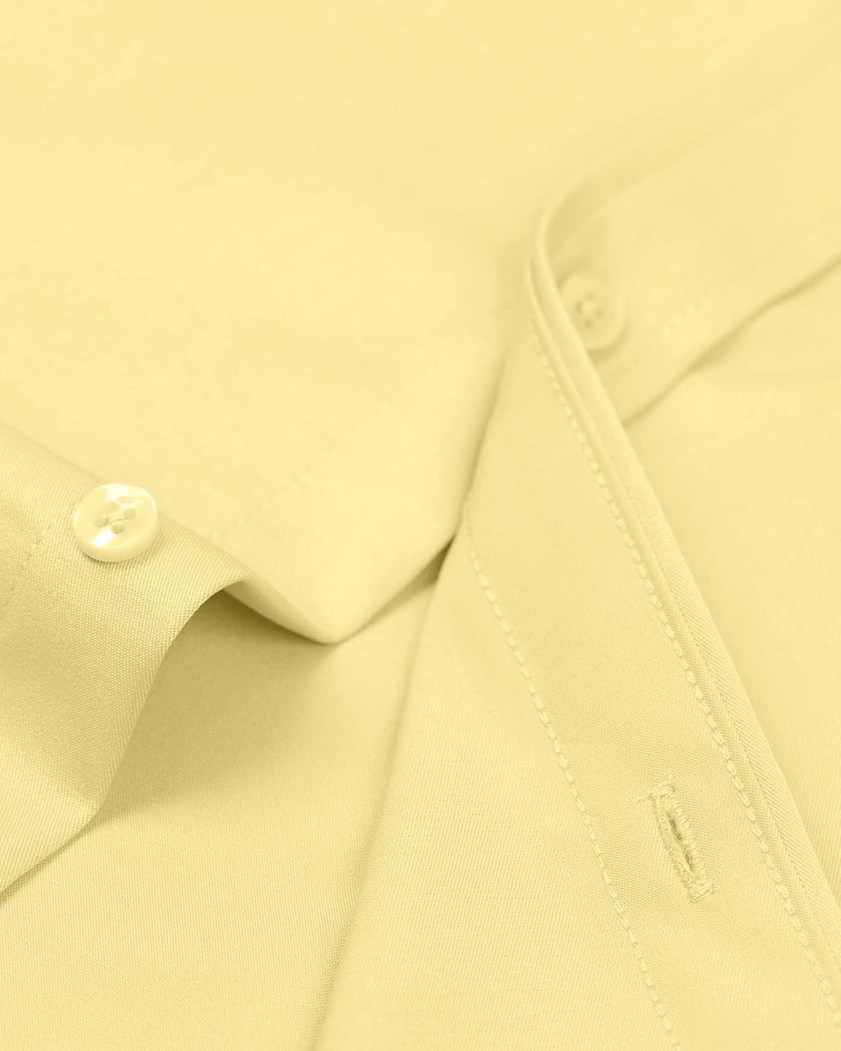 • Alimens & Gentle Men’s Dress Shirts Long Sleeve Wrinkle-Free Stretch Shirts Solid Formal Button Down Shirt with Pocket(Milk Yellow)