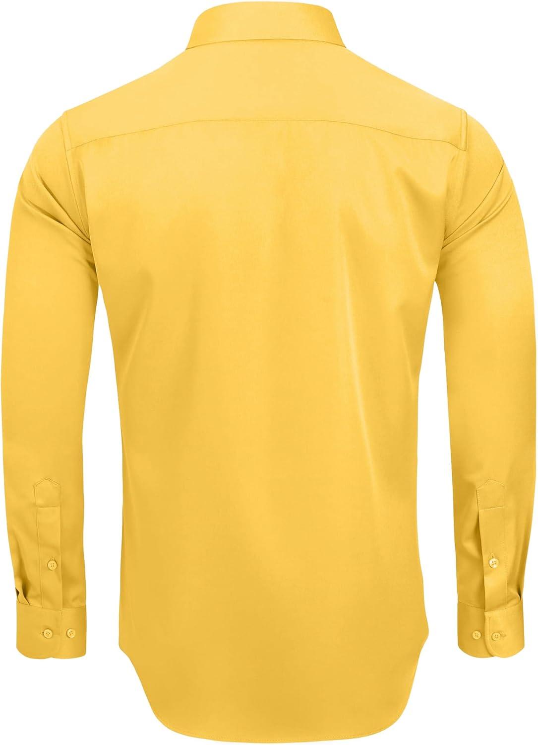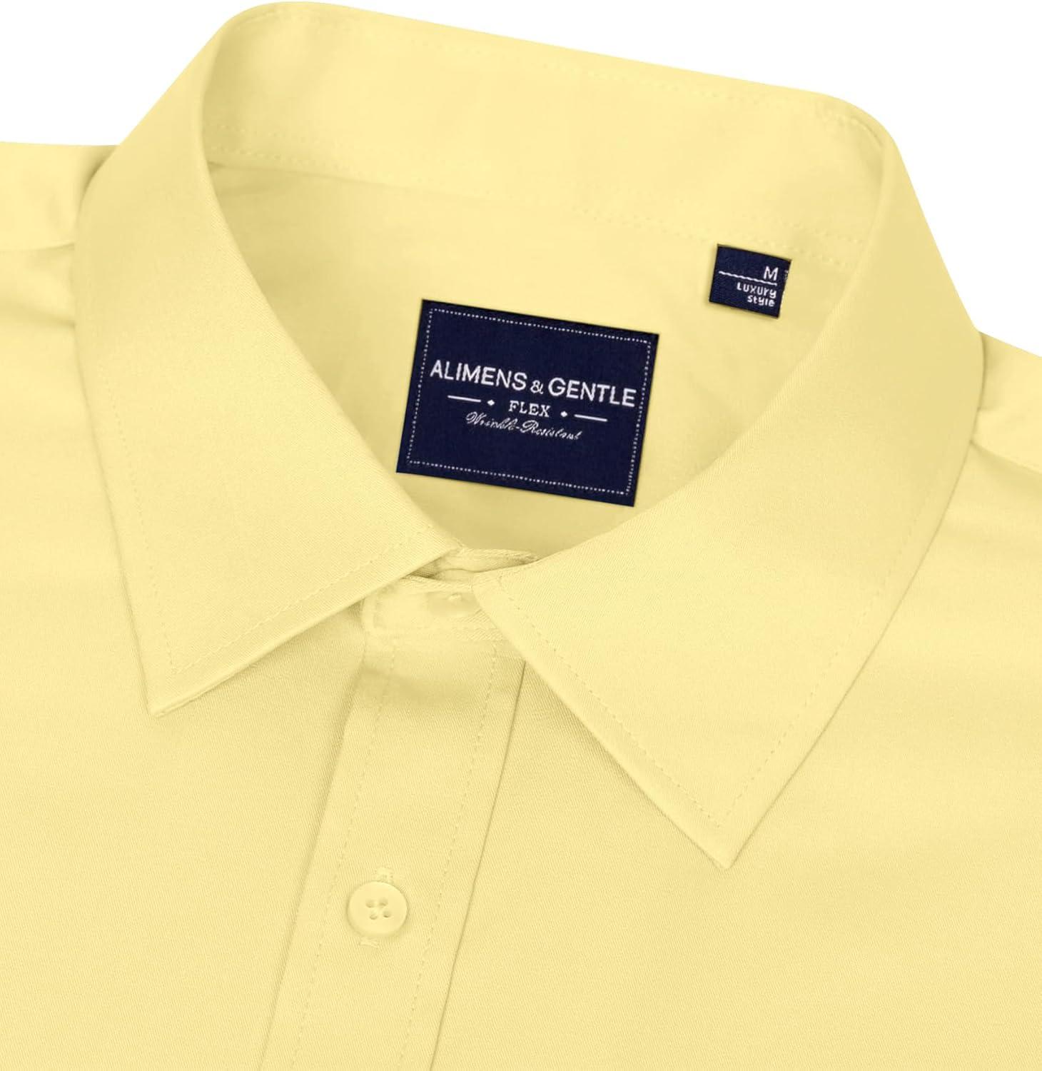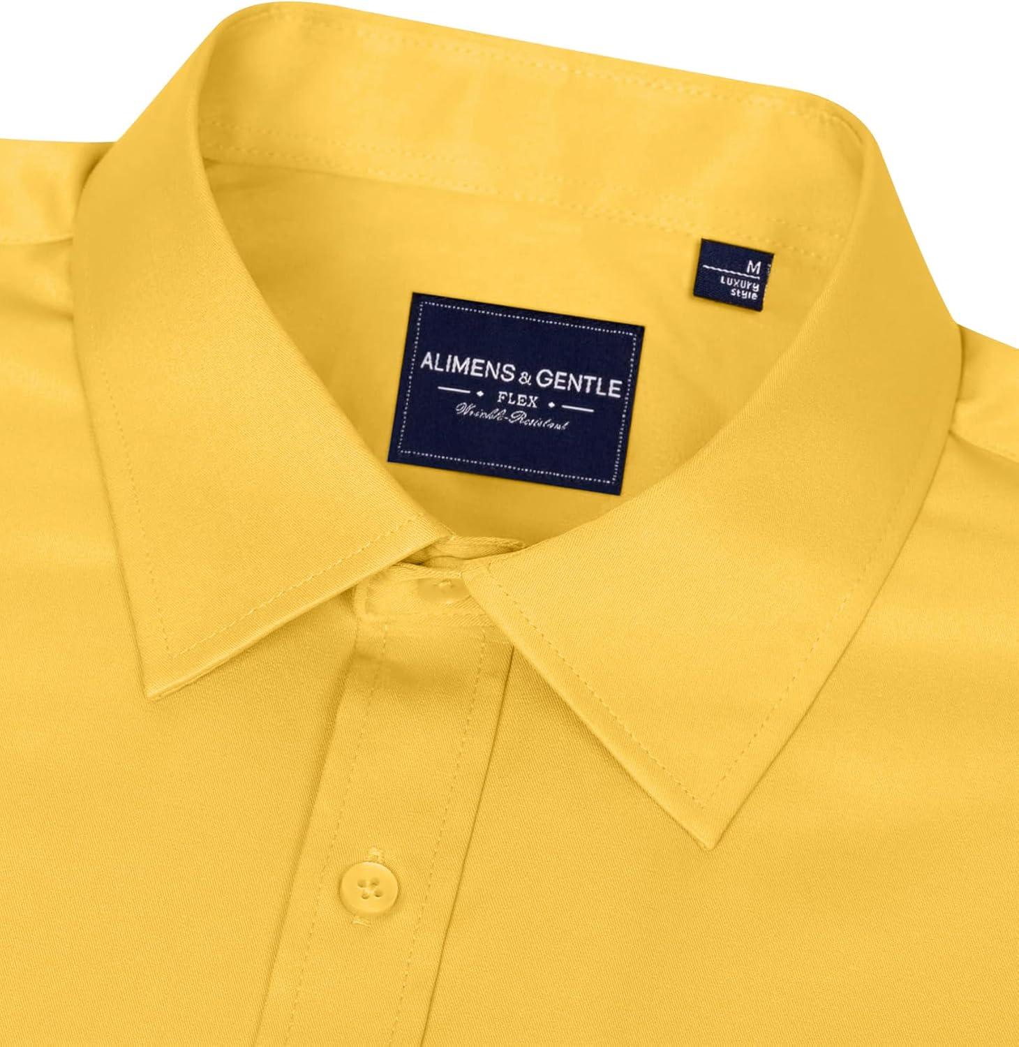 Alimens & Gentle Men’s Dress Shirts Long Sleeve Wrinkle-Free Stretch Shirts Solid Formal Button Down Shirt with Pocket(Yellow)