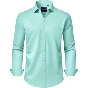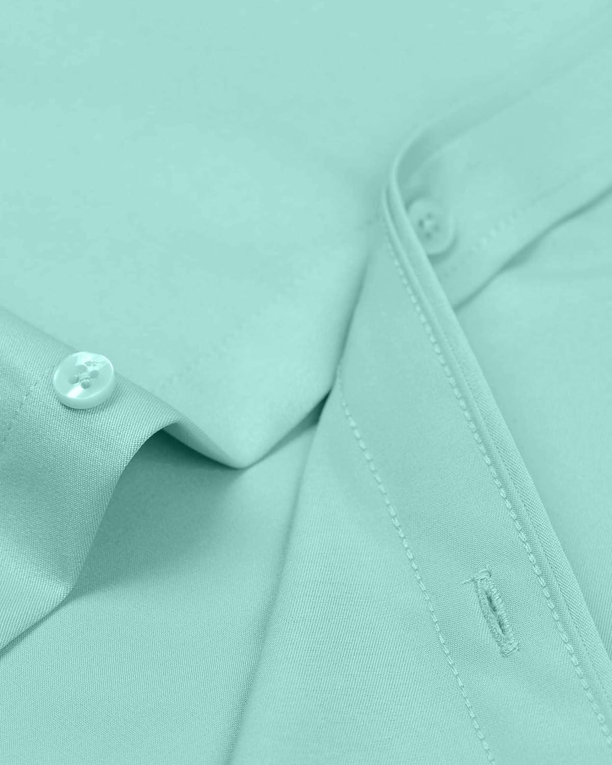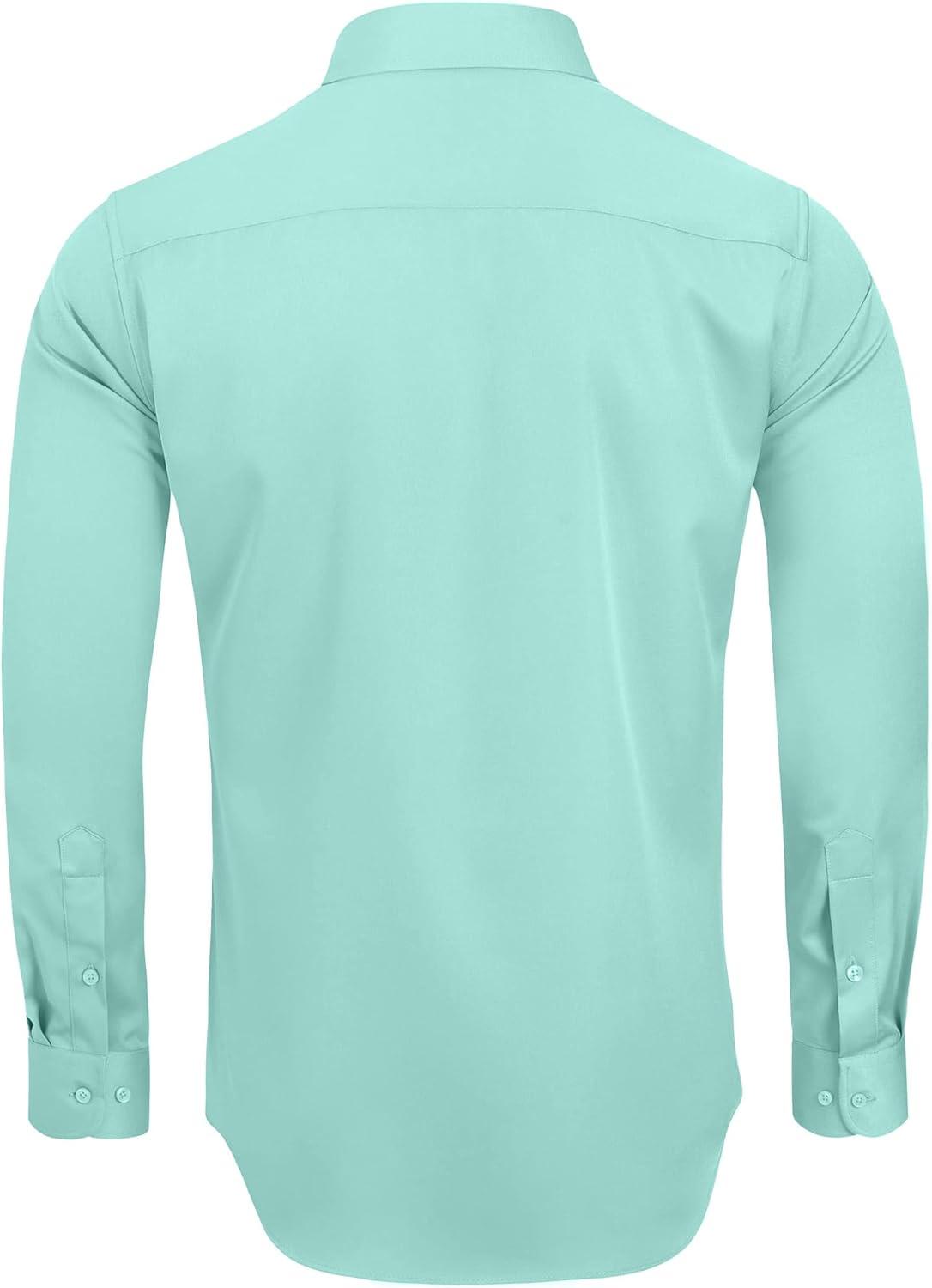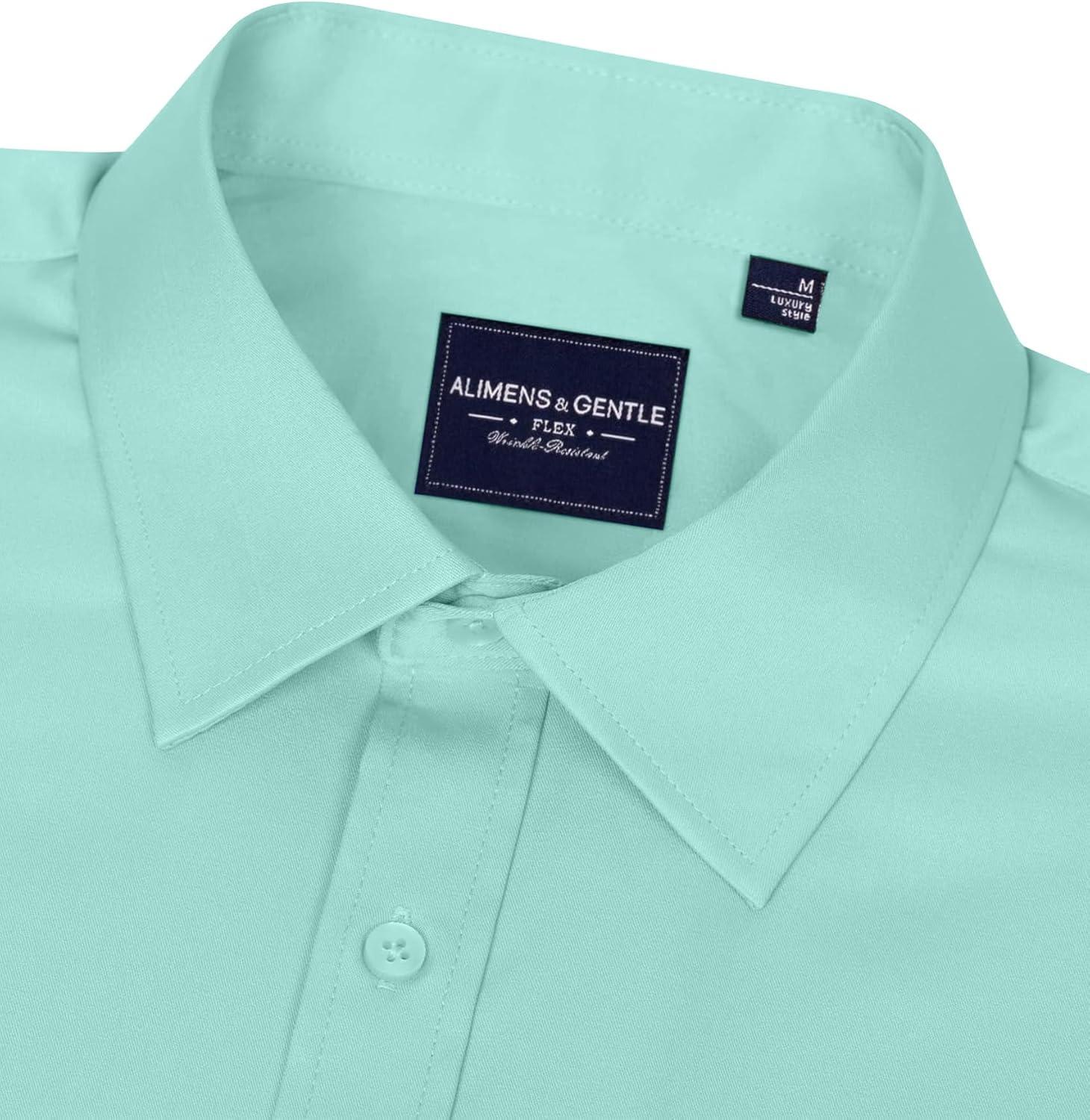 • Alimens & Gentle Men’s Dress Shirts Long Sleeve Wrinkle-Free Stretch Shirts Solid Formal Button Down Shirt with Pocket(Mint Green)