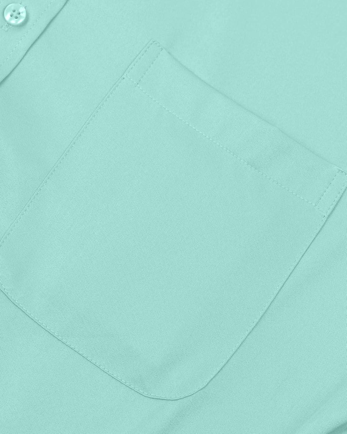 • Alimens & Gentle Men’s Dress Shirts Long Sleeve Wrinkle-Free Stretch Shirts Solid Formal Button Down Shirt with Pocket(Turquoise)