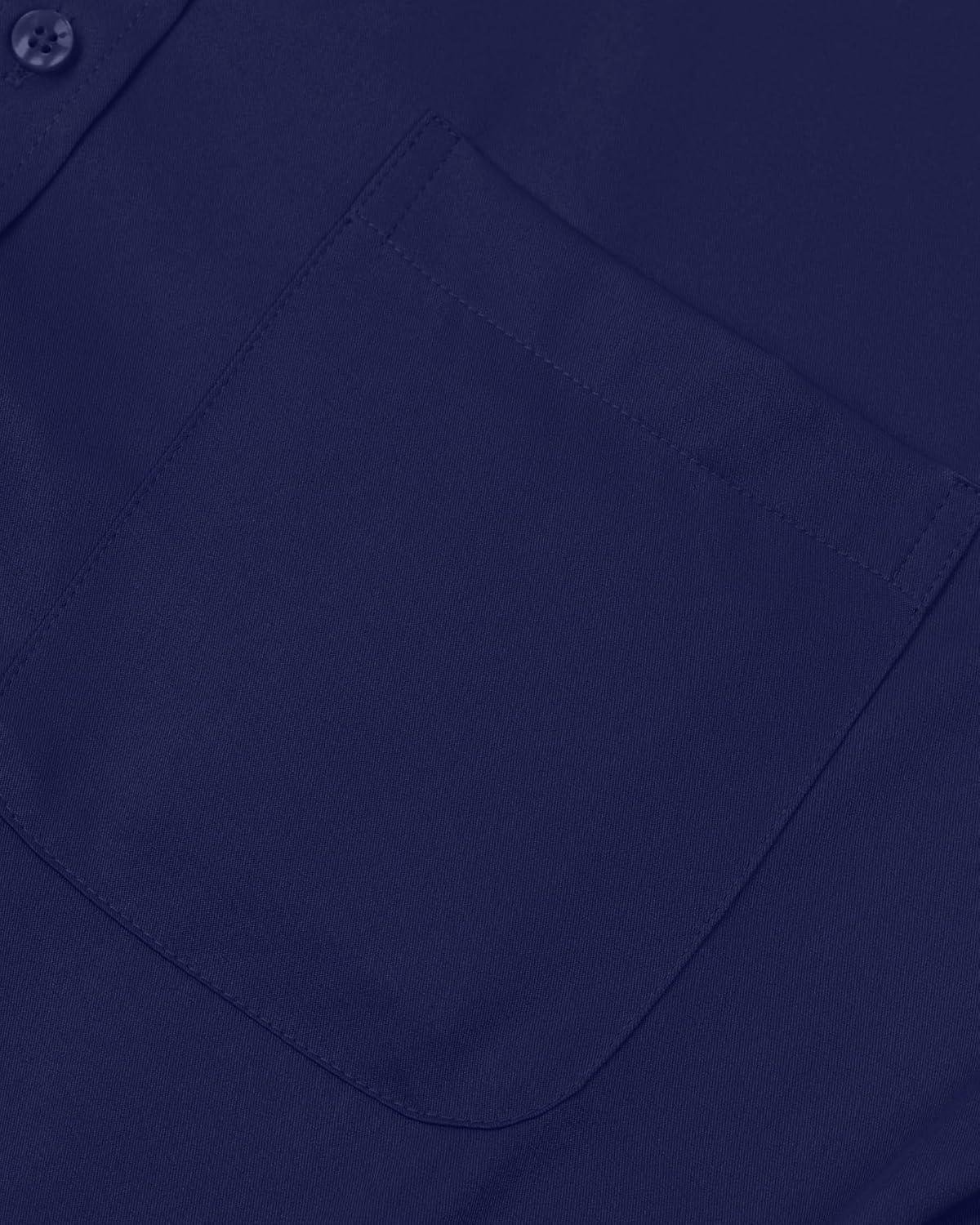 • Alimens & Gentle Men’s Dress Shirts Long Sleeve Wrinkle-Free Stretch Shirts Solid Formal Button Down Shirt with Pocket(Navy Blue)