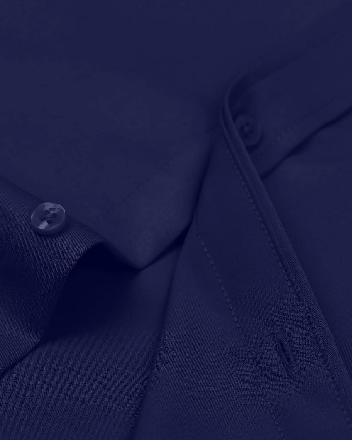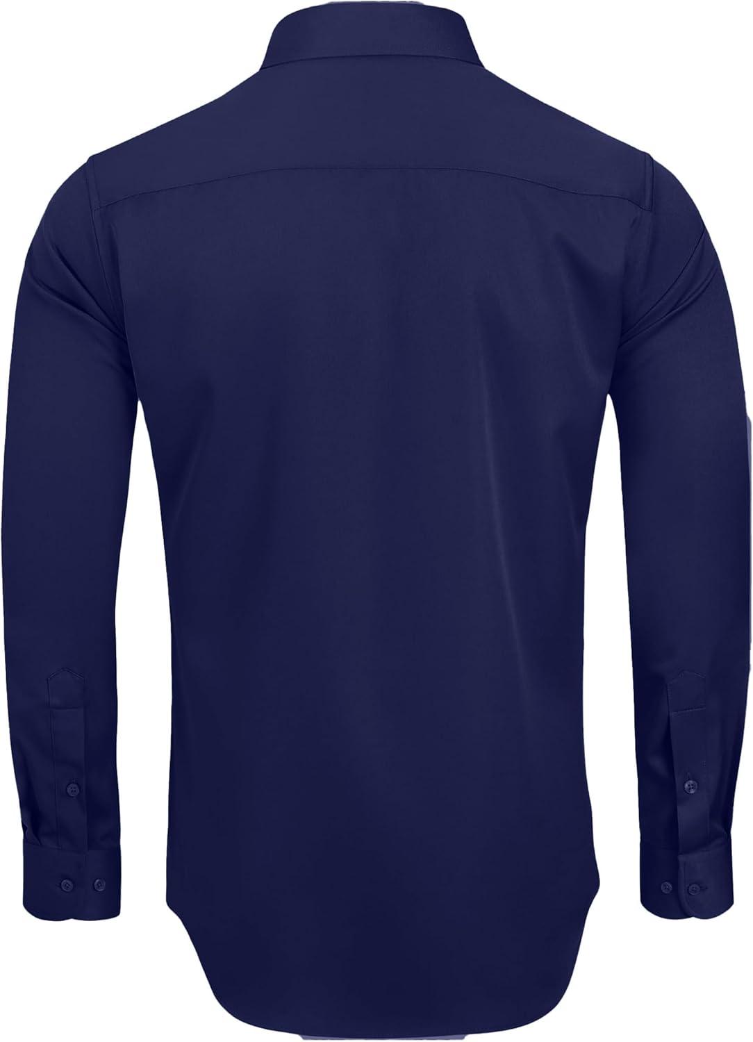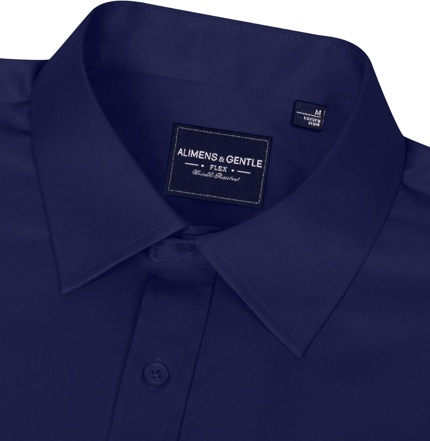 Alimens & Gentle Men’s Dress Shirts Long Sleeve Wrinkle-Free Stretch Shirts Solid Formal Button Down Shirt with Pocket(Navy Blue)