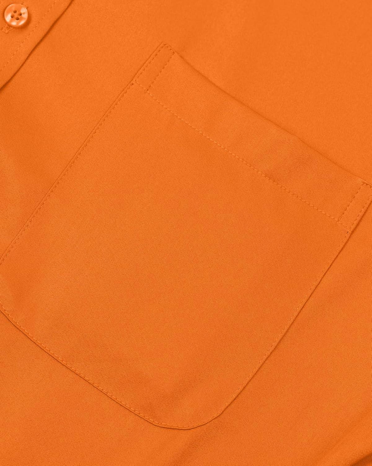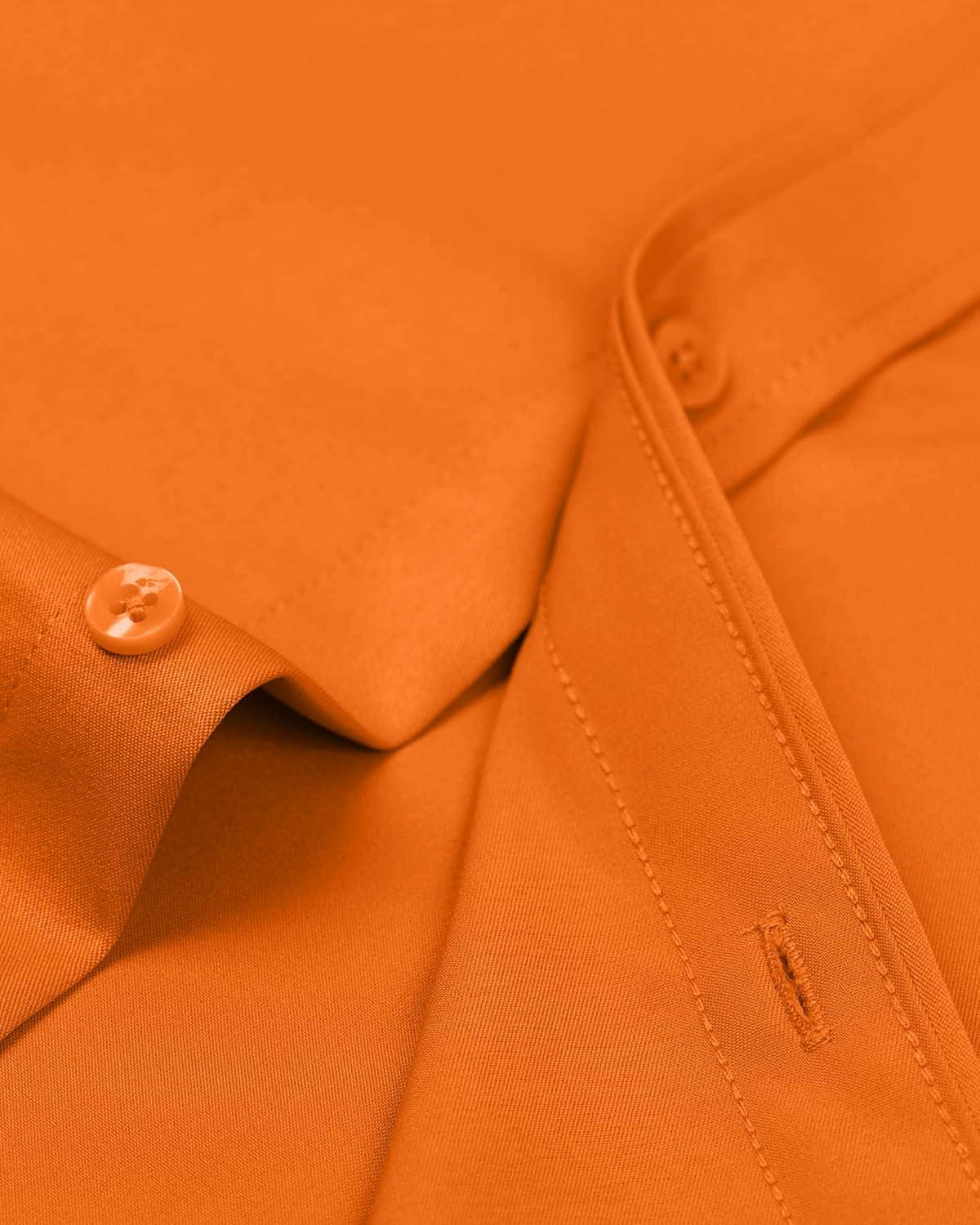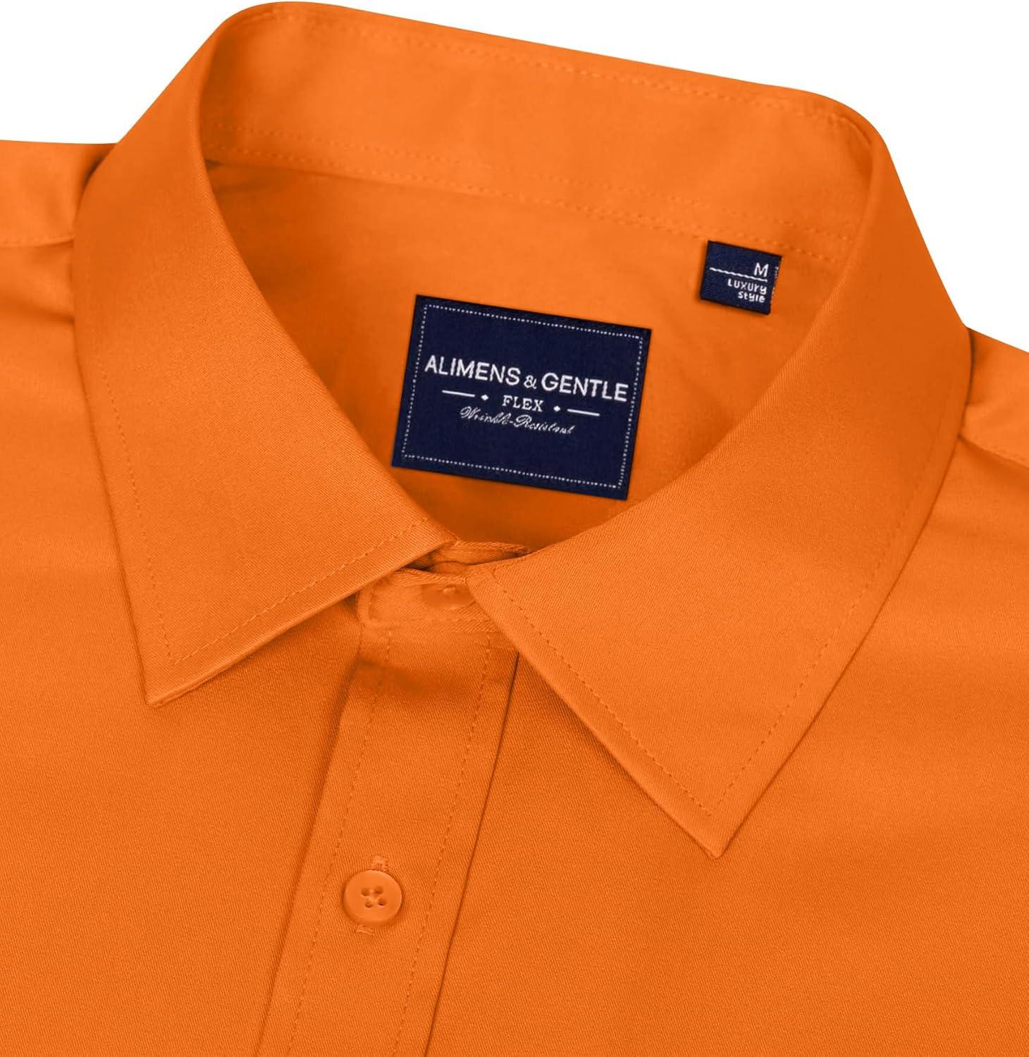 • Alimens & Gentle Men’s Dress Shirts Long Sleeve Wrinkle-Free Stretch Shirts Solid Formal Button Down Shirt with Pocket(Orange)