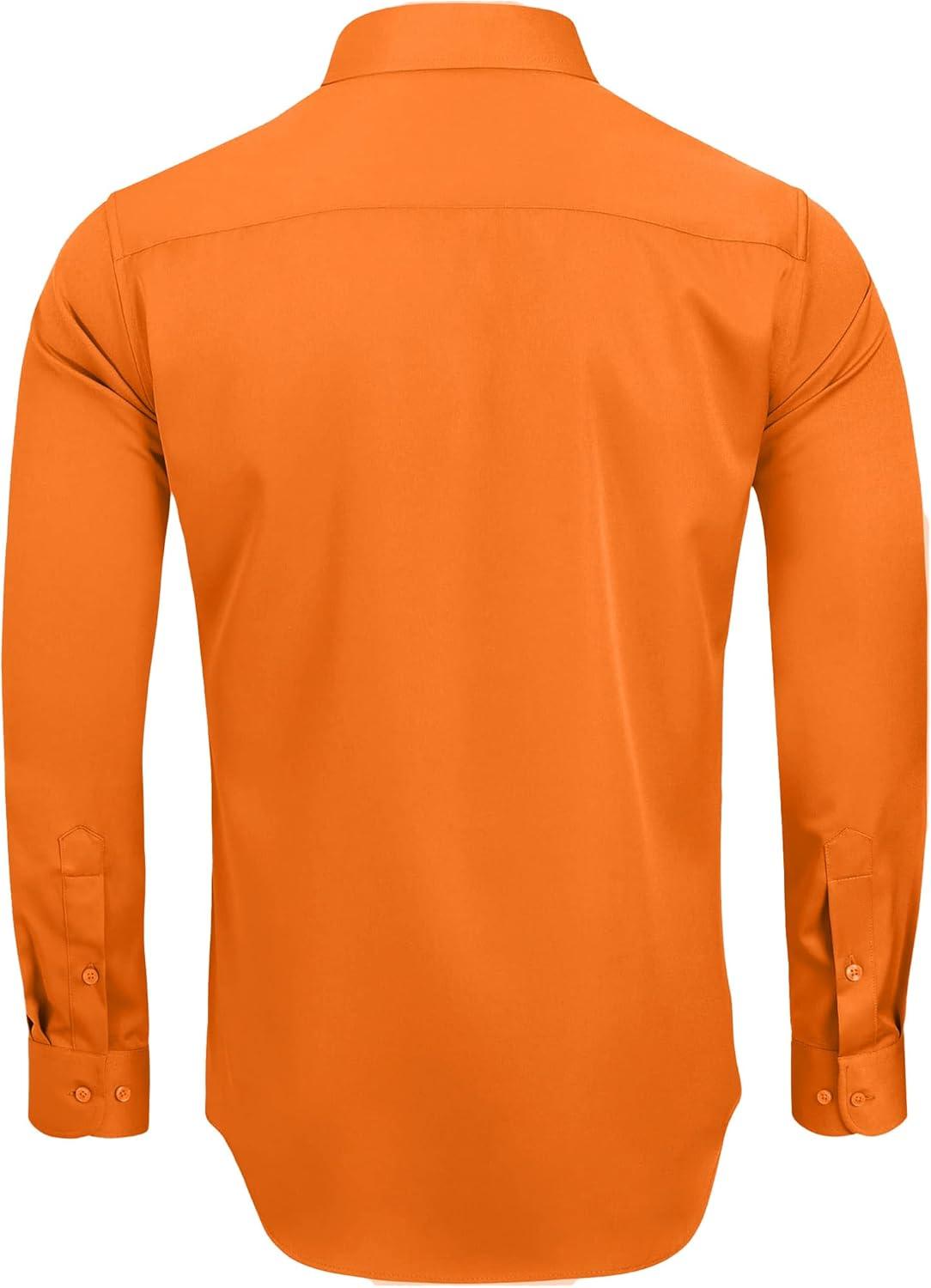 Alimens & Gentle Men’s Dress Shirts Long Sleeve Wrinkle-Free Stretch Shirts Solid Formal Button Down Shirt with Pocket(Orange)