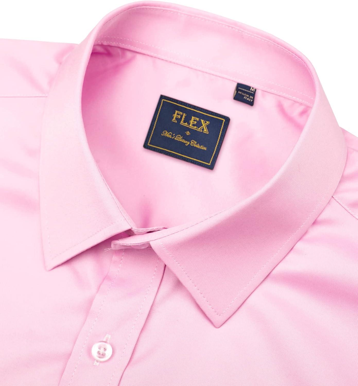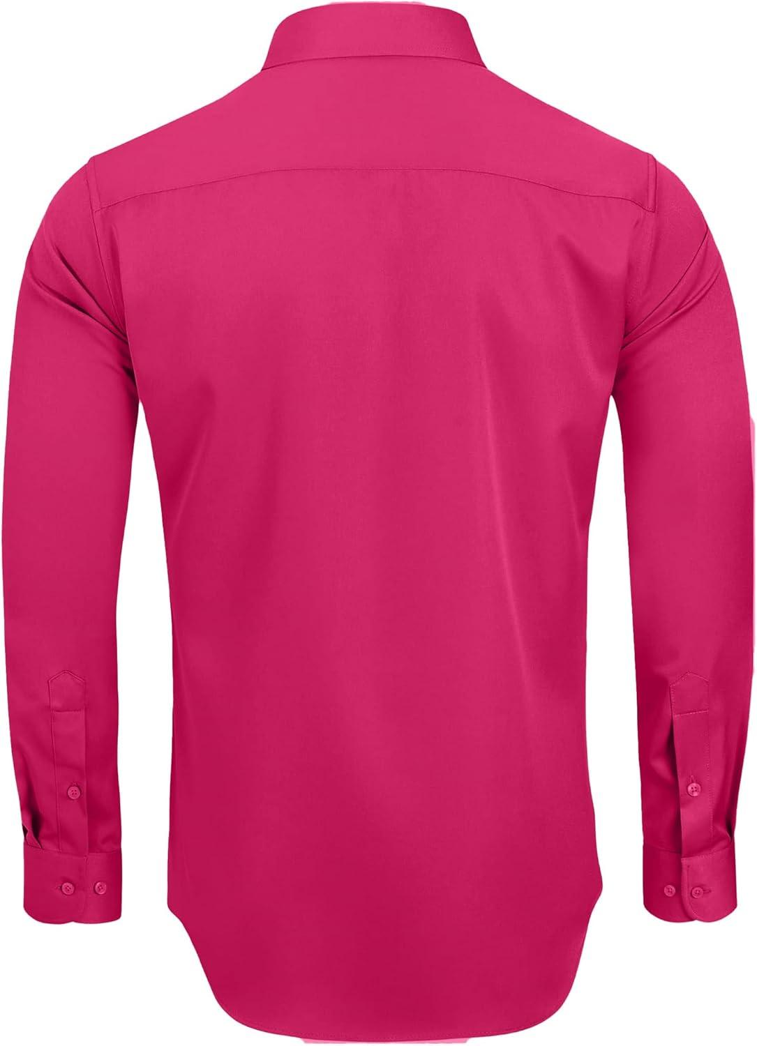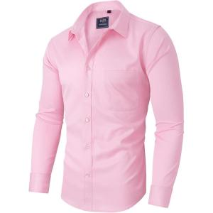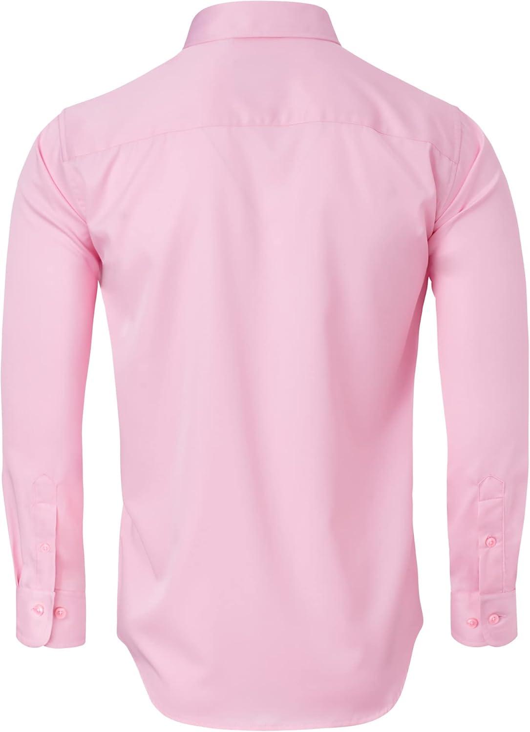 • Alimens & Gentle Men’s Dress Shirts Long Sleeve Wrinkle-Free Stretch Shirts Solid Formal Button Down Shirt with Pocket(Pink)