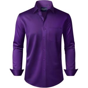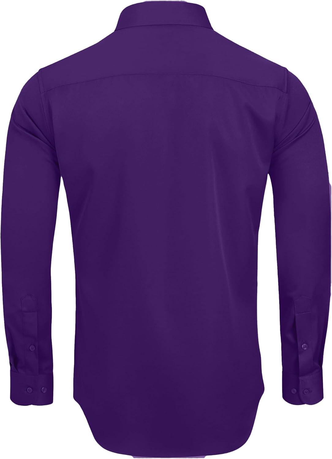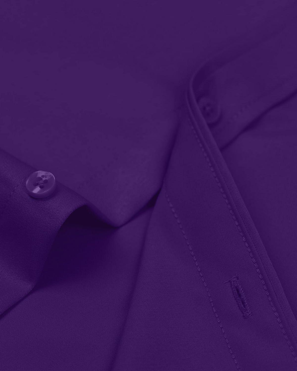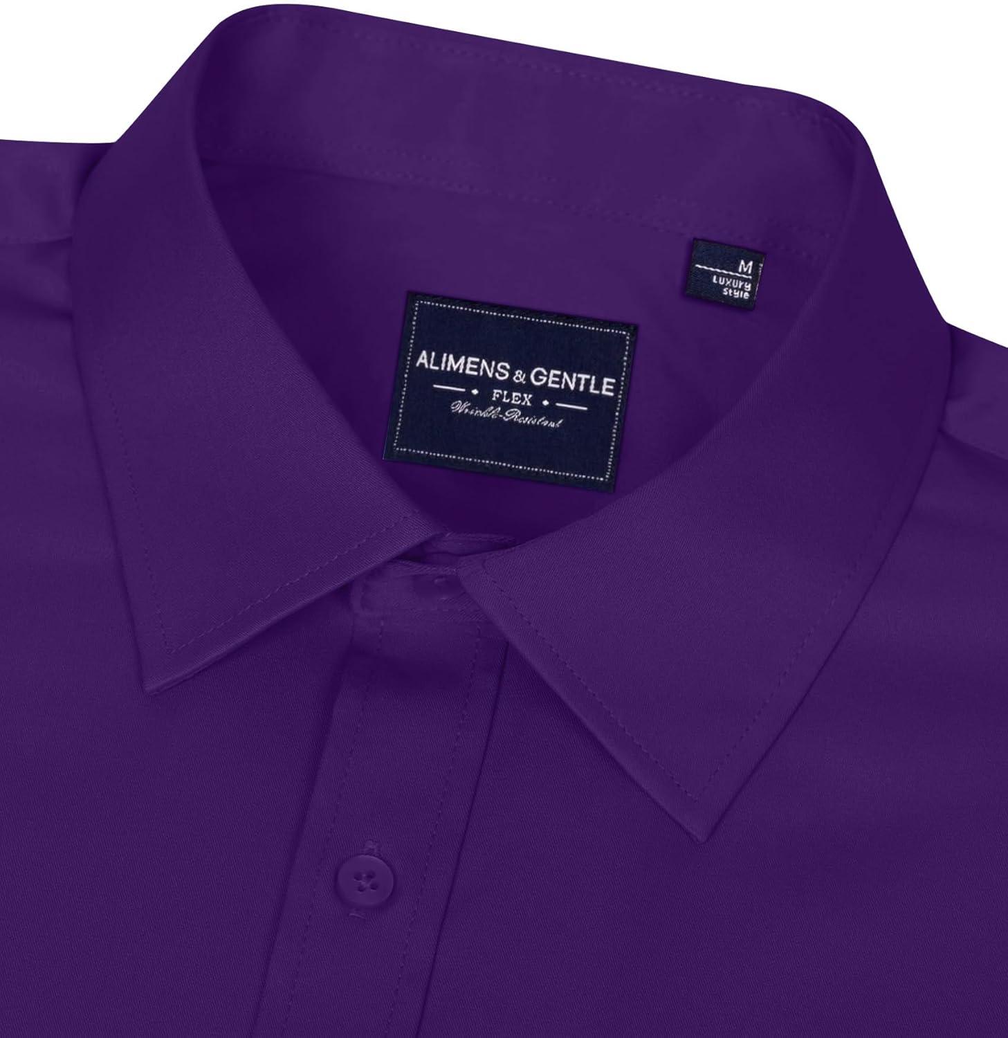 • Alimens & Gentle Men’s Dress Shirts Long Sleeve Wrinkle-Free Stretch Shirts Solid Formal Button Down Shirt with Pocket(Purple)