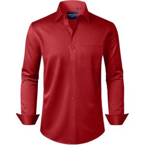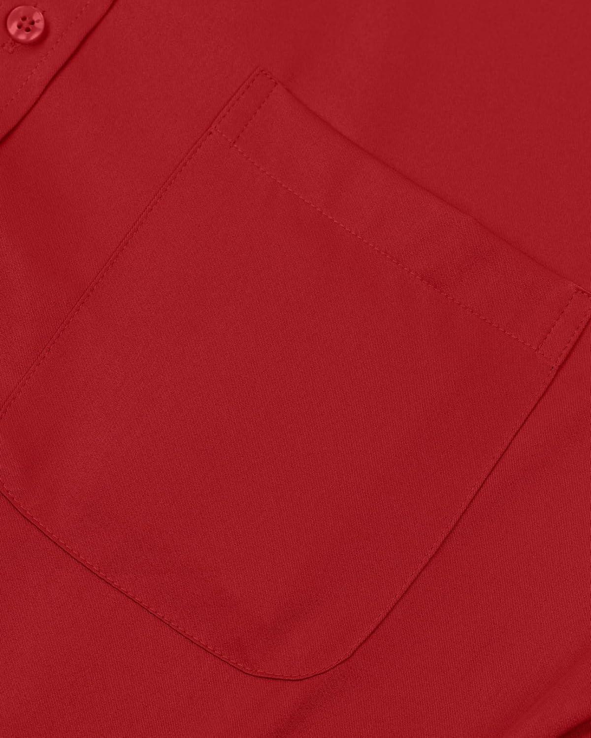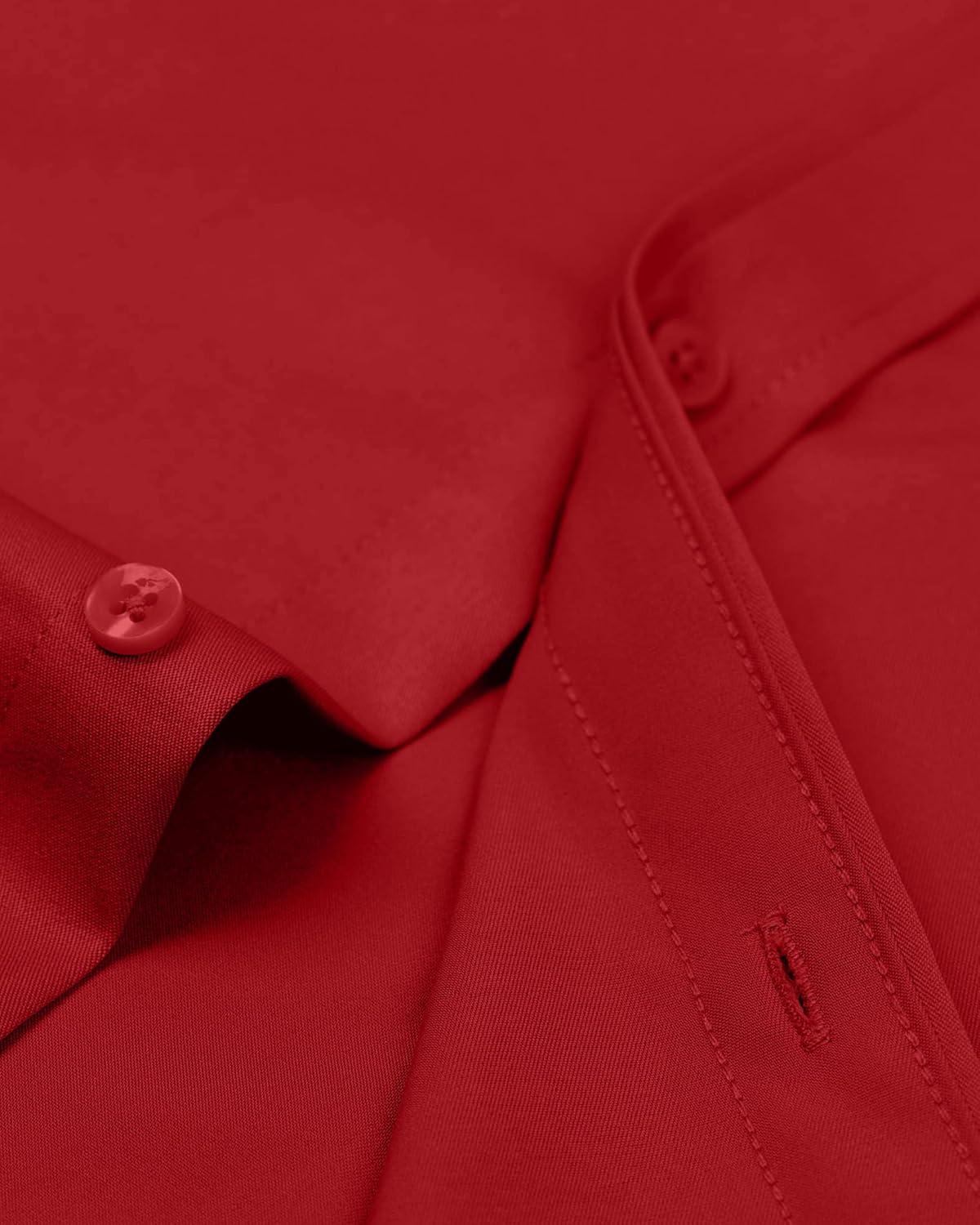 • Alimens & Gentle Men’s Dress Shirts Long Sleeve Wrinkle-Free Stretch Shirts Solid Formal Button Down Shirt with Pocket(Red)