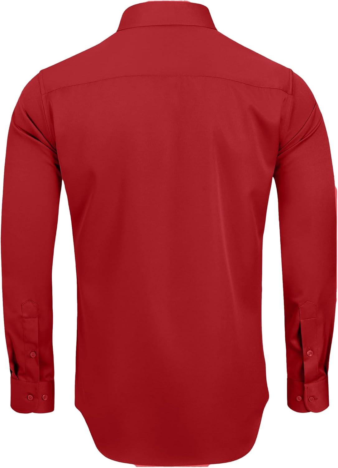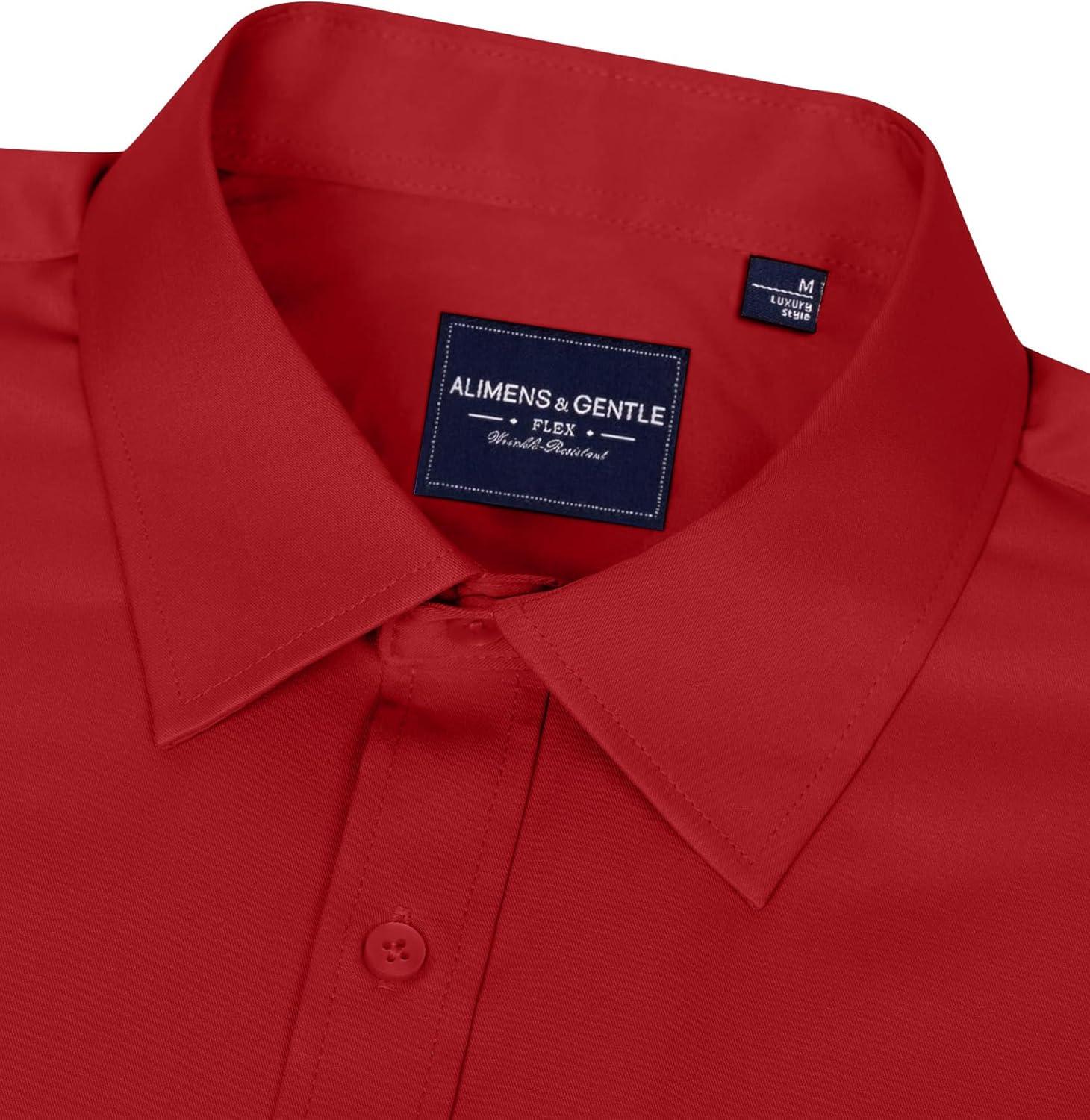 Alimens & Gentle Men’s Dress Shirts Long Sleeve Wrinkle-Free Stretch Shirts Solid Formal Button Down Shirt with Pocket(Red)