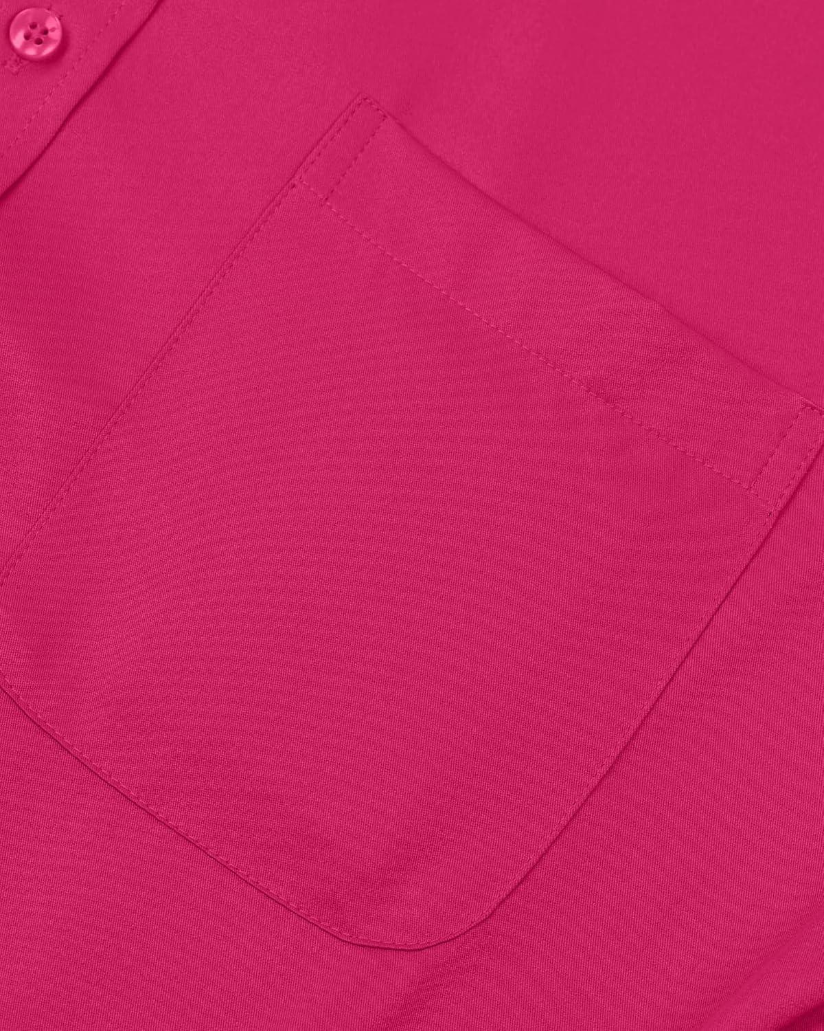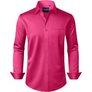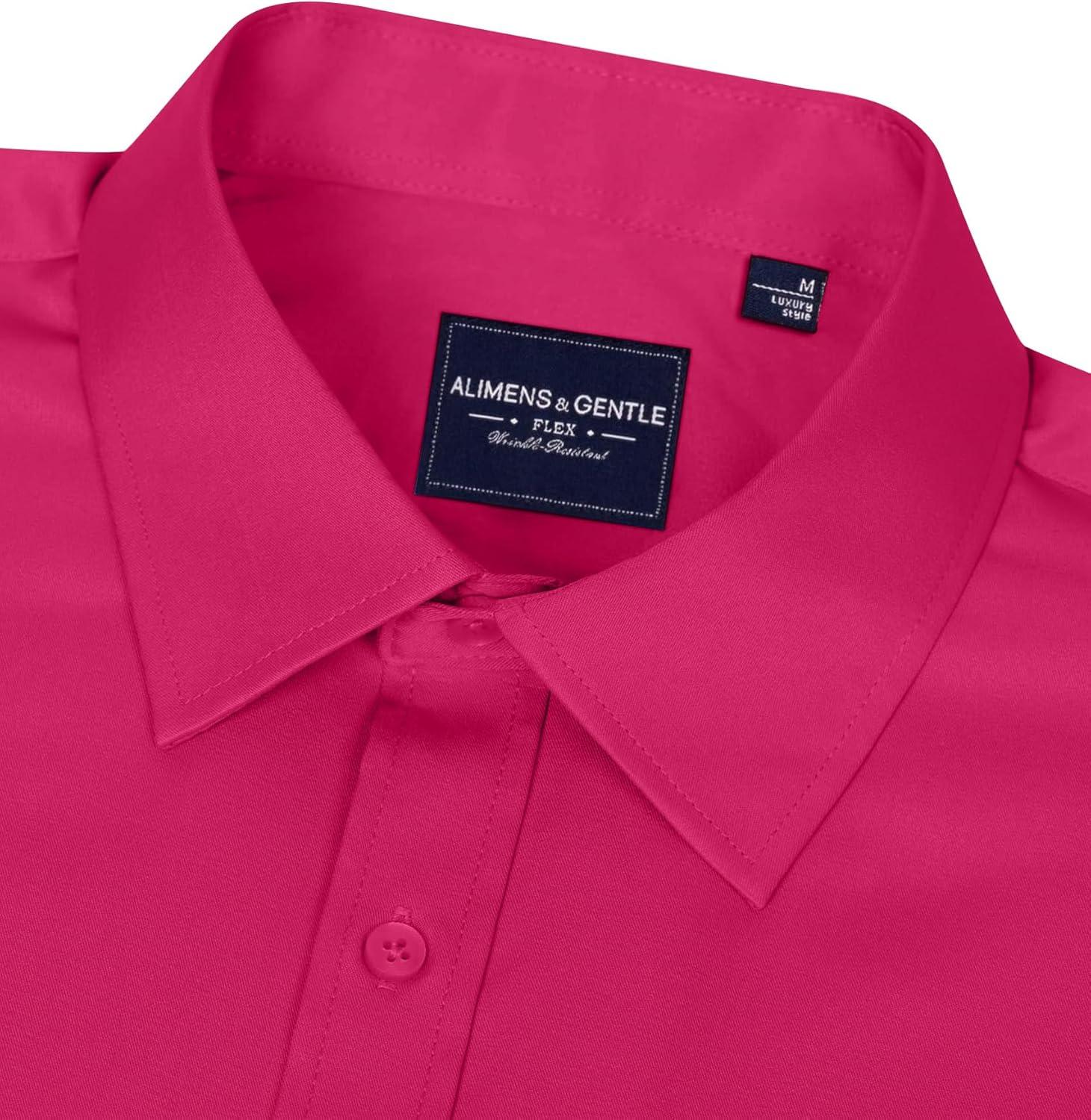 • Alimens & Gentle Men’s Dress Shirts Long Sleeve Wrinkle-Free Stretch Shirts Solid Formal Button Down Shirt with Pocket(Rosy)