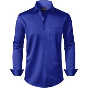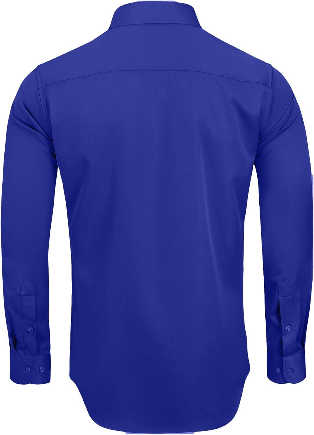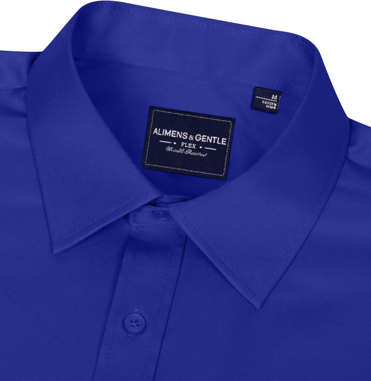 • Alimens & Gentle Men’s Dress Shirts Long Sleeve Wrinkle-Free Stretch Shirts Solid Formal Button Down Shirt with Pocket(Royal Blue)