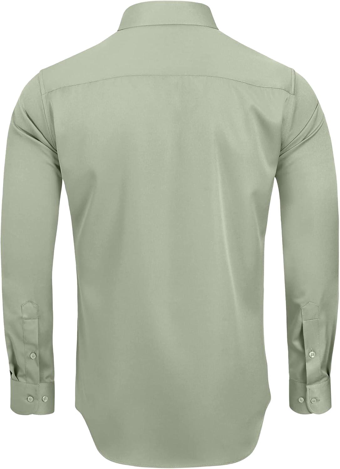 • Alimens & Gentle Men’s Dress Shirts Long Sleeve Wrinkle-Free Stretch Shirts Solid Formal Button Down Shirt with Pocket(Sage Green)