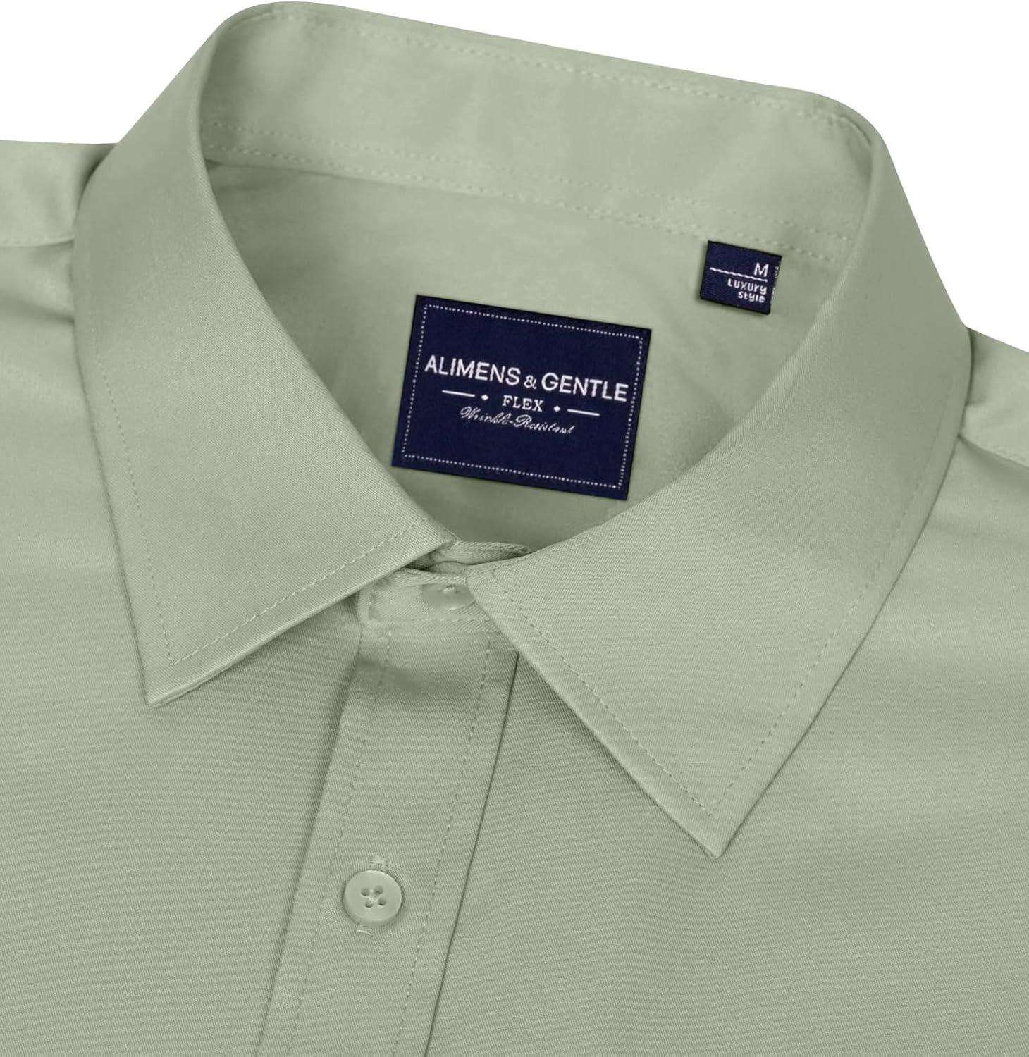 Alimens & Gentle Men’s Dress Shirts Long Sleeve Wrinkle-Free Stretch Shirts Solid Formal Button Down Shirt with Pocket(Sage Green)