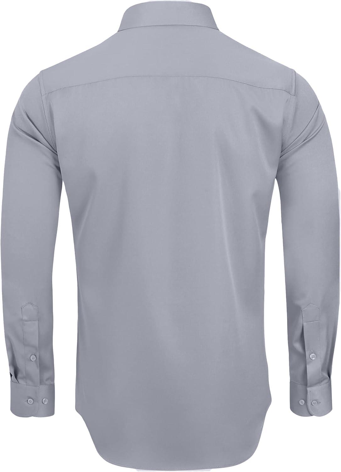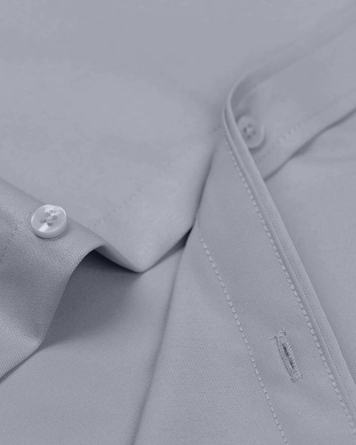 • Alimens & Gentle Men’s Dress Shirts Long Sleeve Wrinkle-Free Stretch Shirts Solid Formal Button Down Shirt with Pocket(Silver)