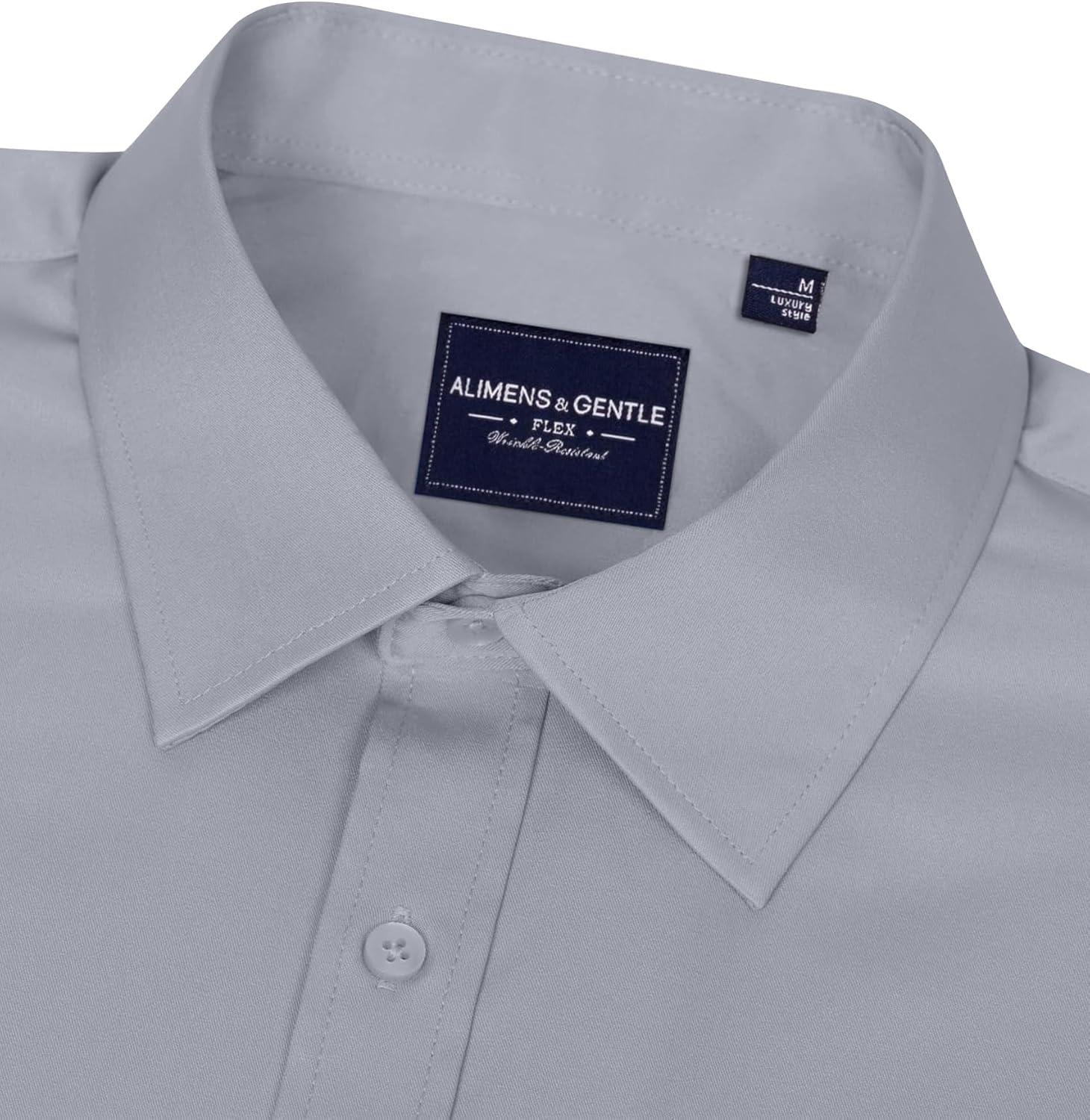 Alimens & Gentle Men’s Dress Shirts Long Sleeve Wrinkle-Free Stretch Shirts Solid Formal Button Down Shirt with Pocket(Silver)