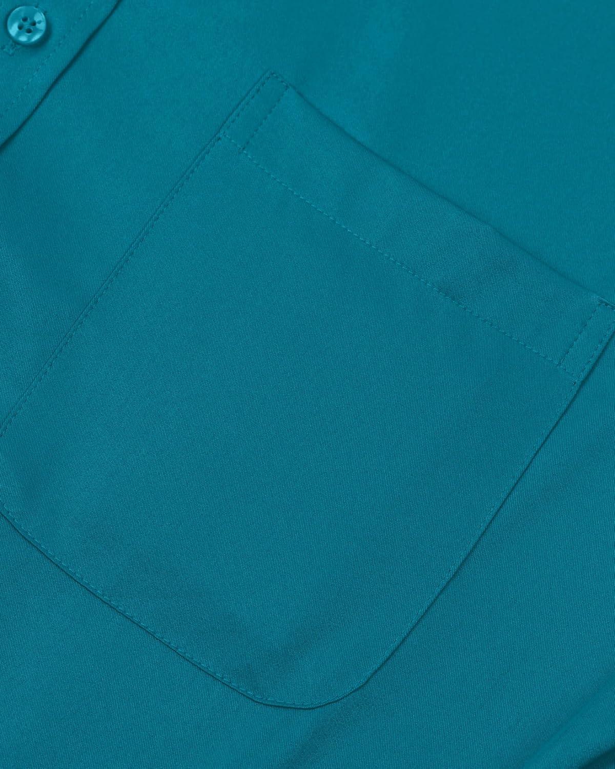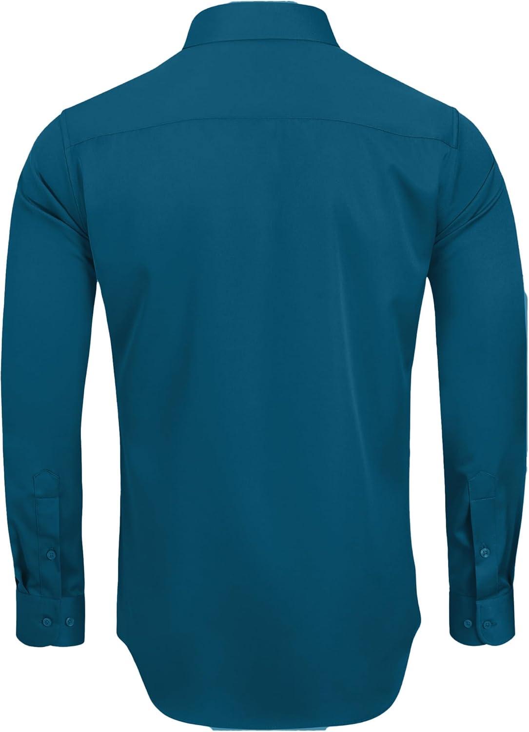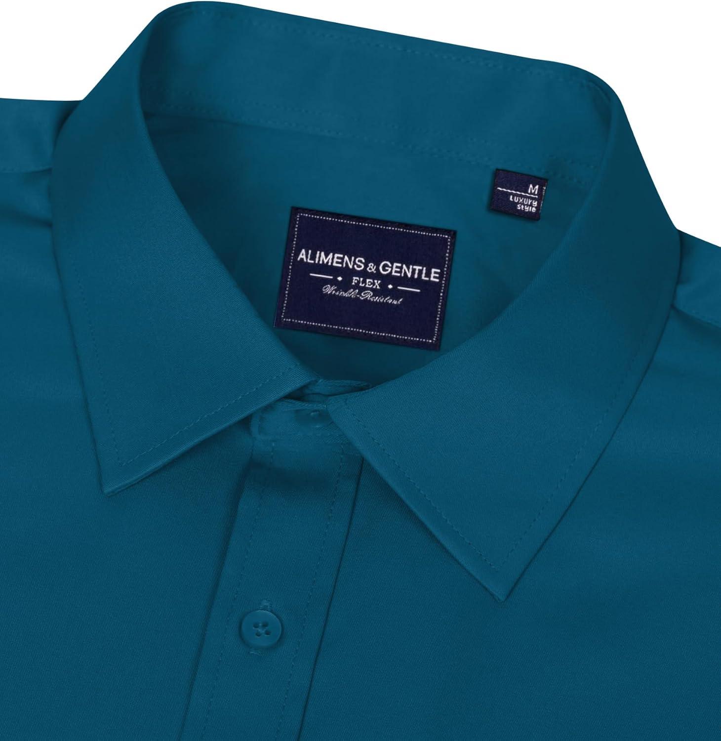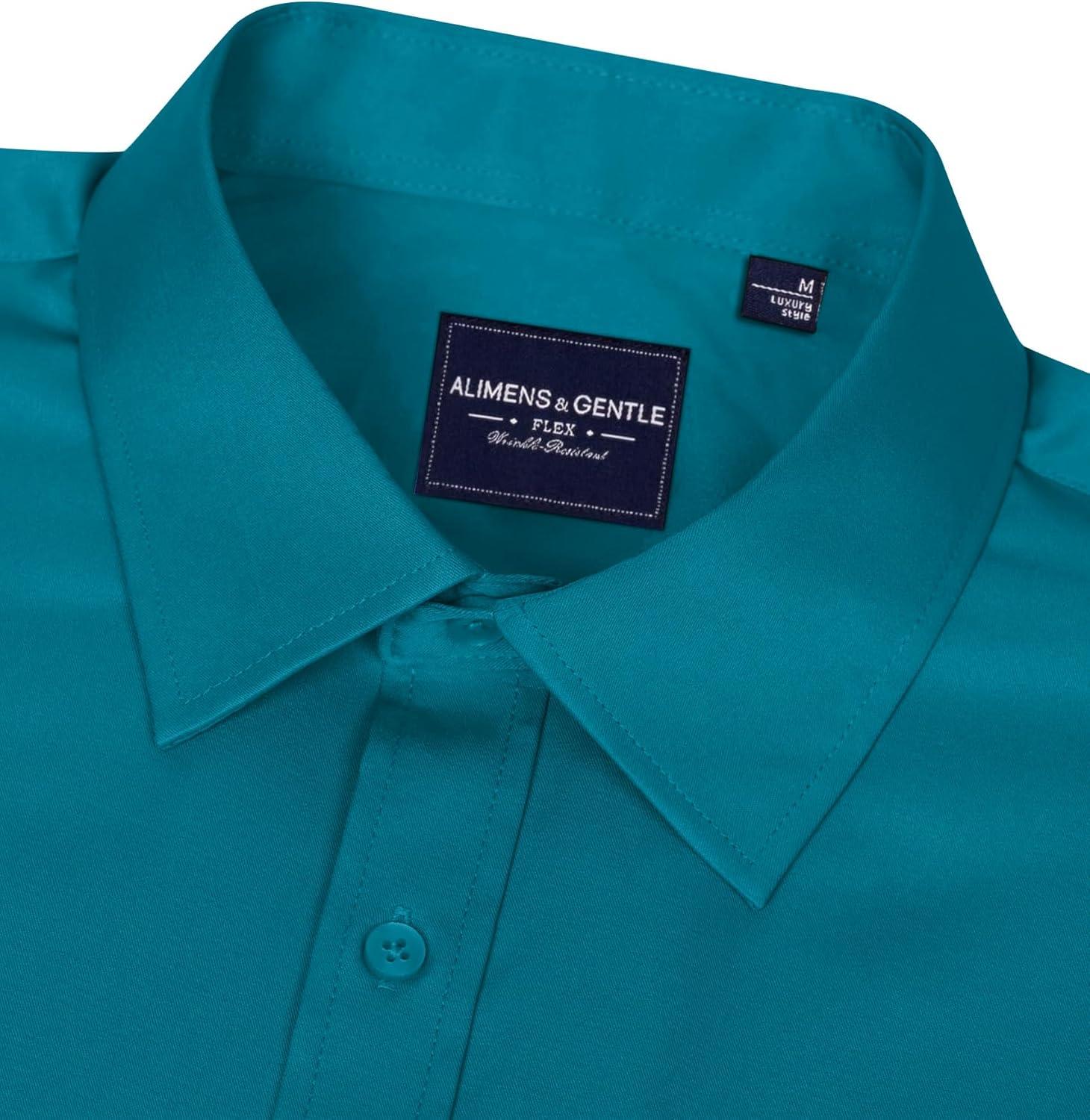 • Alimens & Gentle Men’s Dress Shirts Long Sleeve Wrinkle-Free Stretch Shirts Solid Formal Button Down Shirt with Pocket(Teal)